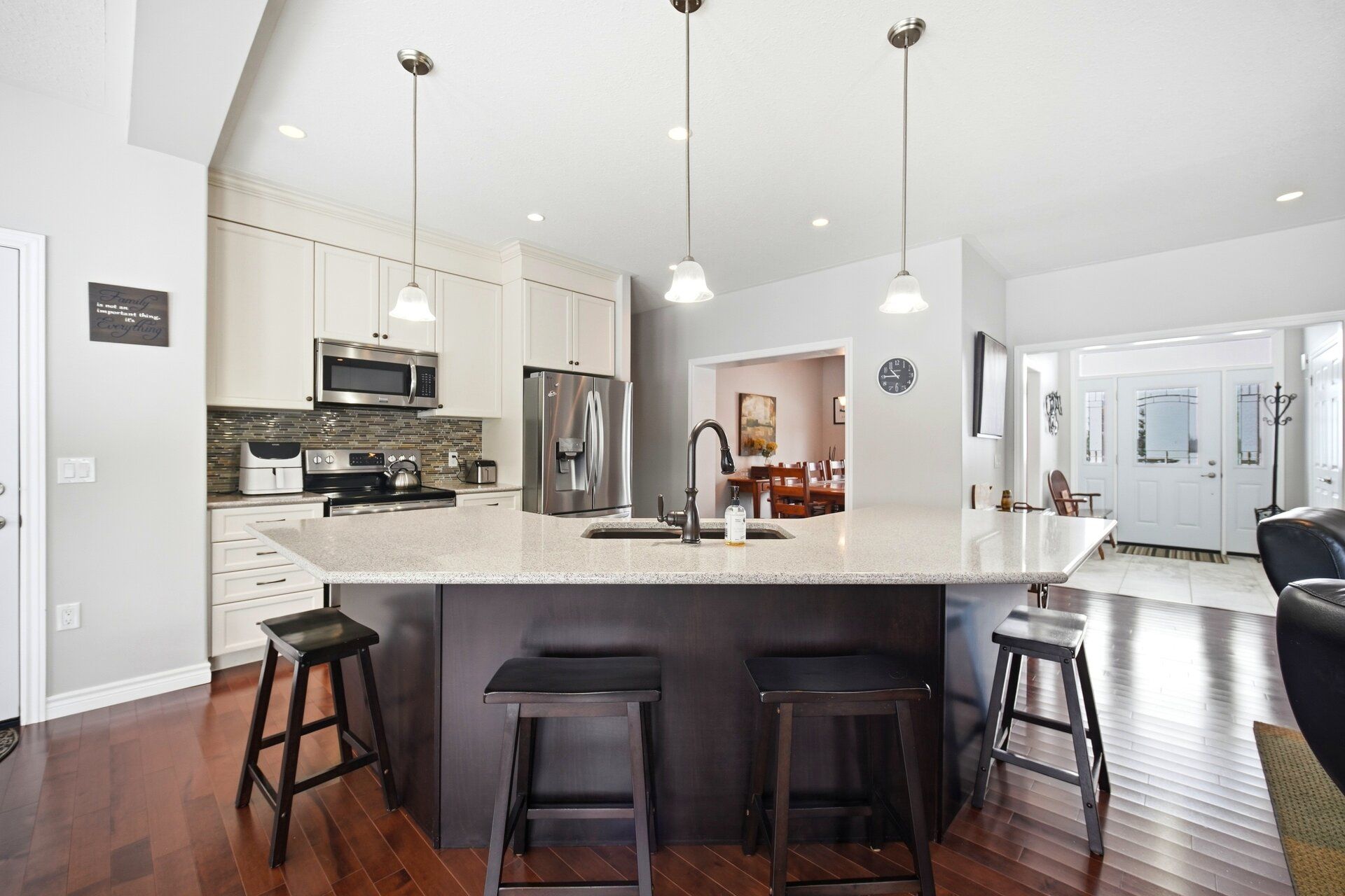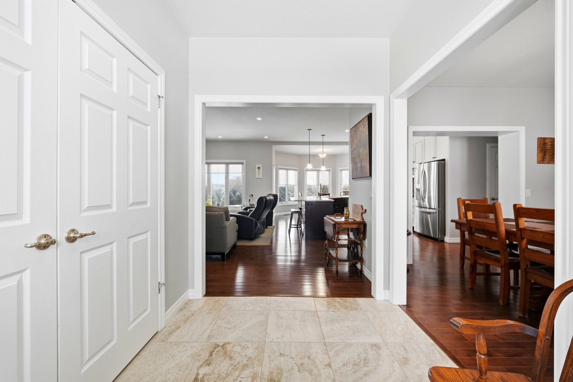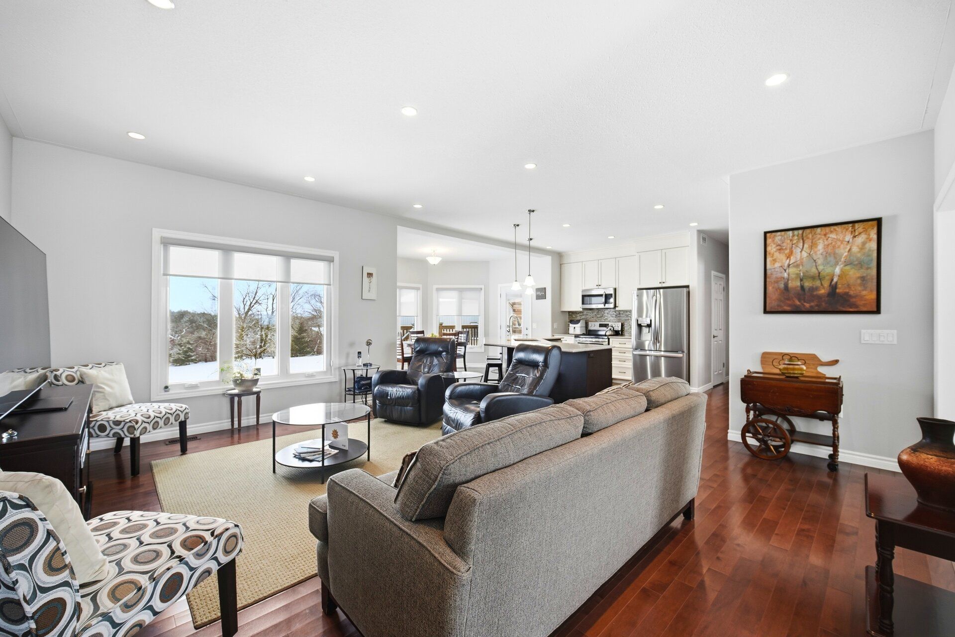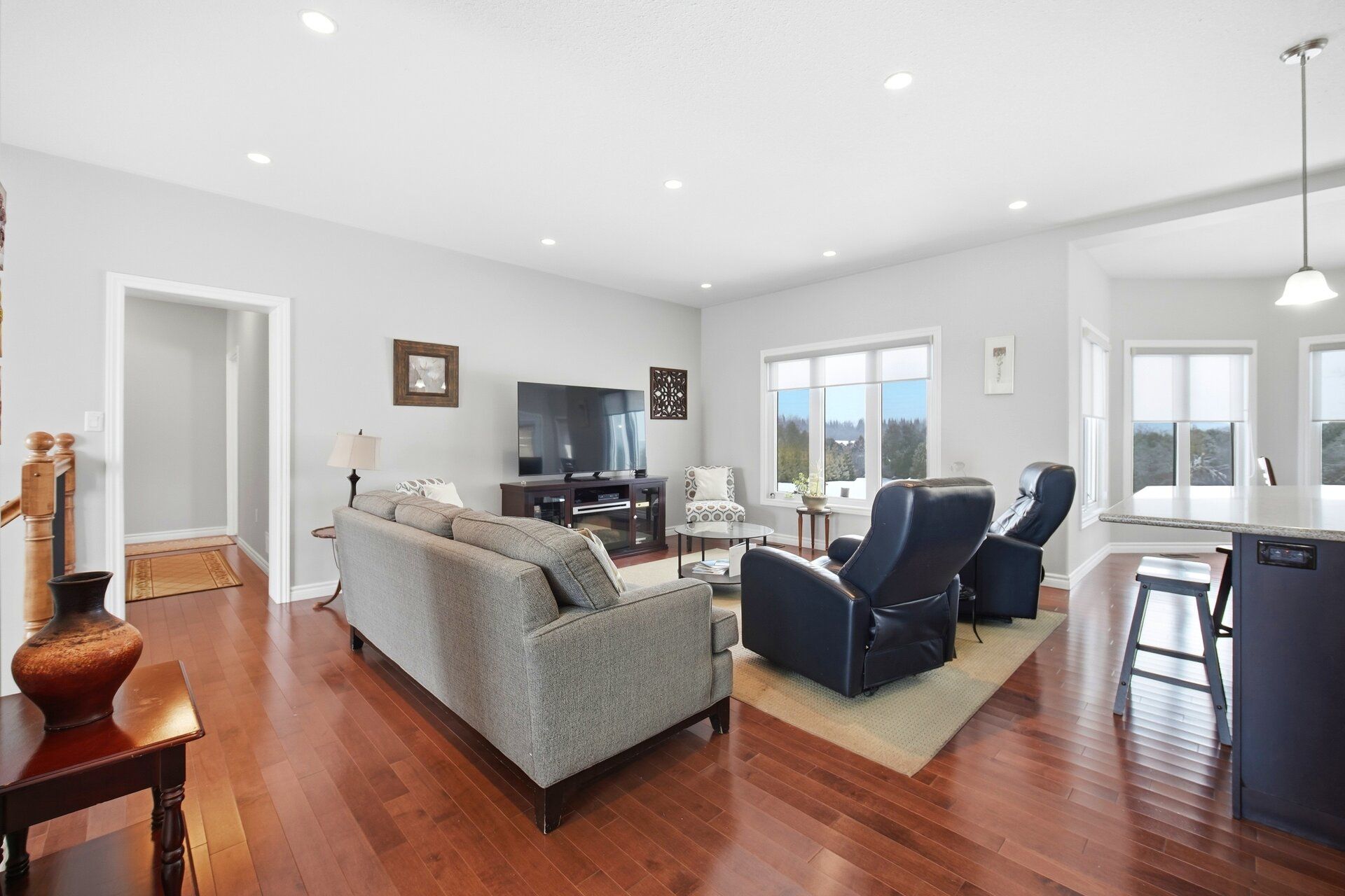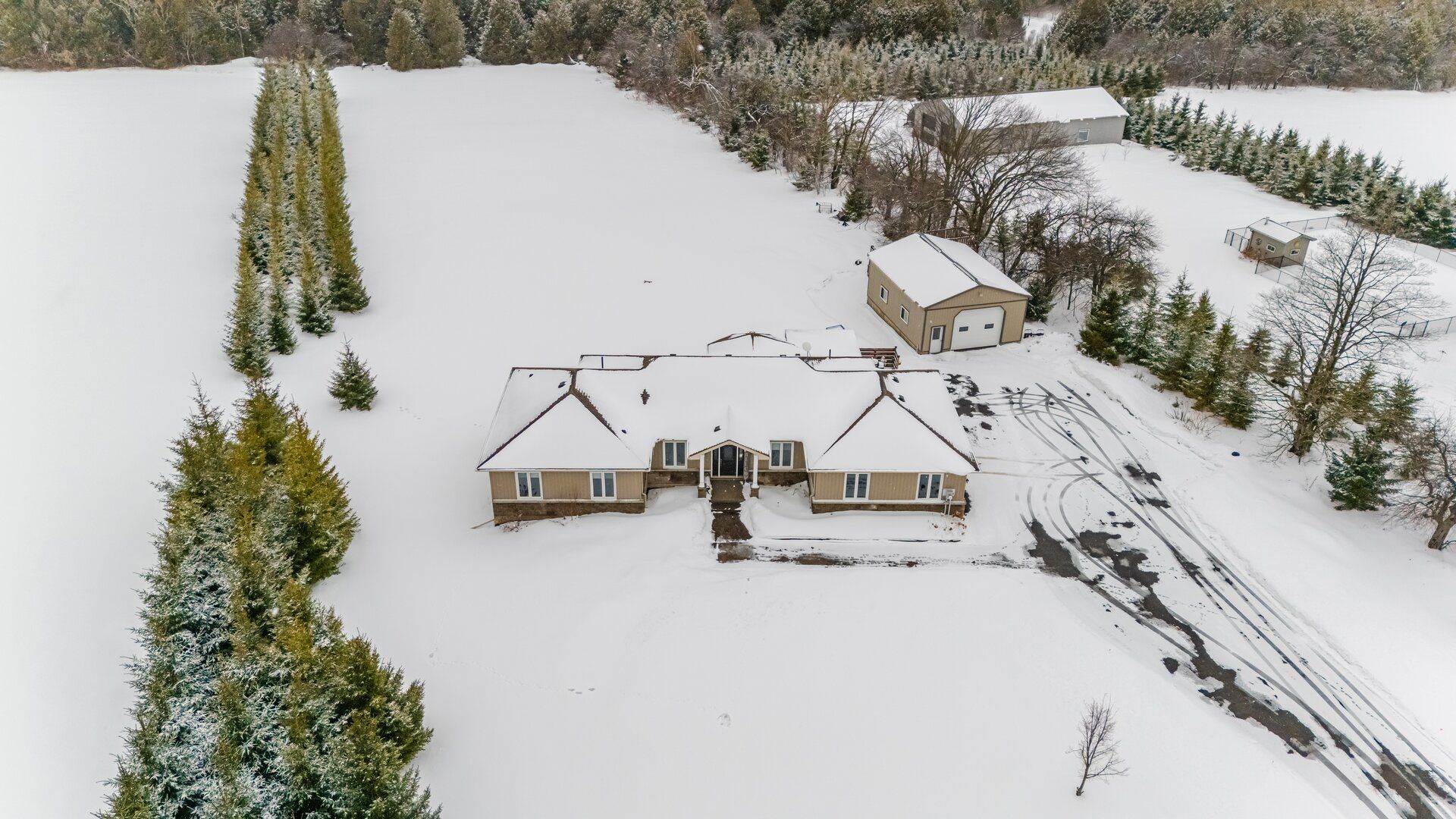 This 2015 quality homes custom bungalow build offers the perfect blend of airy open spaces and cozy retreats. This isn't just a house; it's the backdrop for your family's next chapter. 3 bedroom, 3. 5 bath bungalow on the most magical 2. 7 acres. An elegant barrel-vaulted ceiling welcomes you through the main entrance, with views to the open farm land behind! You have an open concept great room, breakfast nook and kitchen. Don't forget about the massive walk-in pantry, a dream addition for the cook in the family! An elegantly appointed dining room finishes the main space. Three, bright and spacious bedrooms are set off of the main living space with a family bath that is well appointed. The primary suite is bright and airy, featuring a walk-through closet and walk-in closet as well as a spacious 3pc. Ensuite. The other side of the main floor feature an oversized laundry room with backyard access, garage access and the perfect guest 2pc bath plus a convenient side entrance. Another amazing feature of this bungalow is the open concept walk-out basement. The basement also features two separate rooms, one with large windows, providing many options for a growing family. There is a wet-bar space ready for your ideas, large family bath and massive open concept living space with in floor heating! A large utility and storage room as well as a second storage space complete this level. Bonus feature of this property is a separate workshop space with 100amp service, oversized garage doors, perfect for your home projects or more! Main house features a two-car garage with 10ft doors. 200 amp service and a manageable backyard in the country, space and privacy all included with this stunning bungalow!