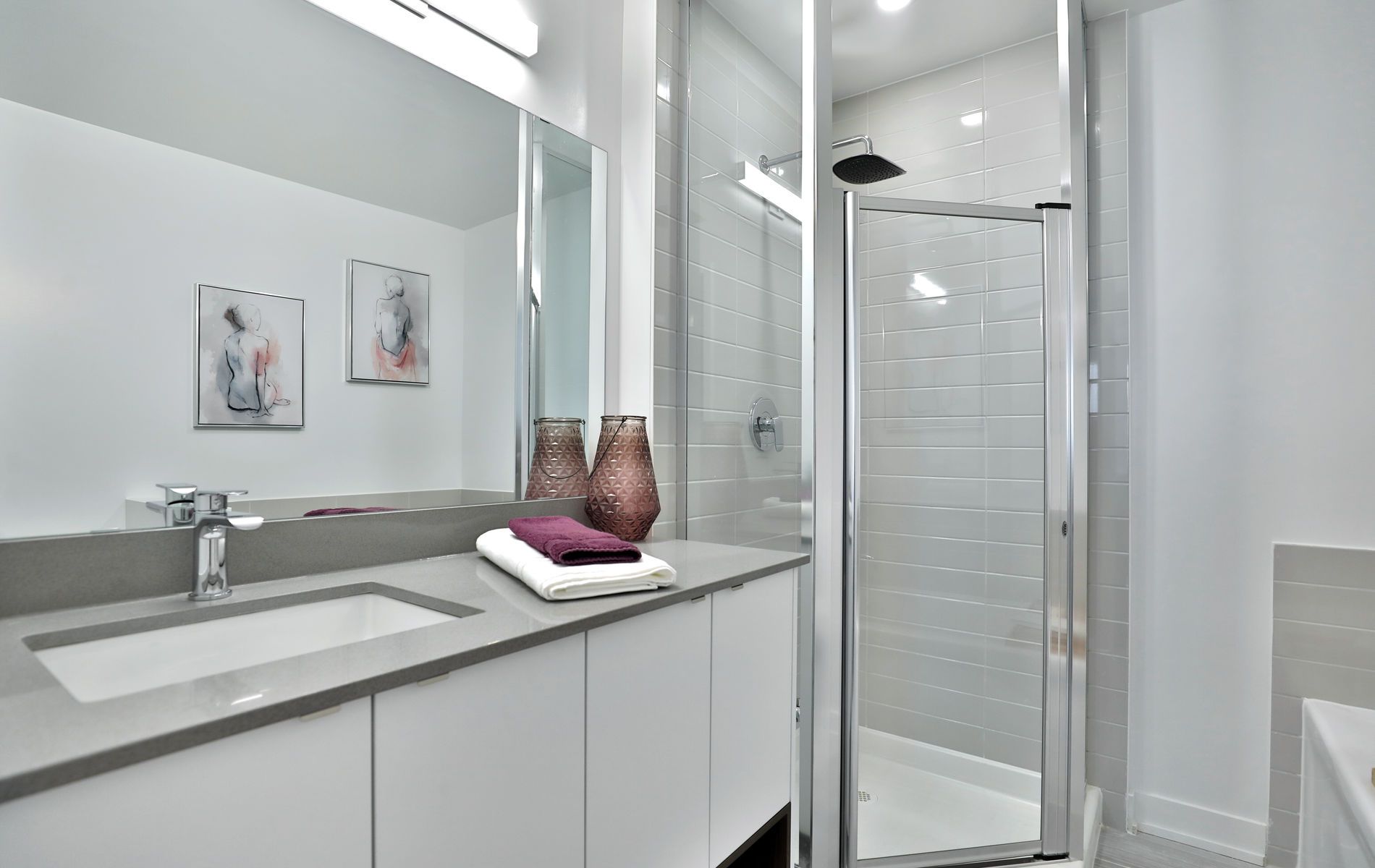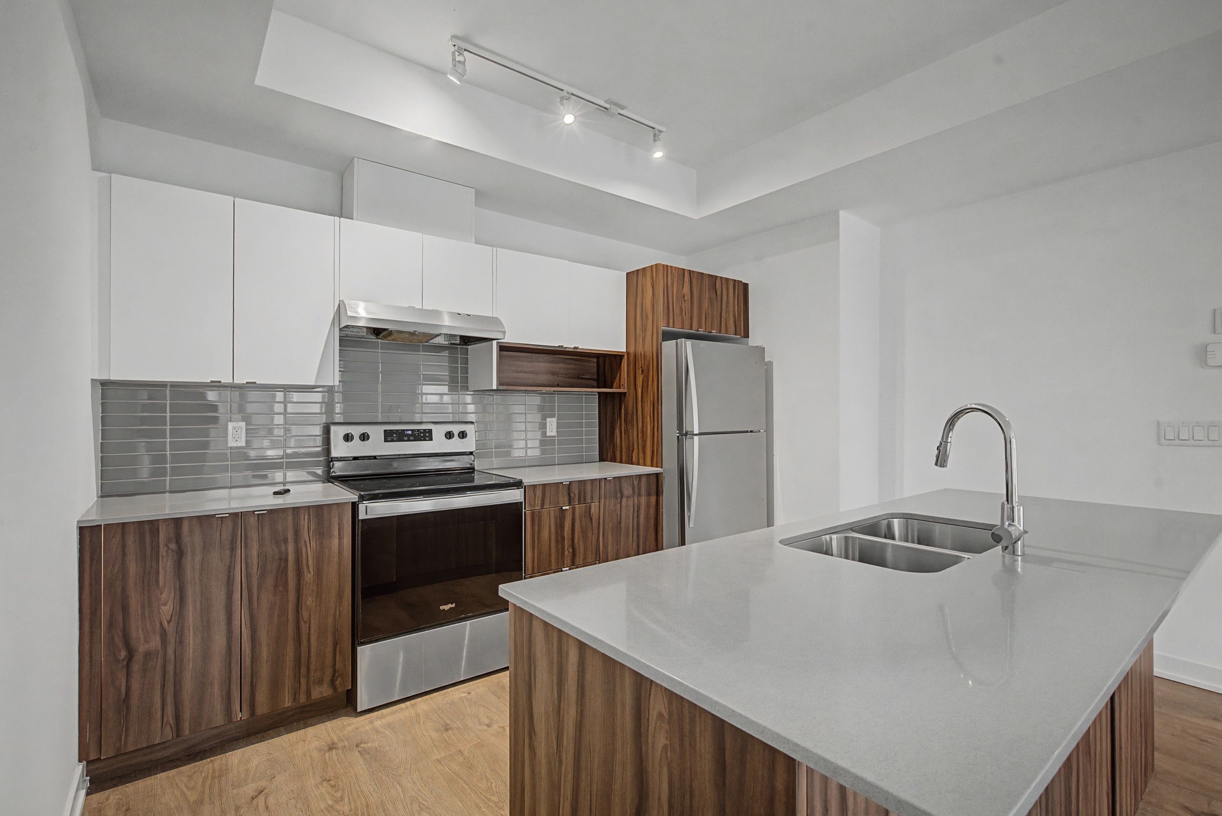 • Contemporary kitchen with quartz countertops and convenient bedroom-level laundry.
