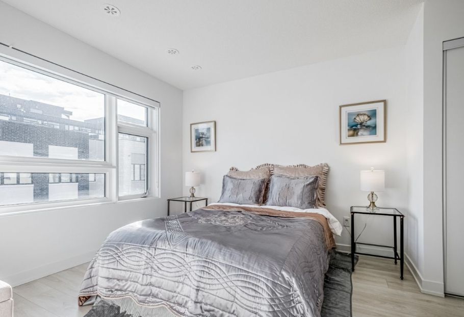 Welcome to stationwest urban townhomes, one of burlington's most distinctive communities. This premium three-storey end-unit "granville" model offers a bright, open-concept layout highlighted by a chef-inspired kitchen with a large island, granite countertops, stainless steel appliances, and a spacious dining area with walkout to a private balcony-perfect for entertaining. A convenient main-floor powder room adds everyday functionality. The primary bedroom features double closets and access to a luxurious spa-style bath complete with a jacuzzi tub. On the top level, enjoy your own private rooftop terrace with stunning panoramic views-ideal for relaxing or hosting guests. Modern urban living at its finest. Tenants to pay utilities.
