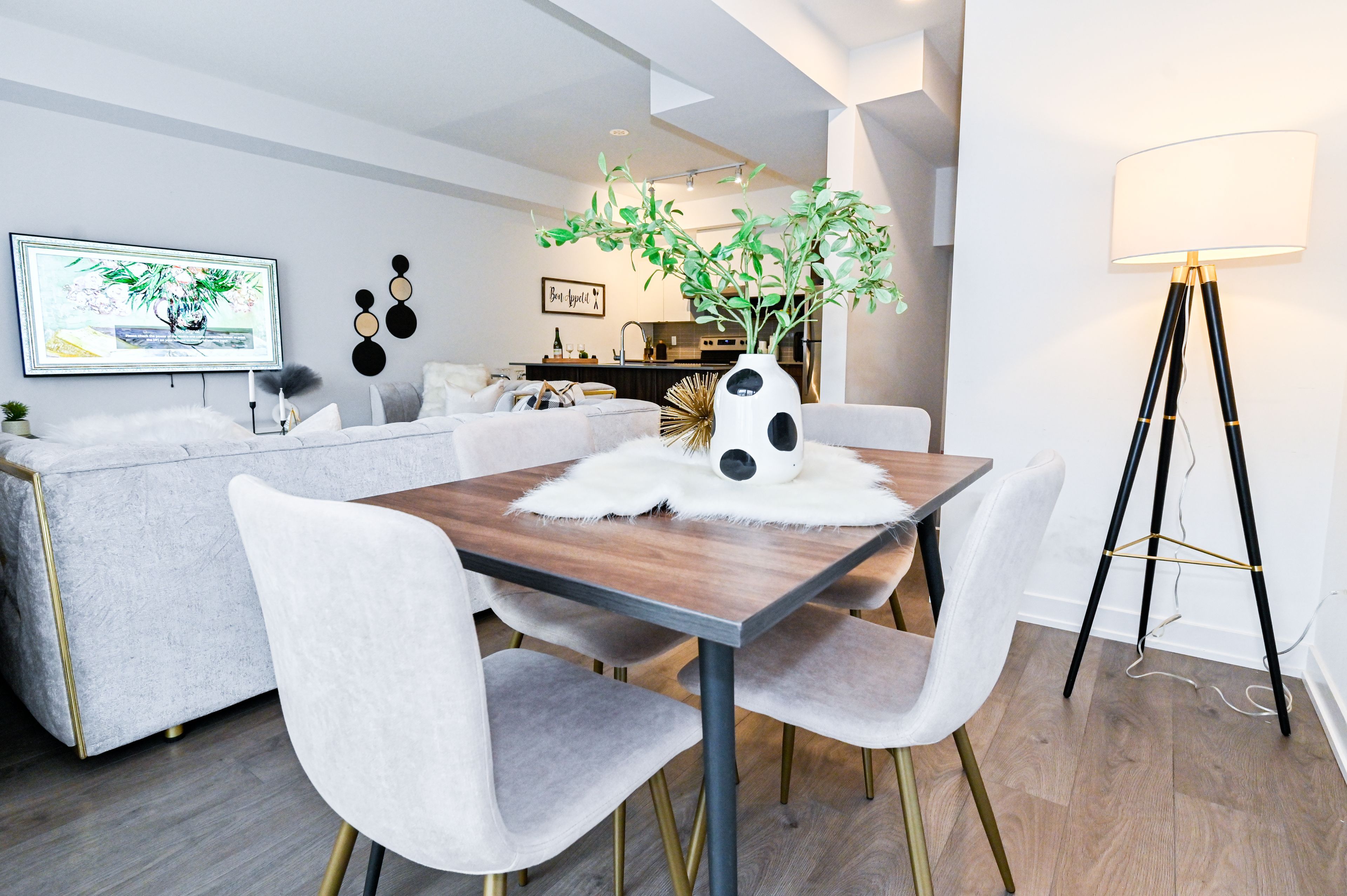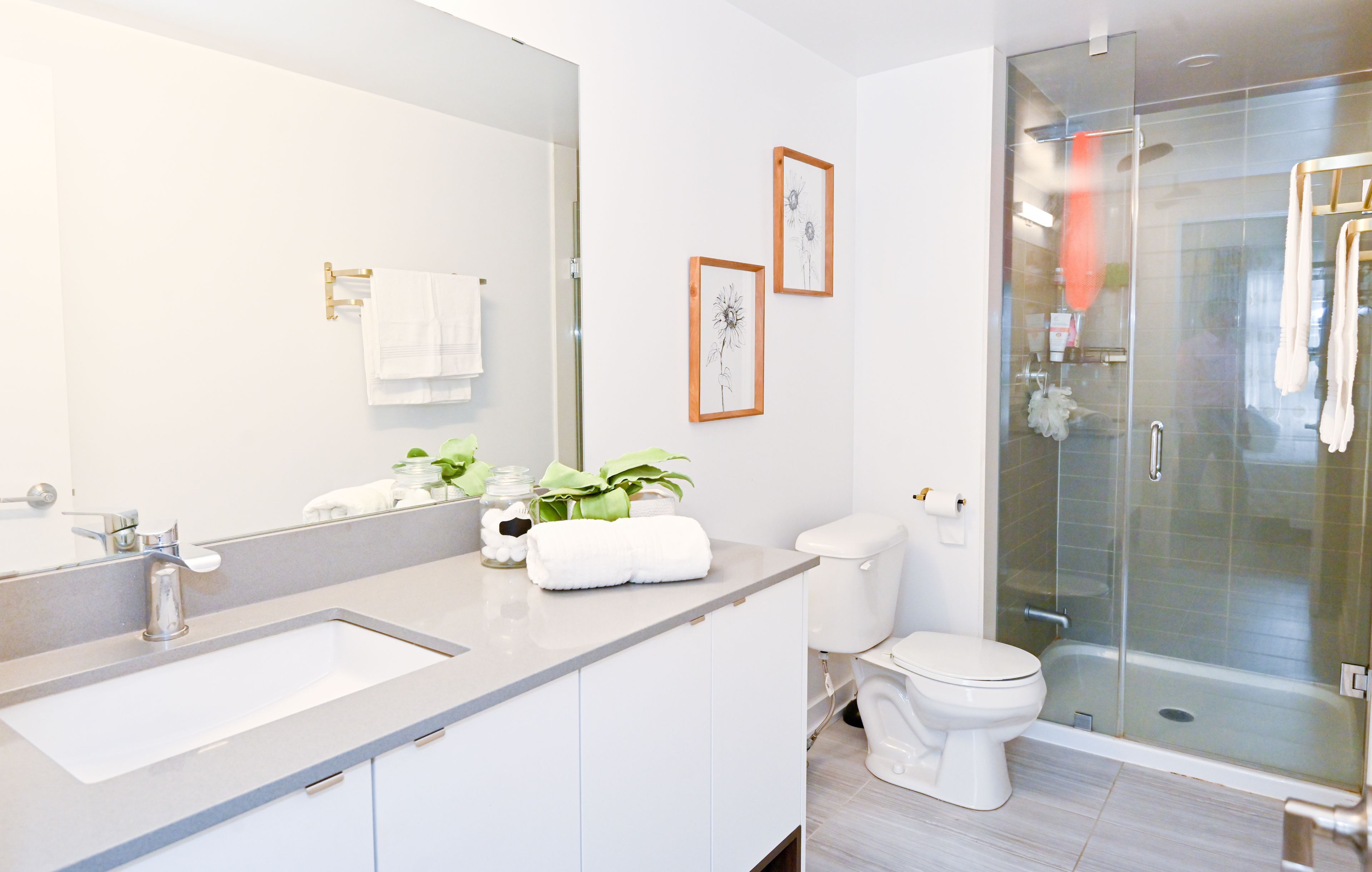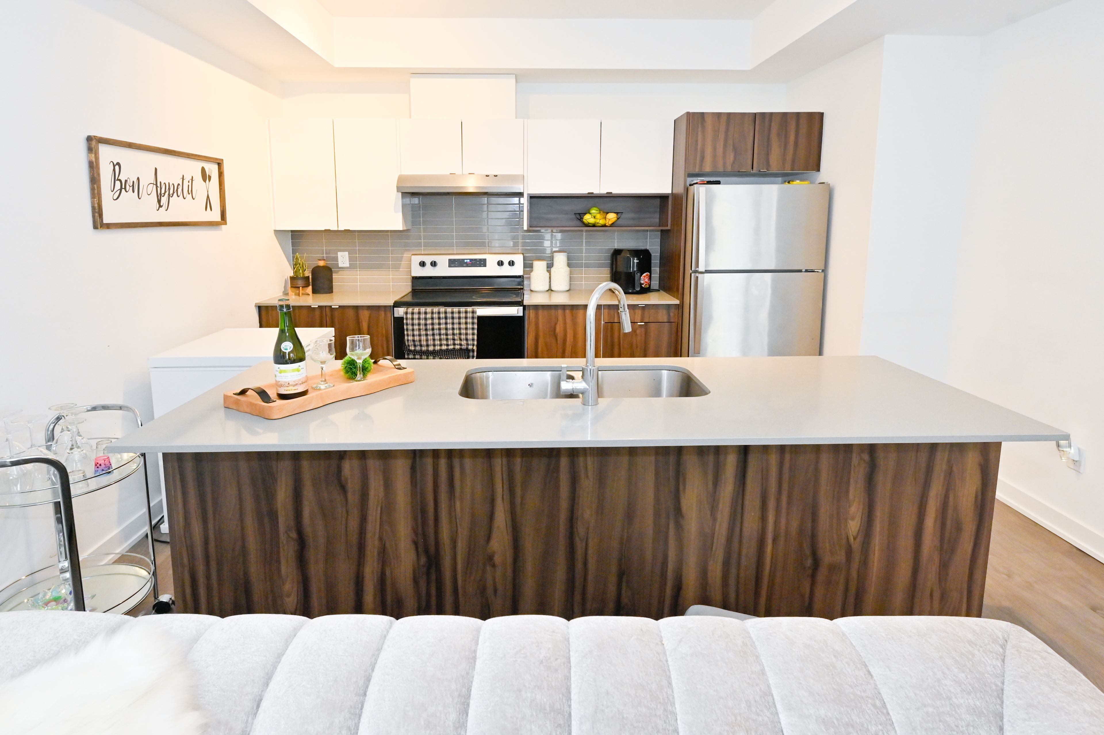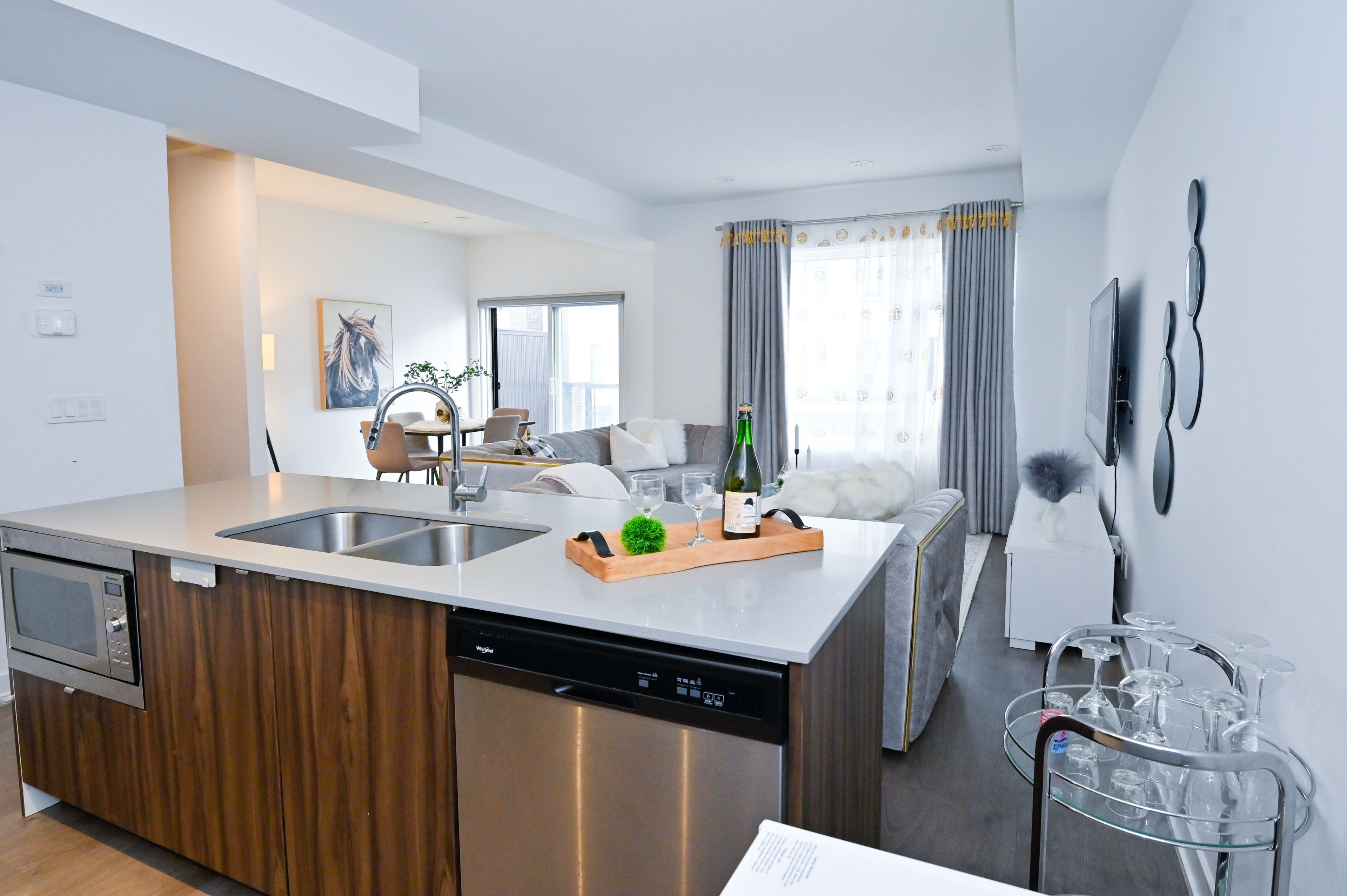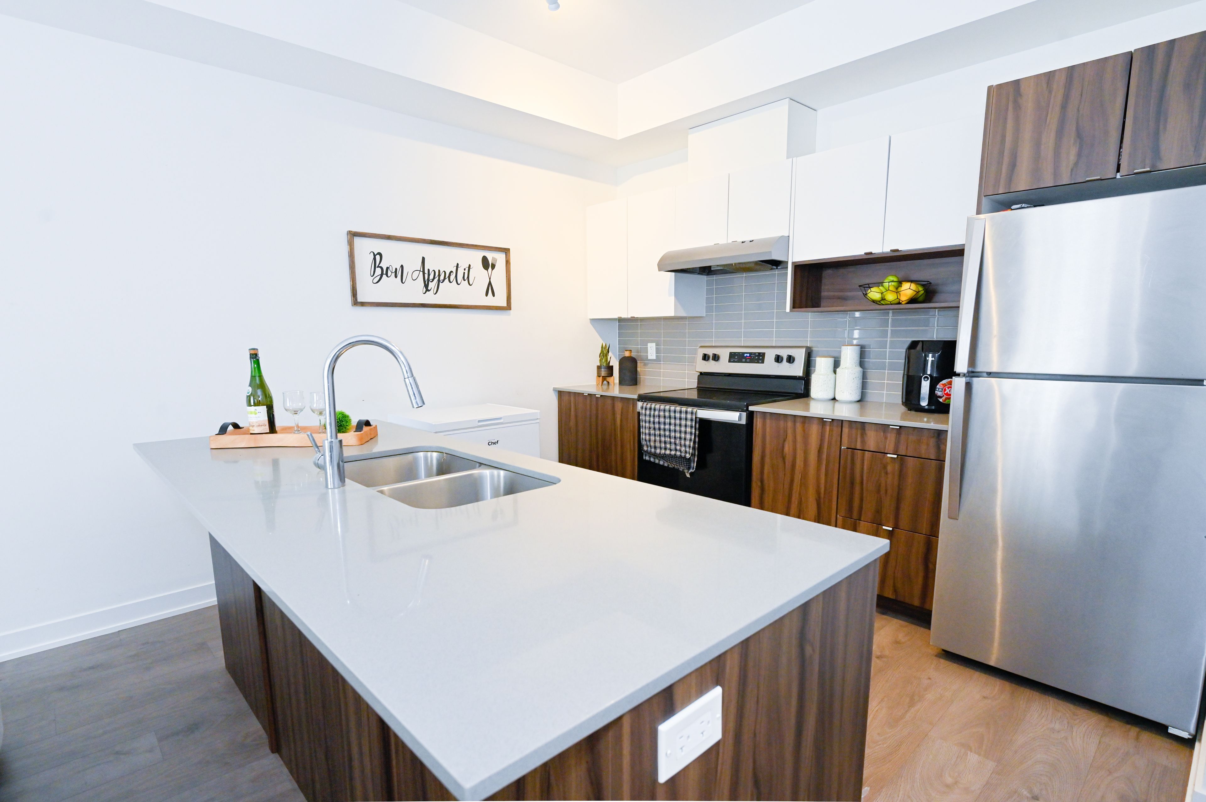 • Modern kitchen with quartz countertops and attractive design.
