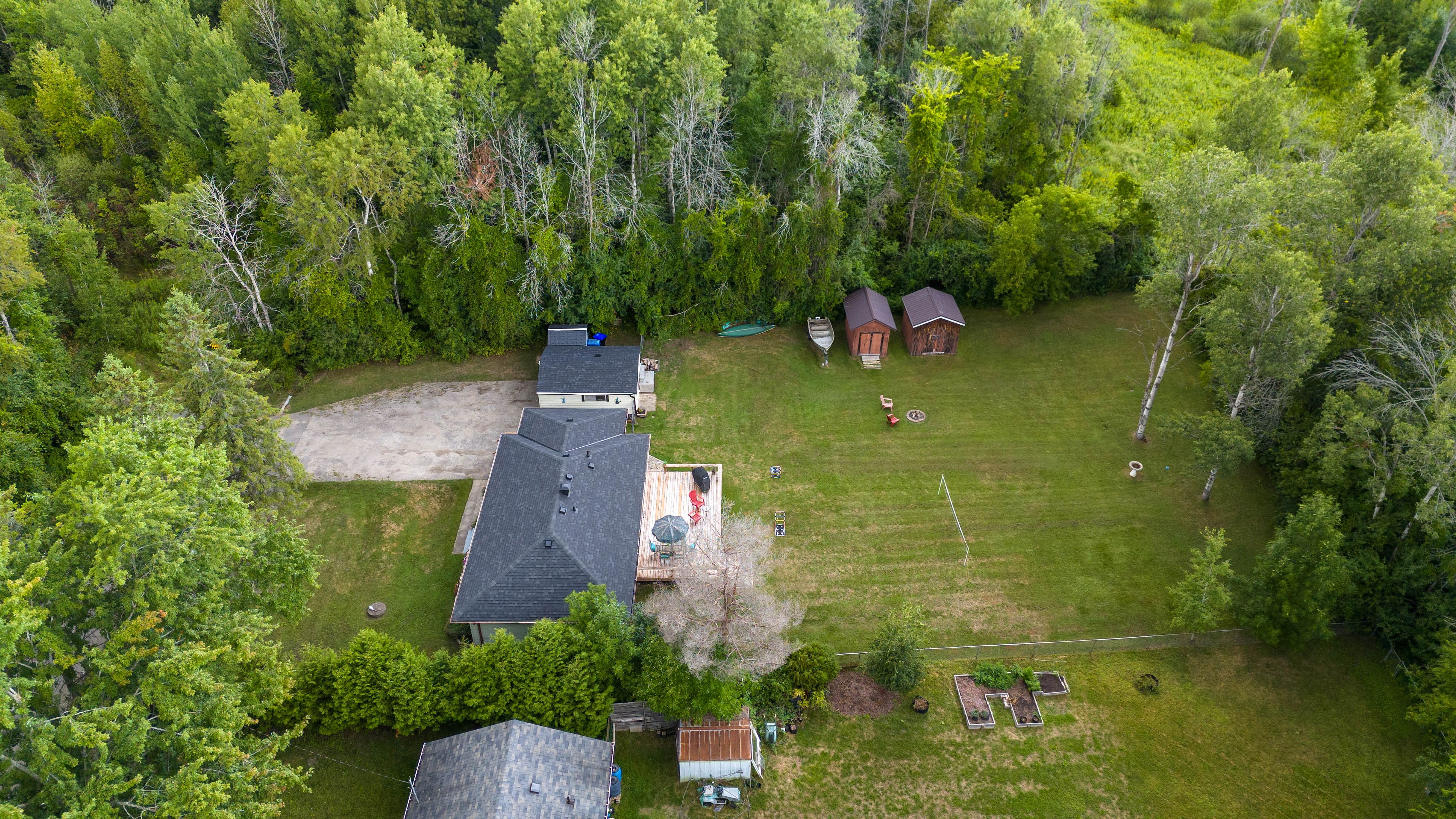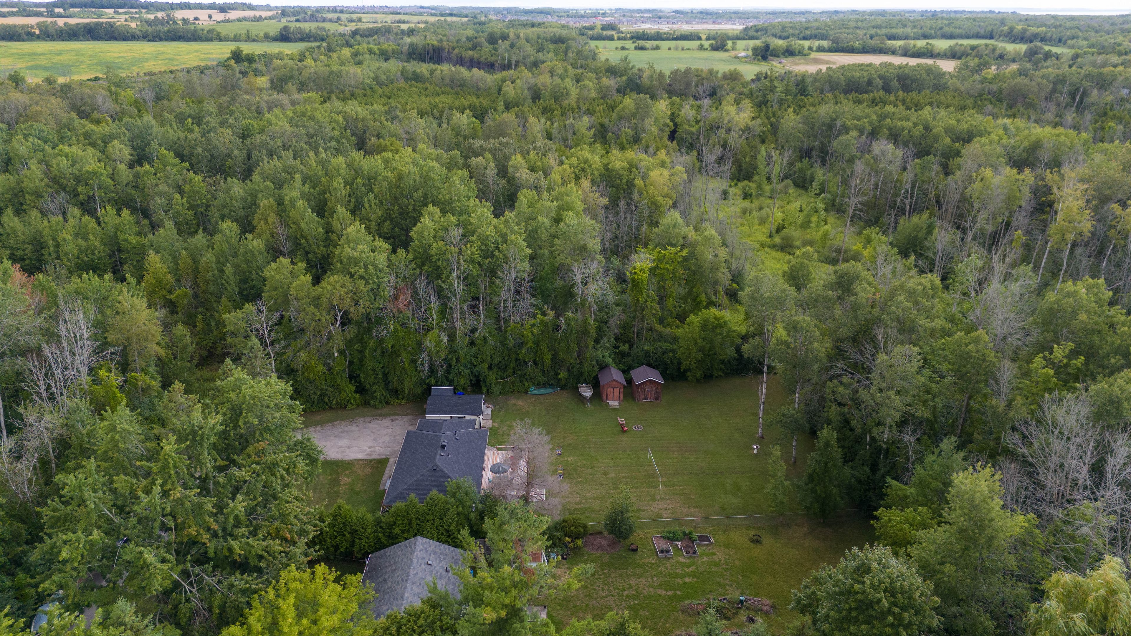 Welcome to this well-maintained, exceptionally clean 3-bedroom, 1-bath bungalow situated on a generous 100 ft x 200 ft lot in the quiet and charming village of lefroy, innisfil. Surrounded by environmentally protected land and mature trees on a dead-end street, this property offers outstanding privacy, natural beauty, and endless potential. The expansive lot is ideal for a future addition, custom build, or creating your dream backyard oasis with a pool. Just steps from lake simcoe, enjoy easy access to beautiful beaches and crystal-clear waters. The kitchen features granite countertops, shaker-style white cabinetry, pot and pan drawers, a live-edge wood island, and sleek black and stainless steel appliances. Walk out from the dining room to the backyard. Functional laundry/mudroom includes a pantry, closet, and convenient walk-out, it can be easily turned into a 2nd bathroom. Recent updates include: new vinyl flooring throughout and fresh paint, new deck, high efficient gas furnace (2026), attic r60 value insulation (2026), newer windows and updated insulation around windows. Roof approximately 5 years old. Electrical updated in 2013 to 200 amp service. Detached garage insulated, with a 1-year-old roof, garage door opener with remote, and 100 amp service. Artesian well with water filtration system. Inclusions: fridge, stove, dishwasher, washer, dryer, water filtration system, window coverings, all electrical light fixtures, ceiling fans, closet organizers, tv wall mount, napoleon fireplace with built-in bluetooth, and 3 sheds. Perfect for those seeking a move-in ready home with room to grow or invest. Whether as a year-round residence, cottage retreat, or rental property, the possibilities are endless. Book your private tour today!