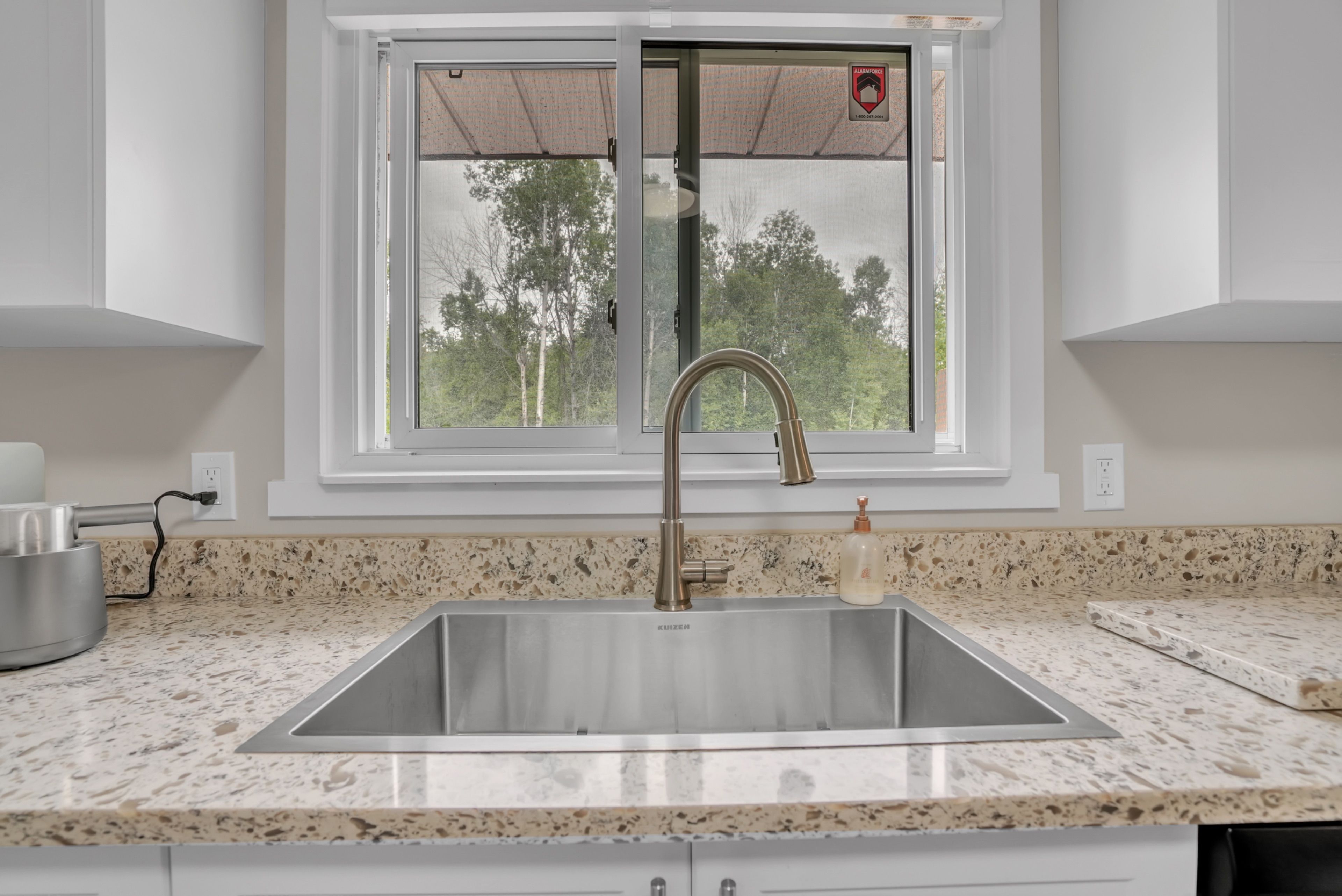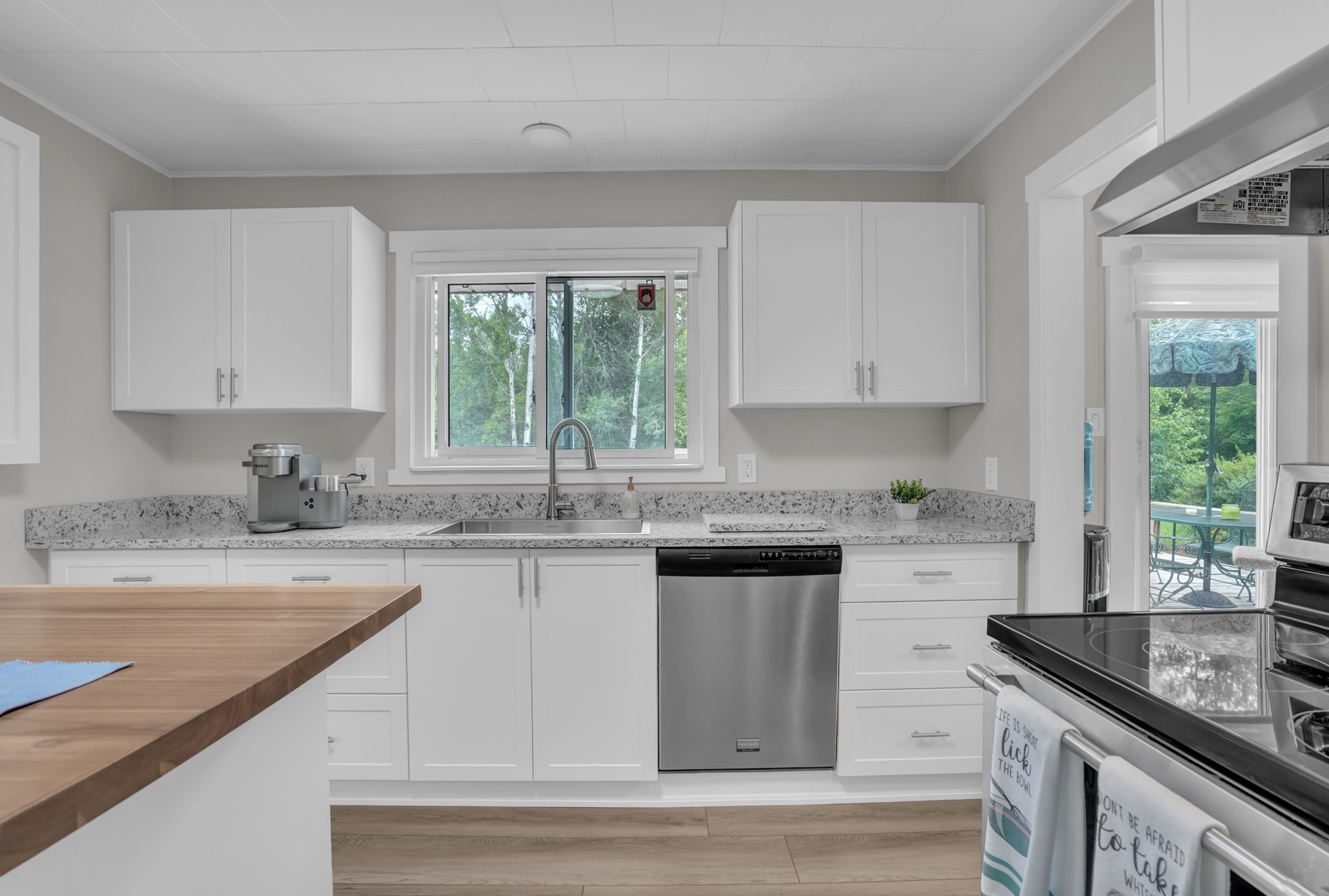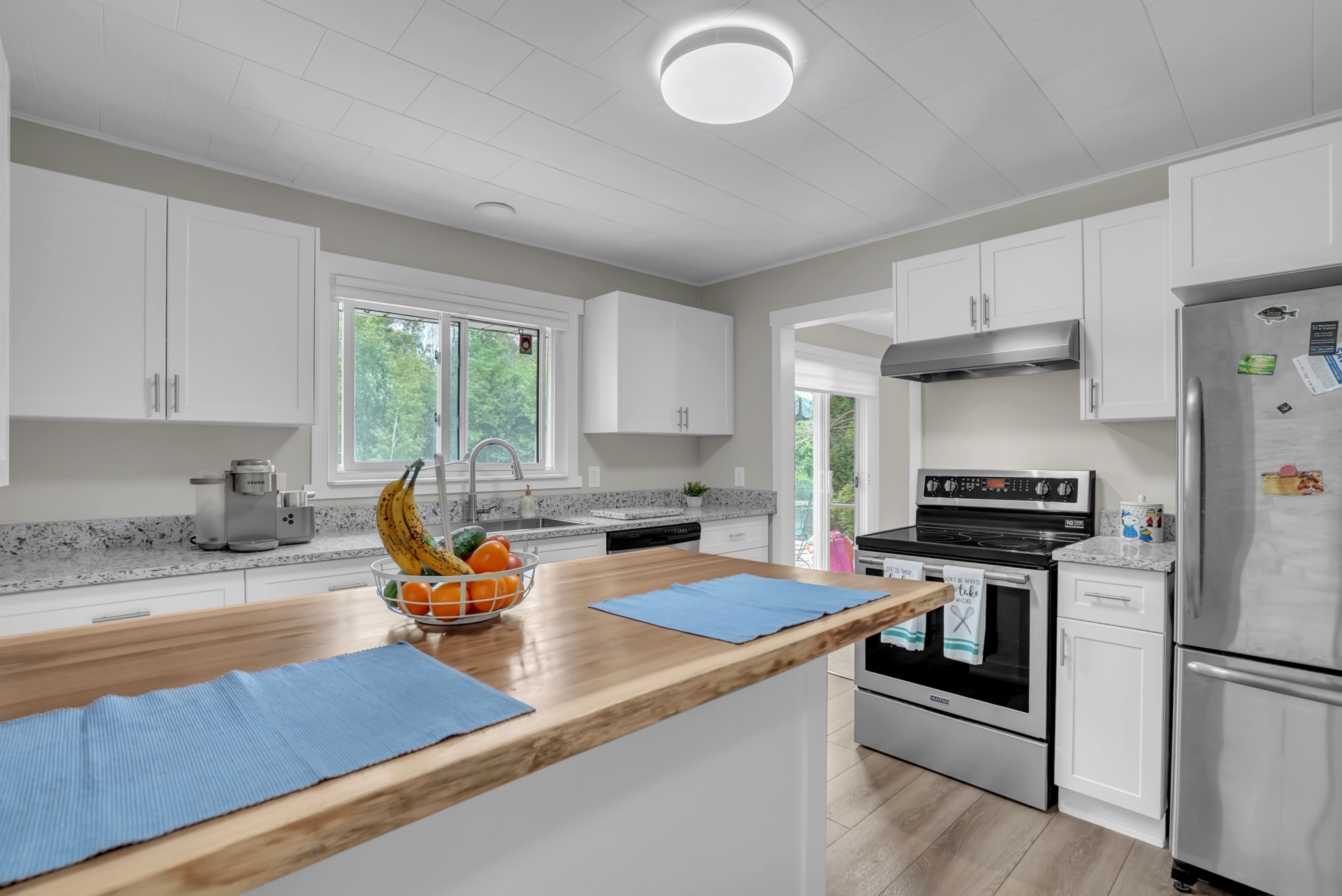 • Functional kitchen with modern appliances and granite countertops.