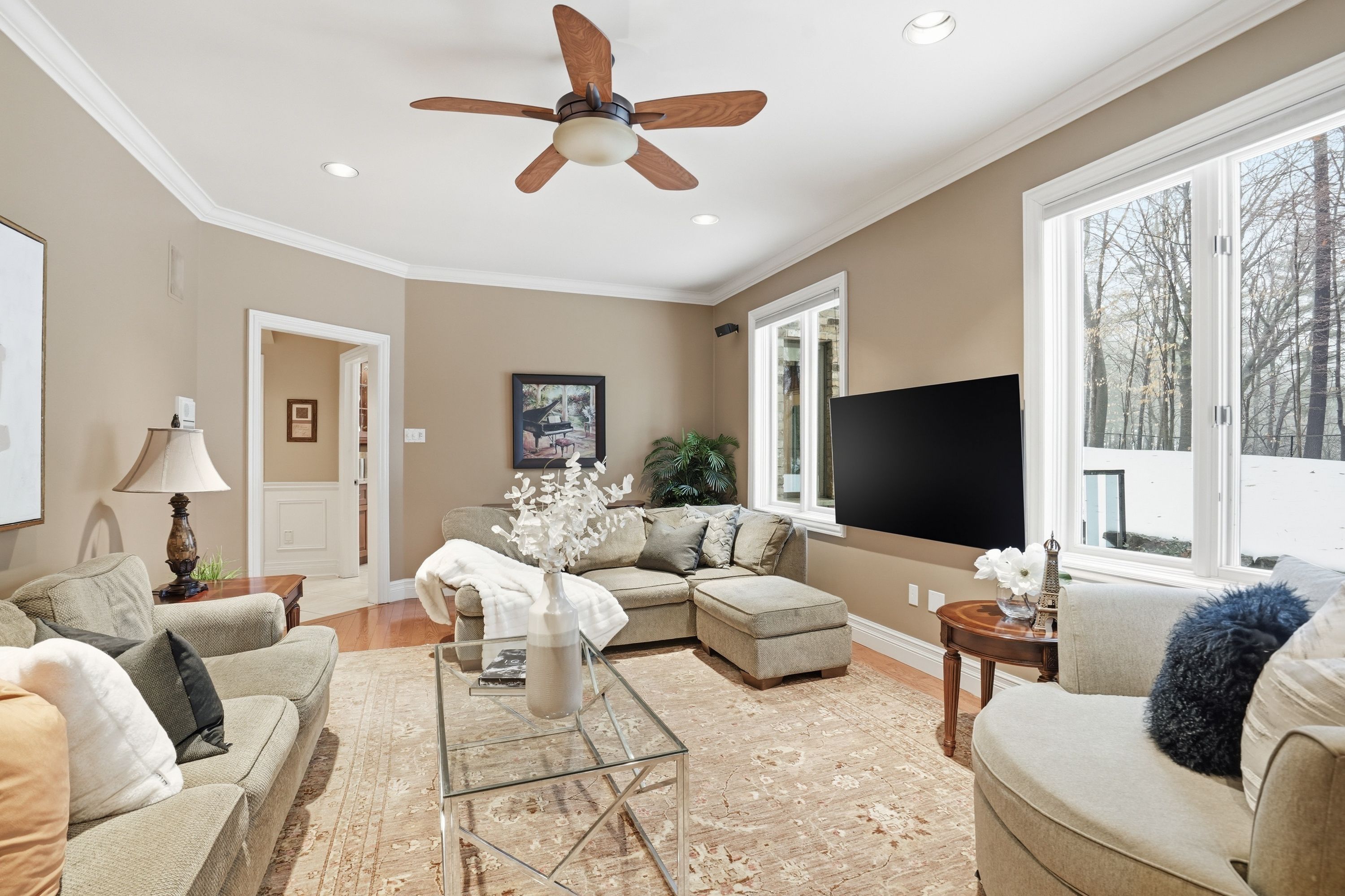 • Over 6,300 sq ft of living space in a private wooded lot.