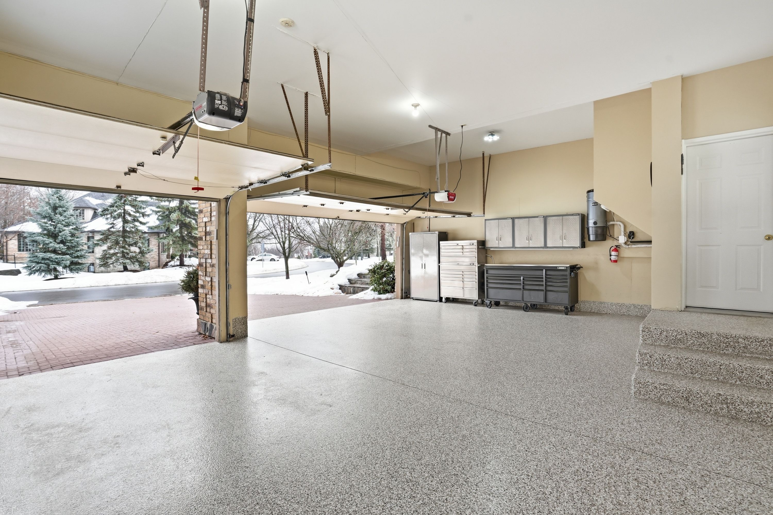 • Stately brick facade with a triple car garage and parking for 9.