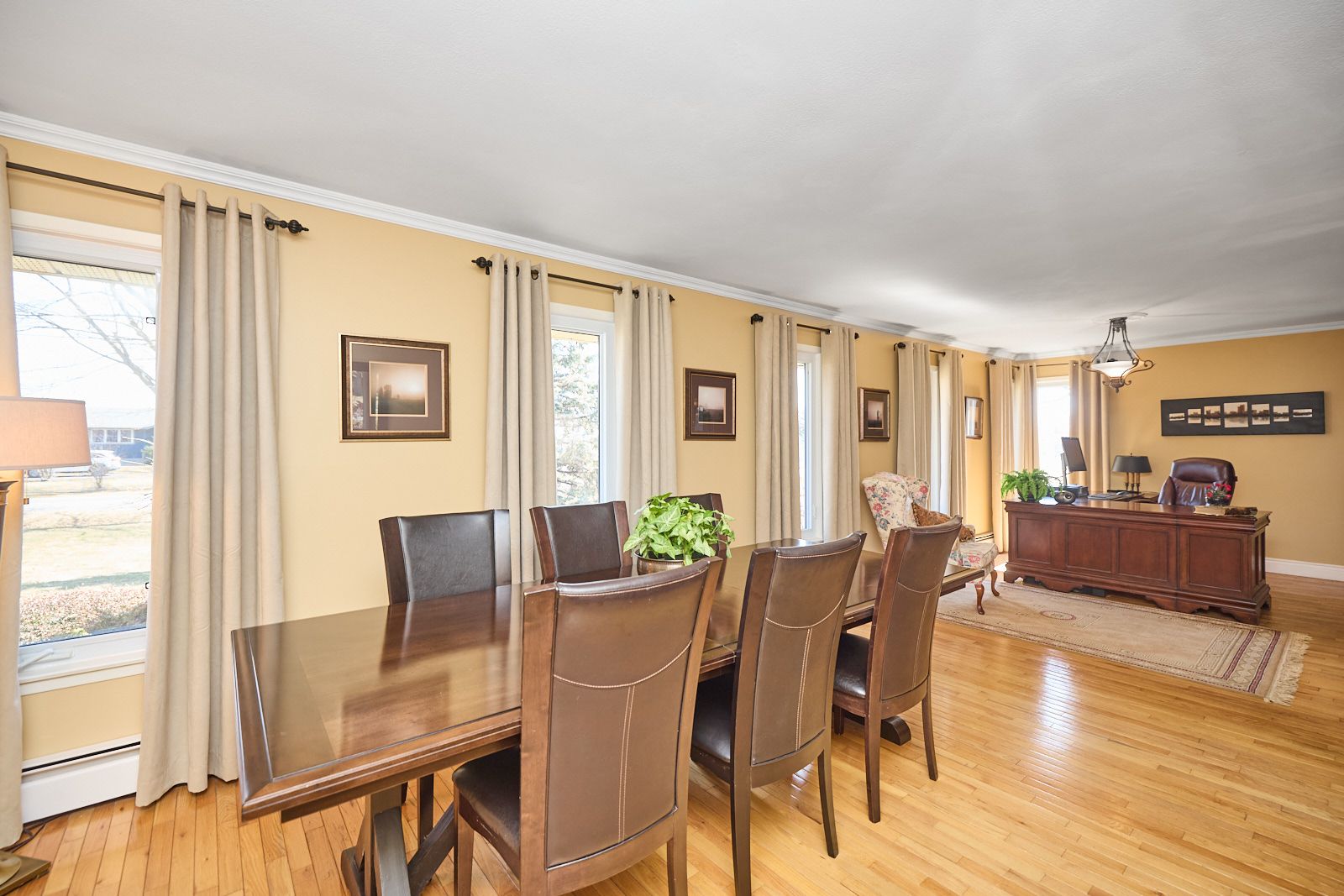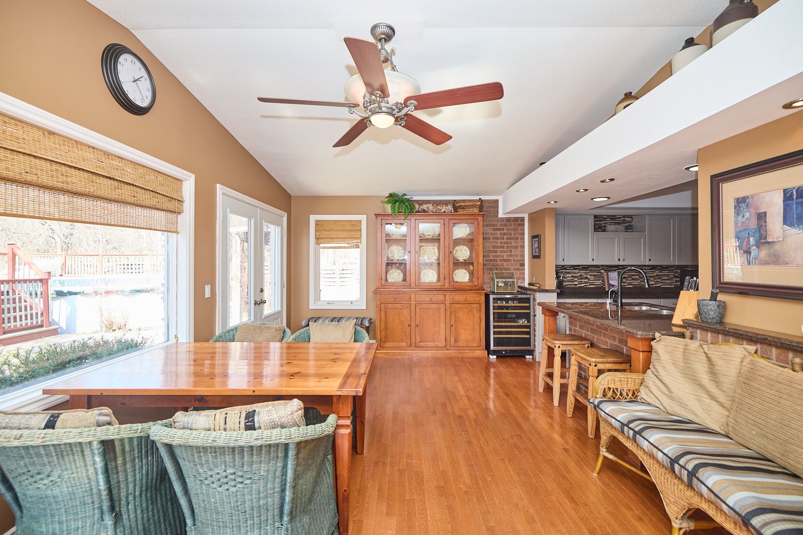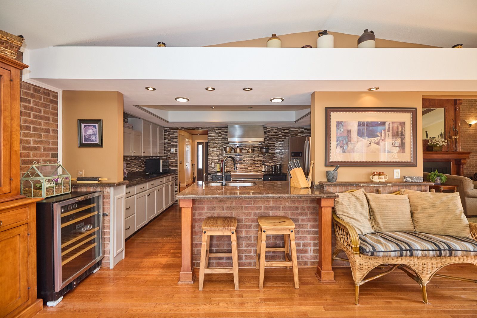 Set on an expansive 125x225 ft lot with no rear neighbours, 1121 pettit rd offers privacy, versatility, and beautifully upgraded living just minutes from shopping, services, schools and recreation - with easy access to the qew to toronto and peace bridge to buffalo. This thoughtfully renovated home blends timeless character with modern comfort. Inside, vaulted ceilings and abundant natural light create a bright, airy atmosphere. The living room is anchored by a stunning custom wood and brick fireplace surround and exposed beams, adding warmth and architectural charm. The main floor features a formal dining room, a dedicated office space, and a beautifully updated kitchen with peninsula and 2-seat breakfast bar, providing flexibility for everyday living, entertaining, and working from home. The welcoming foyer leads through the kitchen to the light-filled family room with secondary dining area and double doors leading to the backyard. A bedroom with an adjoining 3-piece ensuite allows for convenient main-floor living, while an additional 3-piece bathroom, mudroom with garage access, and laundry room add practicality. Upstairs are two spacious bedrooms, including one with ensuite privilege to a 4-piece bathroom featuring a relaxing soaker tub and built-in towel storage. The finished basement enhances the home's versatility with a second kitchen, large rec room, den, and potential for a fourth bedroom - ideal for multi-generational living, guests, or in-law capability. Outdoors, the landscaped yard feels like a private retreat. Mature trees, winding garden paths, and lush greenery attract birds and wildlife, creating a peaceful setting. Enjoy summer days by the above-ground pool, relax on the covered patio, or gather with family and friends in the expansive backyard with gazebo and sheds. Offering space, flexibility, and elegant upgrades inside and out, this is a rare opportunity to enjoy tranquil living without sacrificing convenience.