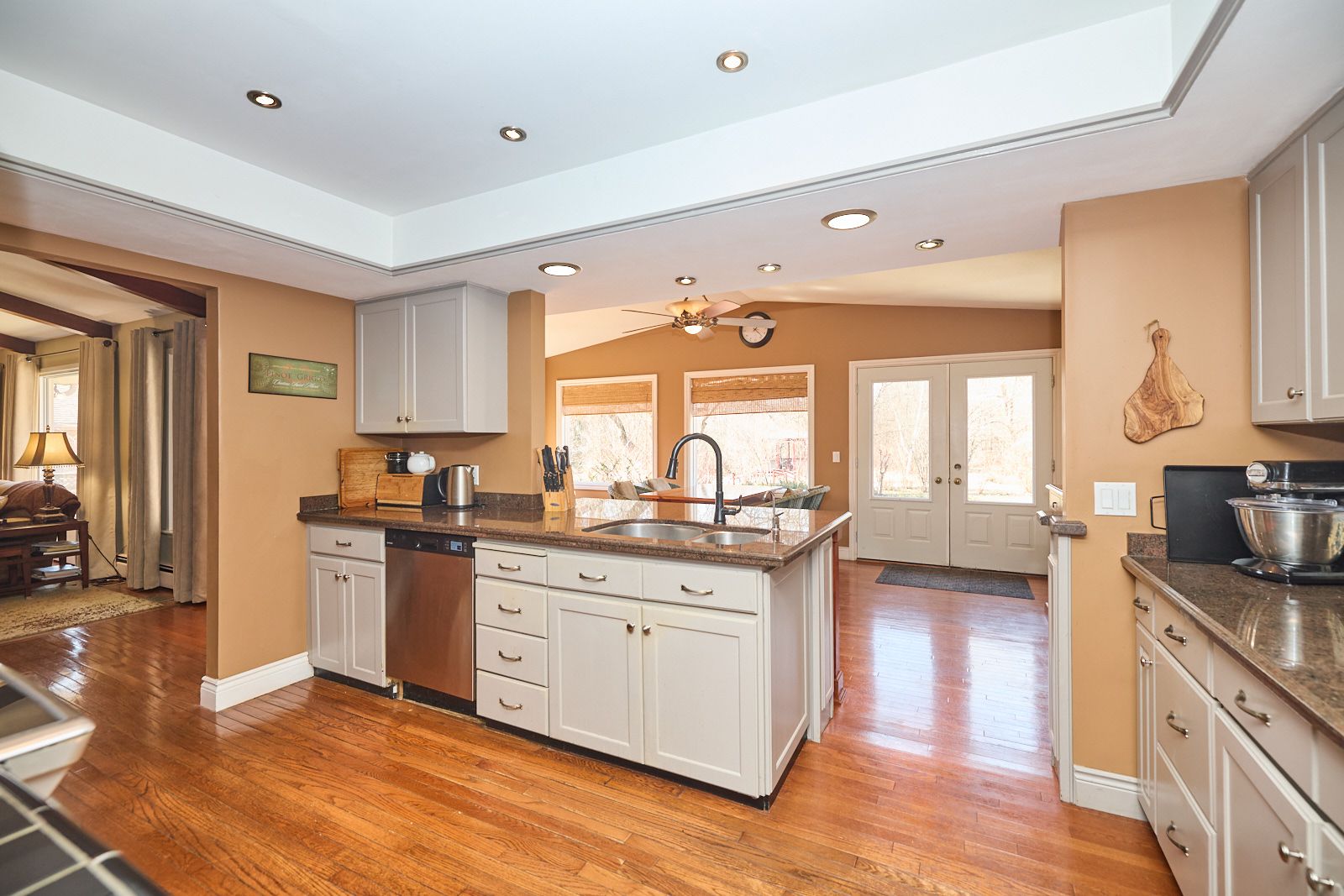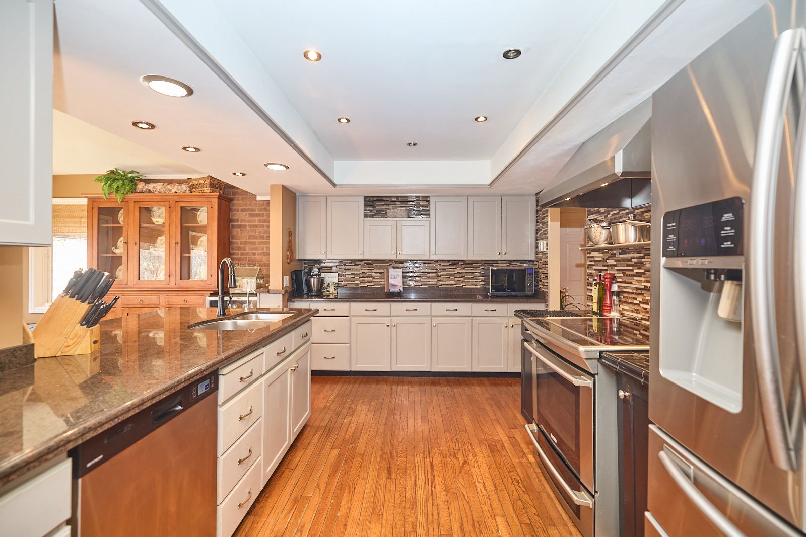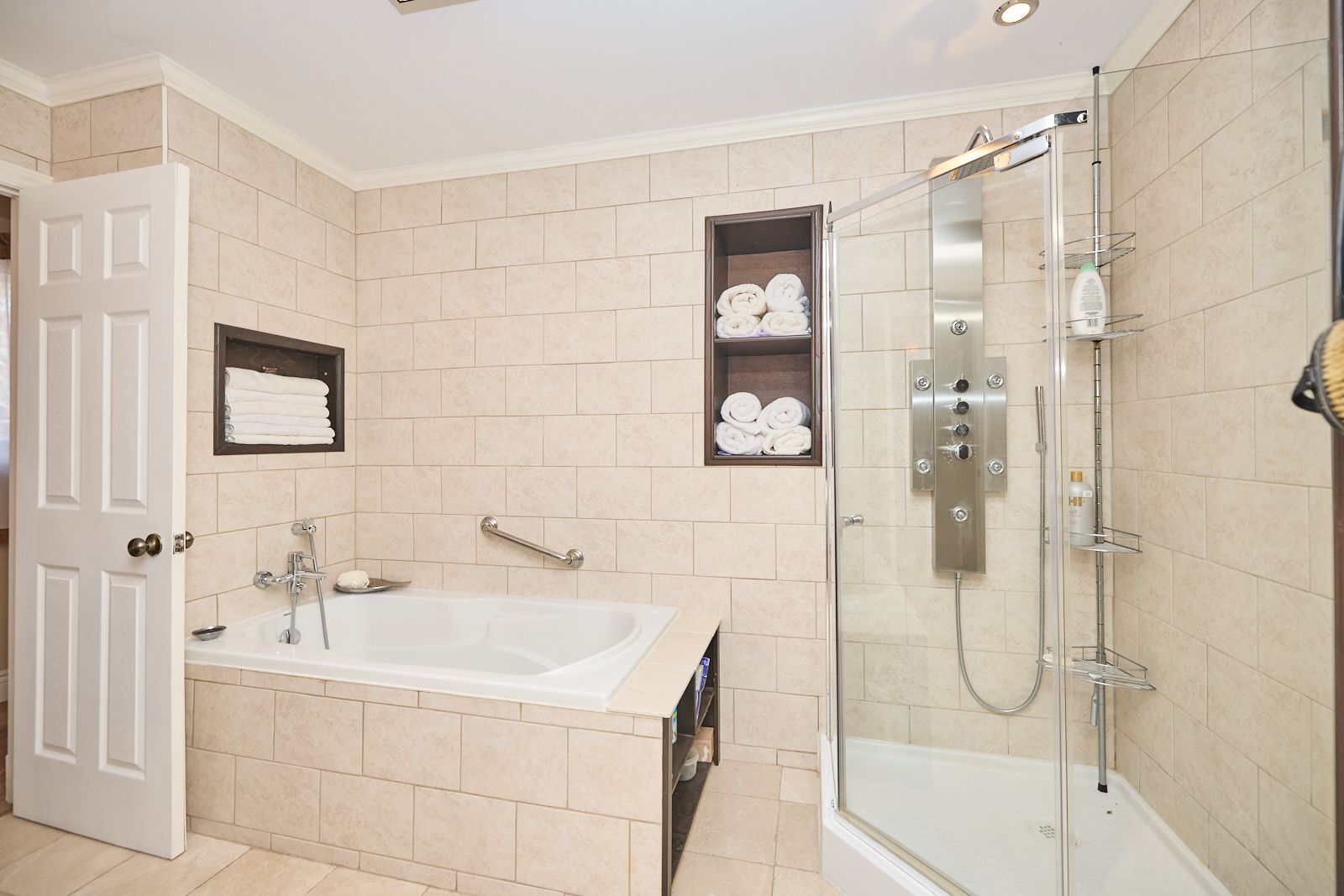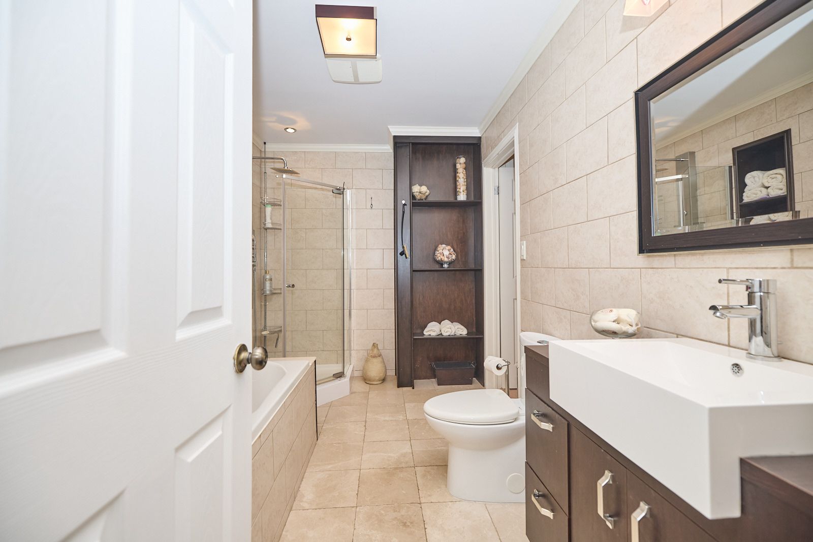 Set on an expansive 125x225 ft lot with no rear neighbours, 1121 pettit rd offers privacy, versatility, and beautifully upgraded living just minutes from shopping, services, schools and recreation - with easy access to the qew to toronto and peace bridge to buffalo. This thoughtfully renovated home blends timeless character with modern comfort. Inside, vaulted ceilings and abundant natural light create a bright, airy atmosphere. The living room is anchored by a stunning custom wood and brick fireplace surround and exposed beams, adding warmth and architectural charm. The main floor features a formal dining room, a dedicated office space, and a beautifully updated kitchen with peninsula and 2-seat breakfast bar, providing flexibility for everyday living, entertaining, and working from home. The welcoming foyer leads through the kitchen to the light-filled family room with secondary dining area and double doors leading to the backyard. A bedroom with an adjoining 3-piece ensuite allows for convenient main-floor living, while an additional 3-piece bathroom, mudroom with garage access, and laundry room add practicality. Upstairs are two spacious bedrooms, including one with ensuite privilege to a 4-piece bathroom featuring a relaxing soaker tub and built-in towel storage. The finished basement enhances the home's versatility with a second kitchen, large rec room, den, and potential for a fourth bedroom - ideal for multi-generational living, guests, or in-law capability. Outdoors, the landscaped yard feels like a private retreat. Mature trees, winding garden paths, and lush greenery attract birds and wildlife, creating a peaceful setting. Enjoy summer days by the above-ground pool, relax on the covered patio, or gather with family and friends in the expansive backyard with gazebo and sheds. Offering space, flexibility, and elegant upgrades inside and out, this is a rare opportunity to enjoy tranquil living without sacrificing convenience.