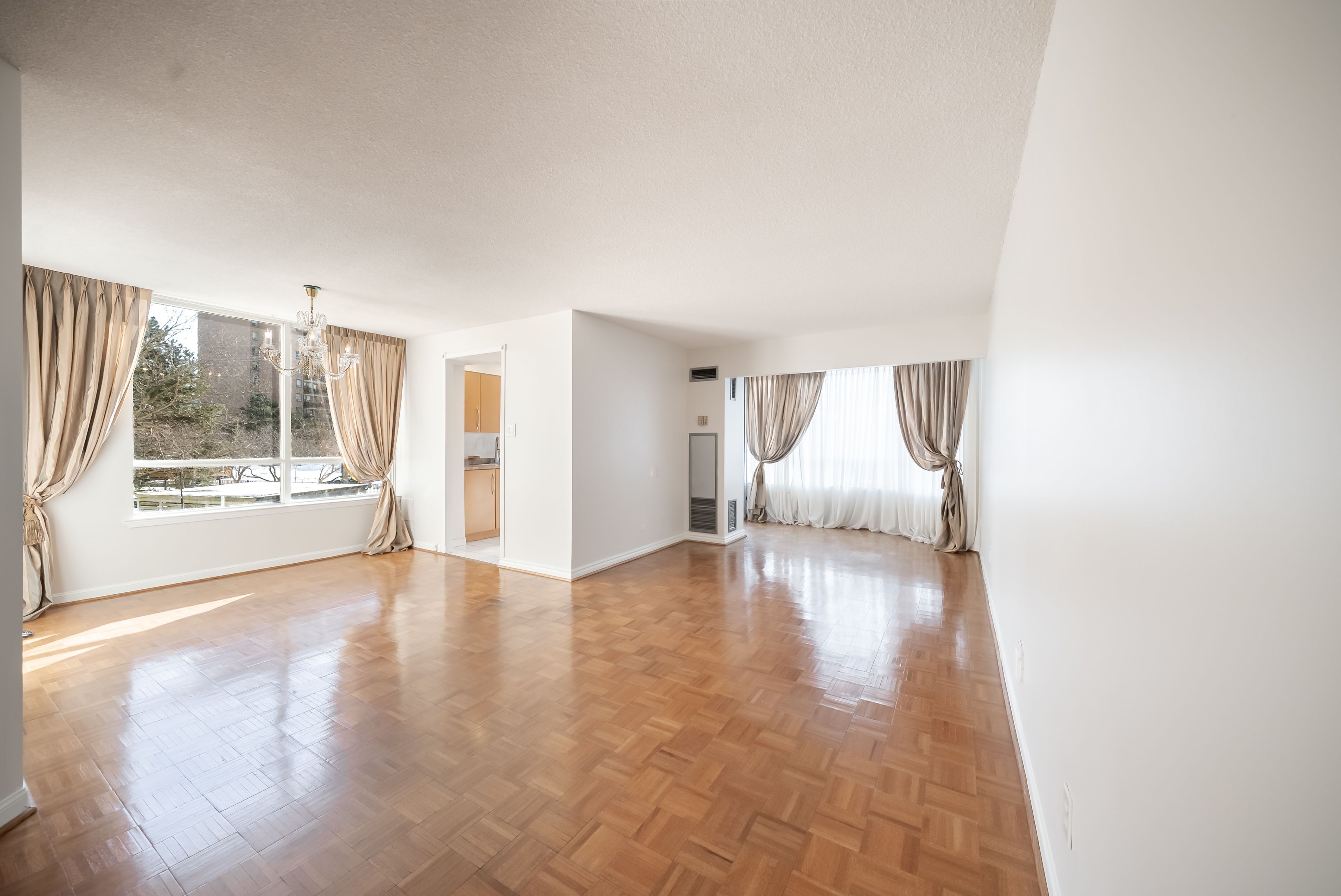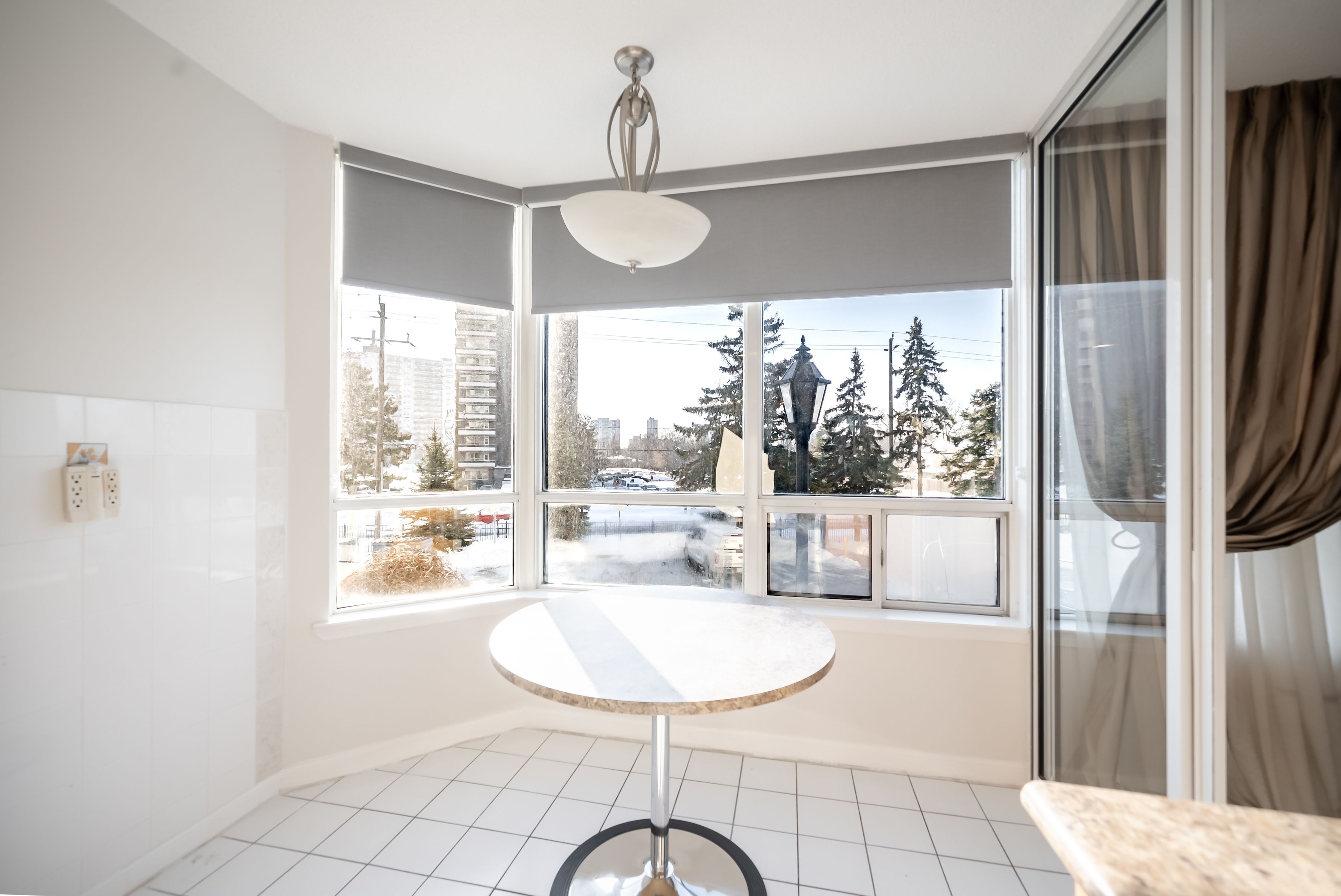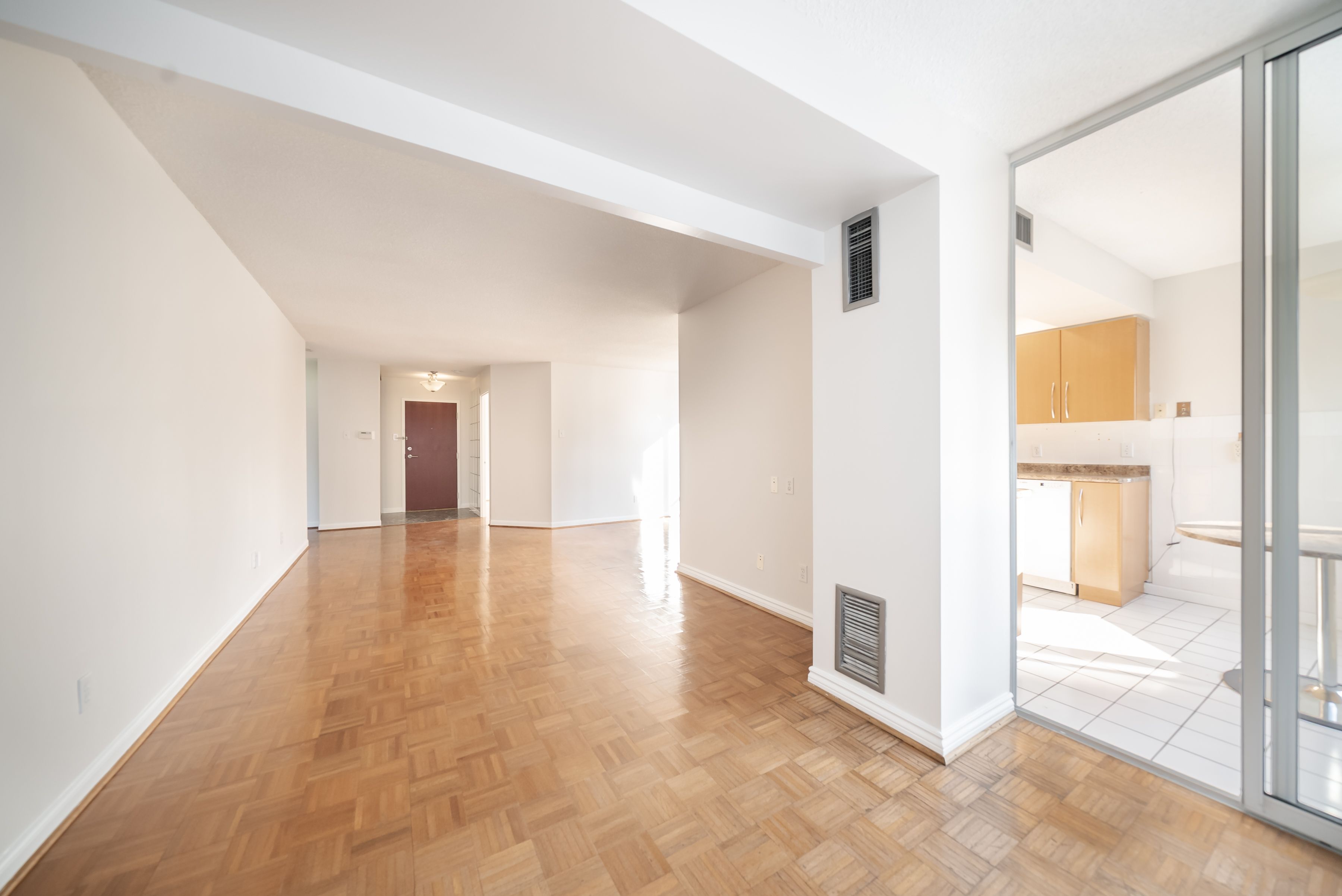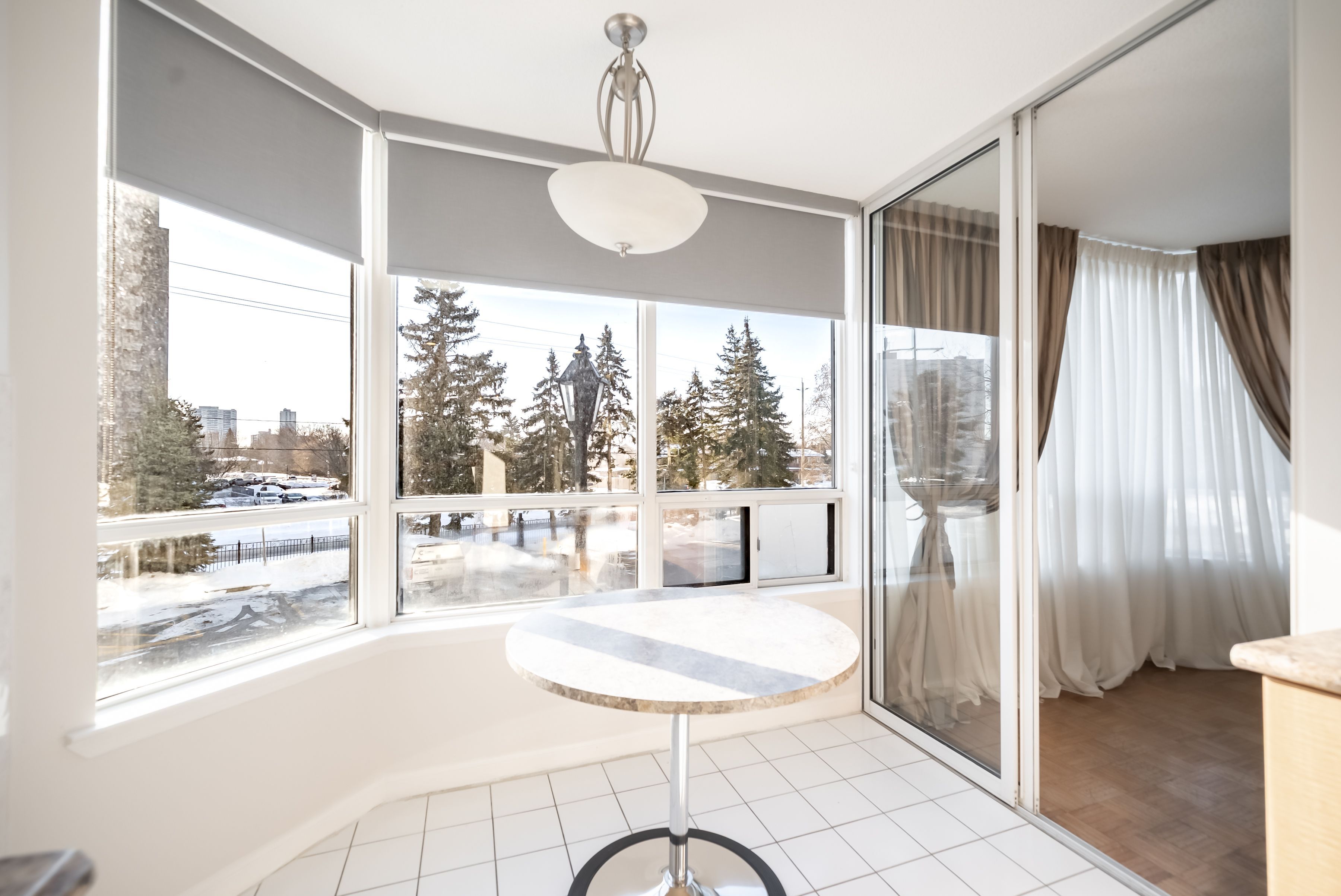 All inclusive living, done properly: all utilities, cable, and internet are covered, so you get one predictable monthly setup with no surprise add ons. Oversized 2 bedroom, 2 bathroom suite in a gated, family friendly community with the kind of space that makes day to day life easy. The sun filled solarium is perfect for a kids play zone, homework station, or home office. Huge living and dining area with parquet floors and big windows for comfortable everyday living and weekend hosting. Updated eat in kitchen with a breakfast area, plenty of storage, and pot lights. Two spacious bedrooms, including a primary with its own ensuite, plus ensuite laundry for convenience. Two underground parking spaces included. Enjoy a true community feel with great shared spaces and amenities including a gym, tennis court, and party room, plus gated security. Steps to transit, shopping, parks, and everyday essentials.