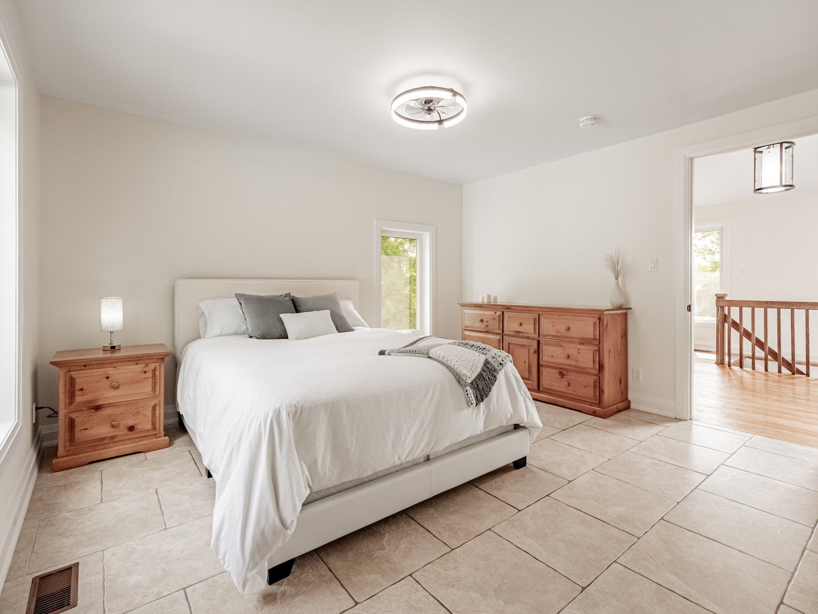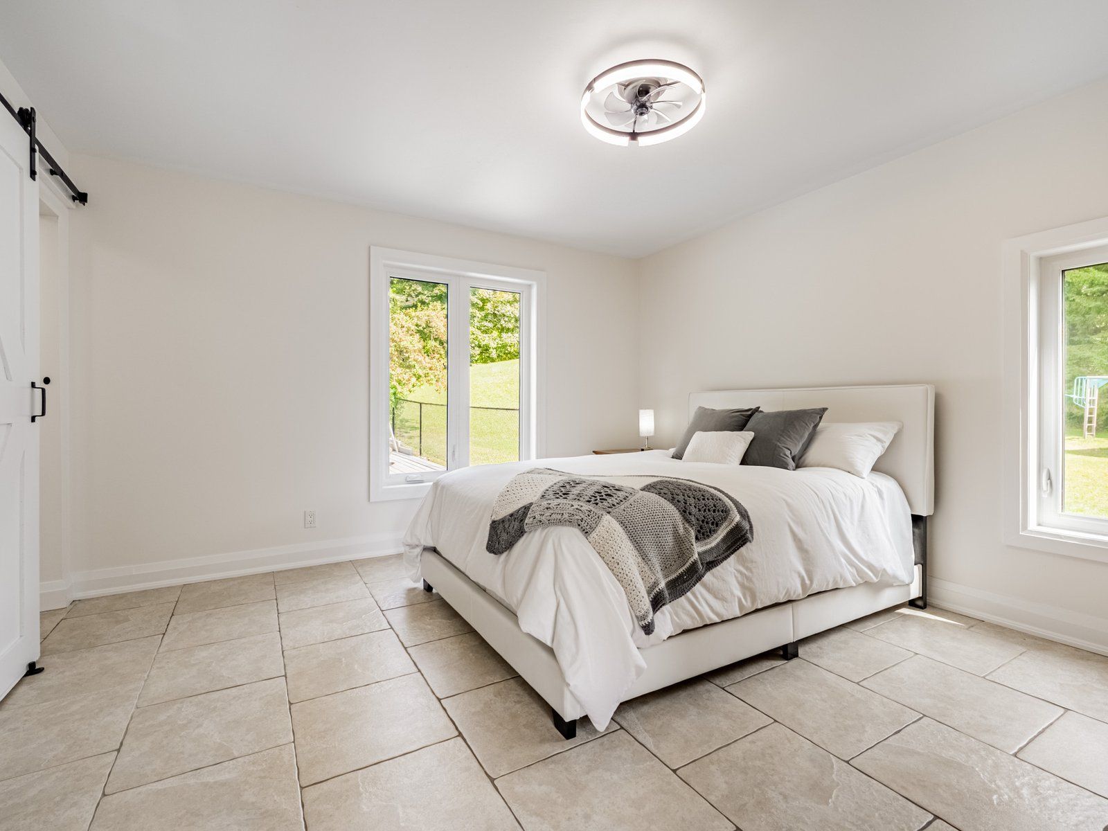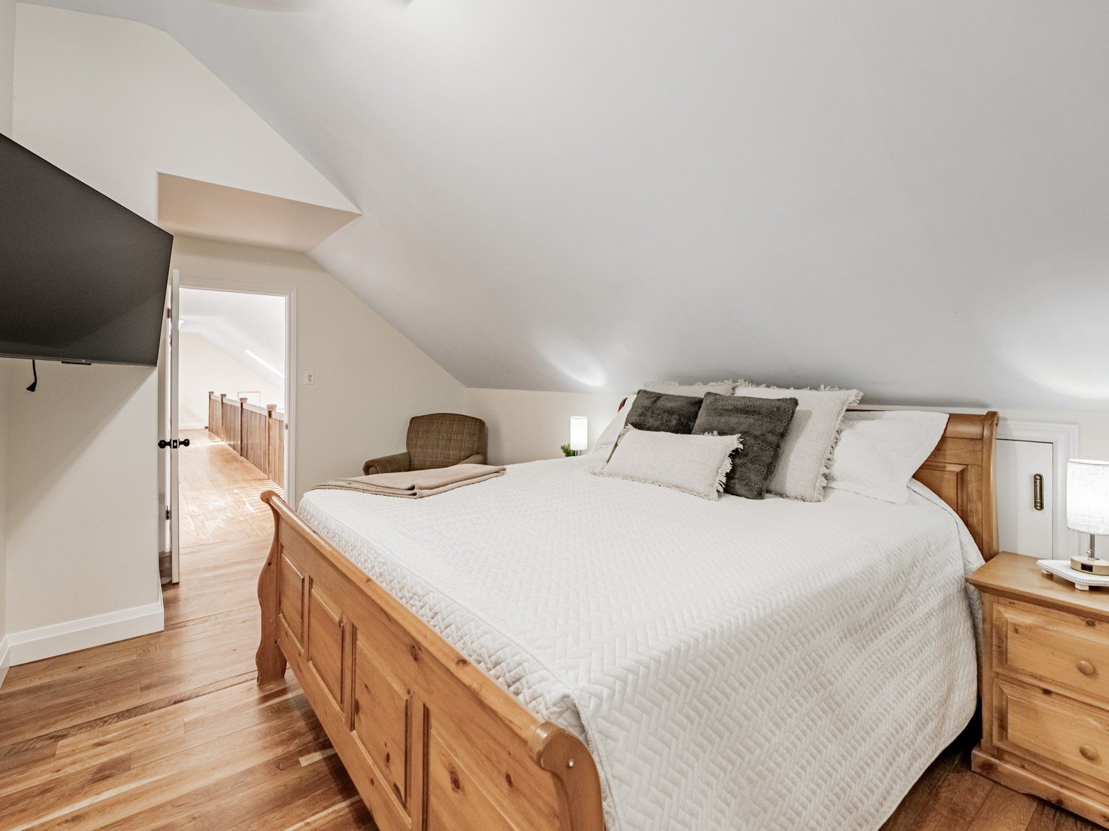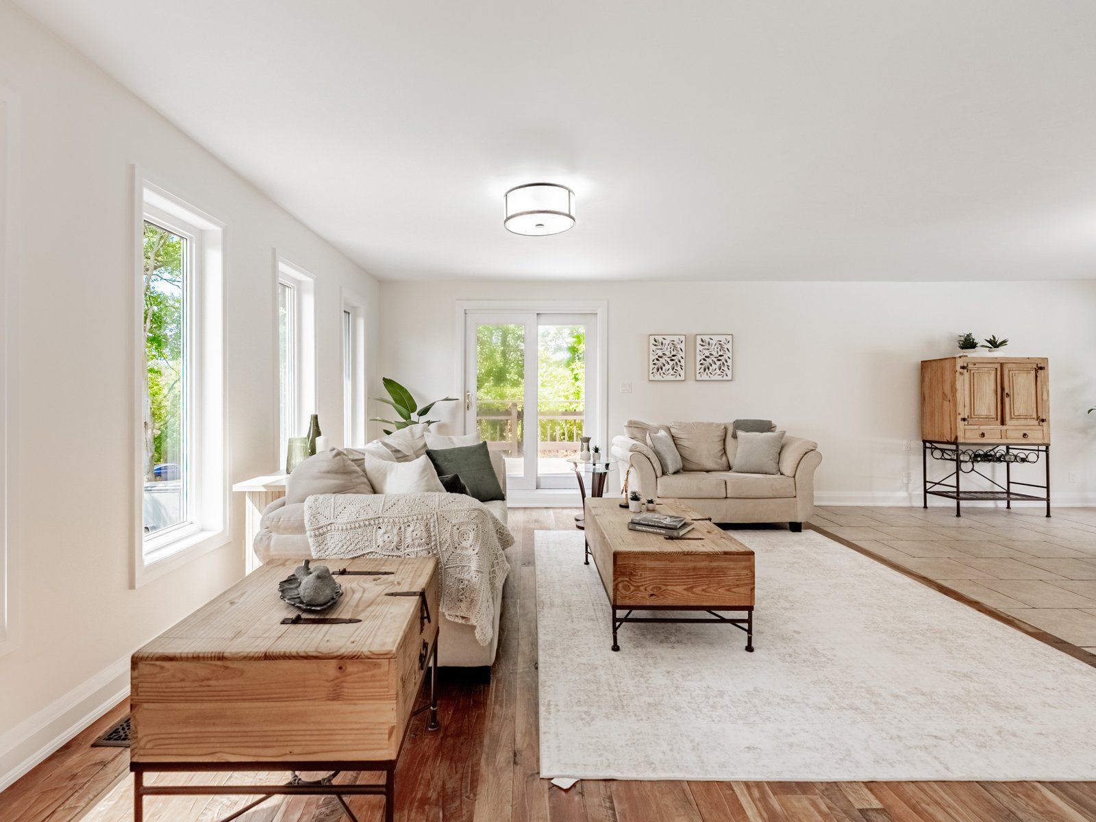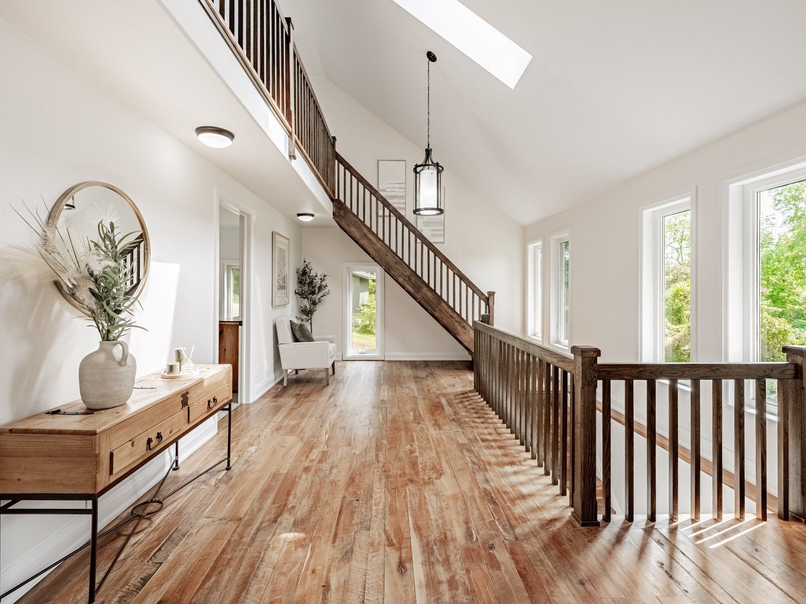 • Open-concept main floor with cathedral ceilings and natural light.
