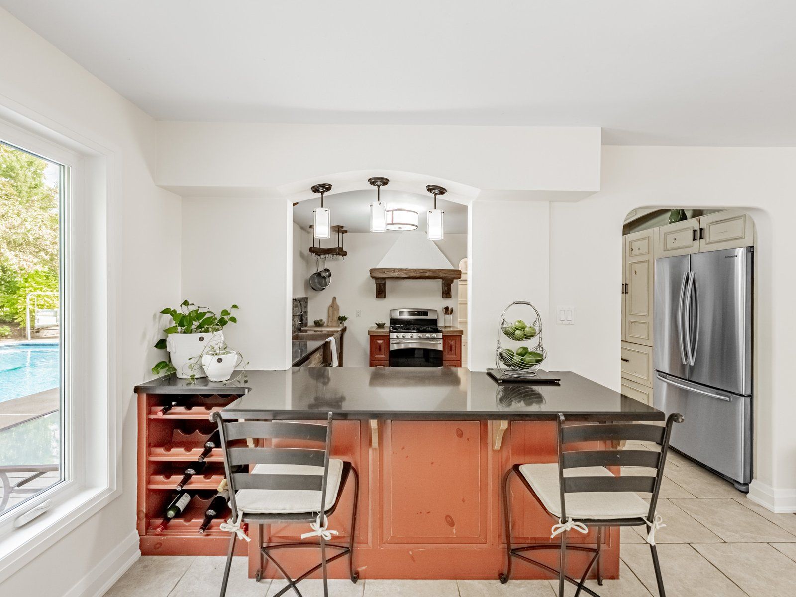 • Gorgeous custom kitchen with quartz countertops for culinary enthusiasts.