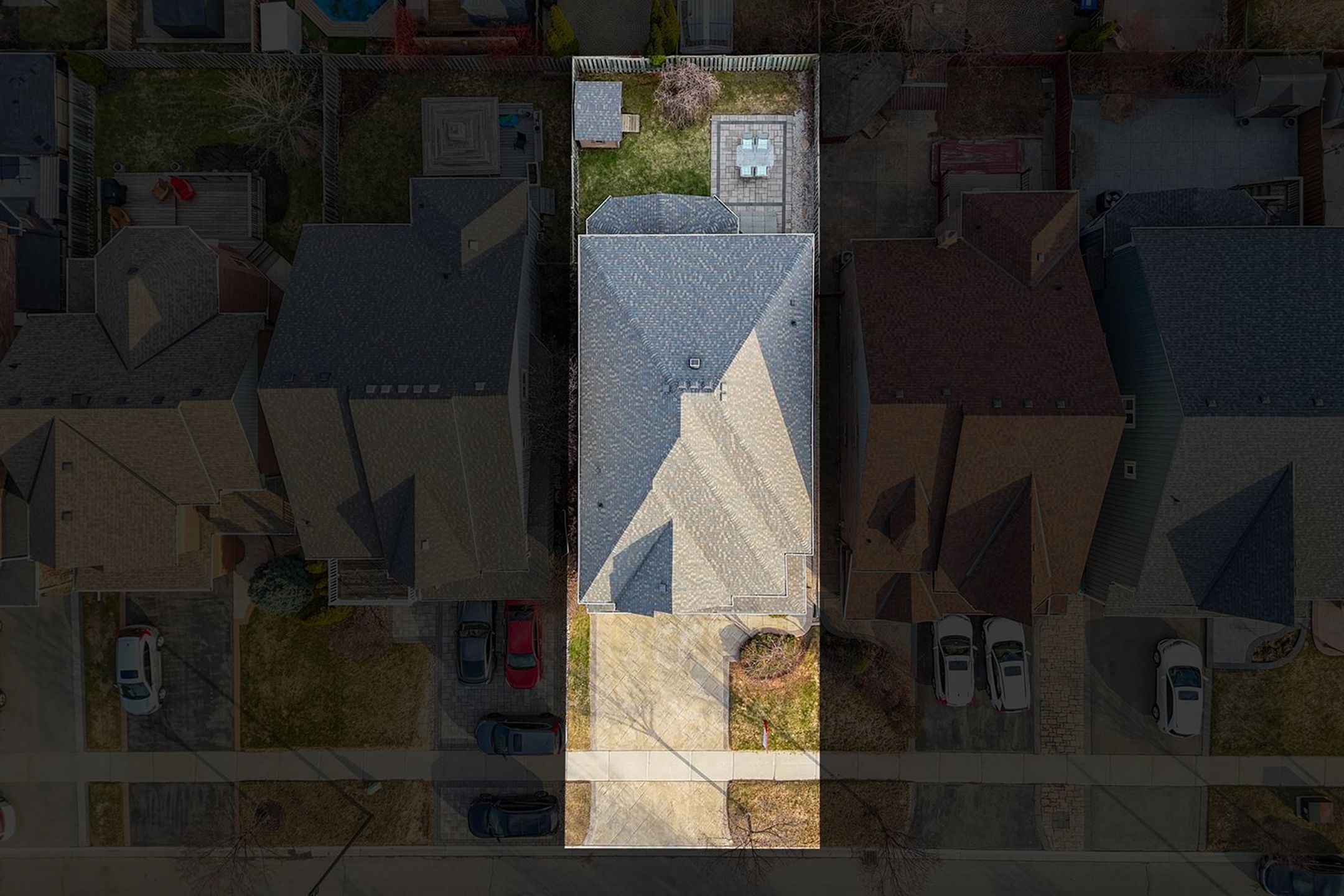 • Private backyard with interlocking patio and storage shed.