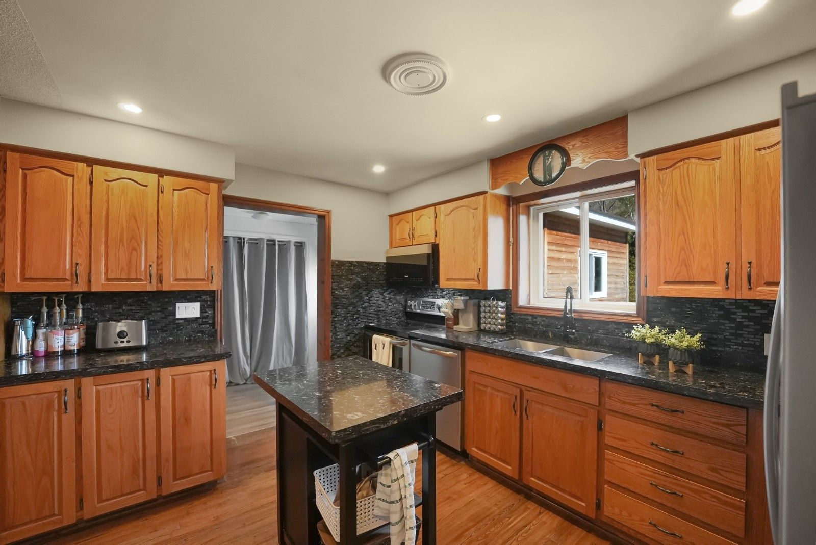 Positioned on nearly an acre in the highlands, this move-in ready home offers the space and flexibility families need, with a convenient location between haliburton and bancroft for easy access to both communities. A spacious front deck welcomes you in and sets the tone for relaxed outdoor living-perfect for morning coffee, evening chats, or watching kids enjoy the yard. Inside, the open-concept main level is warm and inviting, centred around a wood stove that adds comfort and character throughout the cooler months. The updated eat-in kitchen is both practical and stylish, featuring granite countertops, oak cabinetry, and generous space for everyday meals and family gatherings. The finished lower level adds valuable living space with a rec room complete with a pellet stove and bar area-ideal for movie nights, entertaining, or giving everyone room to spread out. An additional finished room offers flexibility for a home office, playroom, or fitness area depending on your needs. Outside, the partially fenced yard provides peace of mind for kids and pets, while the detached garage, carport, and insulated outbuilding deliver excellent storage and year-round functionality. The outbuilding also houses a 7-person beachcomber hot tub, creating a private space to unwind at the end of the day. With a nearby playground, access to snowmobile and atv trails, and a strong sense of community, this property offers a comfortable lifestyle in a setting that supports both adventure and everyday living.