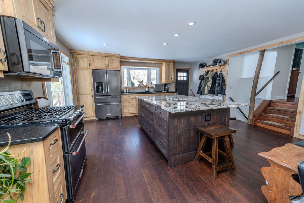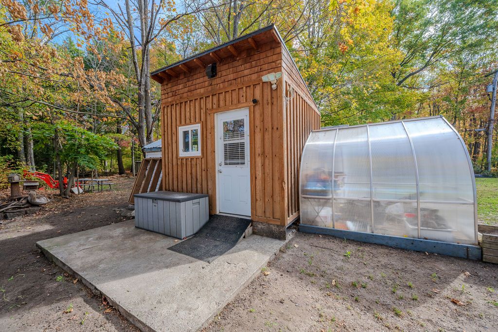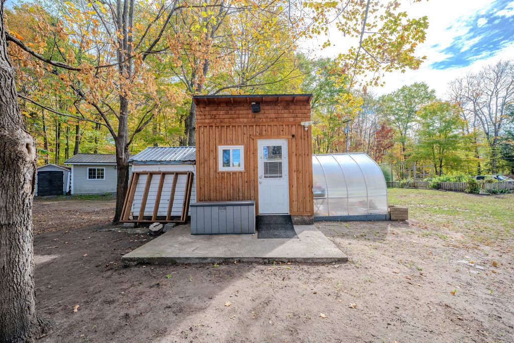 Where the water greets the sky and the trees stand as timeless guardians, you'll find 221 feet of clean, inviting shoreline on sydenham lake. A gentle, gradual entry invites you to wade, launch, or linger. This level, private property blurs the line between indoors and out. From the extensive two tier deck, the view is nothing but water and horizon-an uninterrupted canvas of morning sunrises and evening reflections. Inside, warmth and craftsmanship embrace you. An open-concept kitchen and living area, finished with granite countertops and maple cabinetry, flows seamlessly around a flickering gas fire. Three bedrooms and two-and-a-half baths provide comfort, while the lower-level walk out-perfect as a bedroom or family retreat-offers its own connection to the outdoors. Practical comforts weave into the charm: a ductless heat pump, two fireplaces, and a durable metal roof ensure peace of mind. The detached, fully insulated and heated garage-currently a dream-worthy home gym-adds enviable versatility. Among towering trees and whispering breezes, privacy and serenity reign. Located at the end of a dead end lane with only one year round neighbour, there is space to roam, to gather, to pause-and to live with the rhythm of the lake as your constant companion.