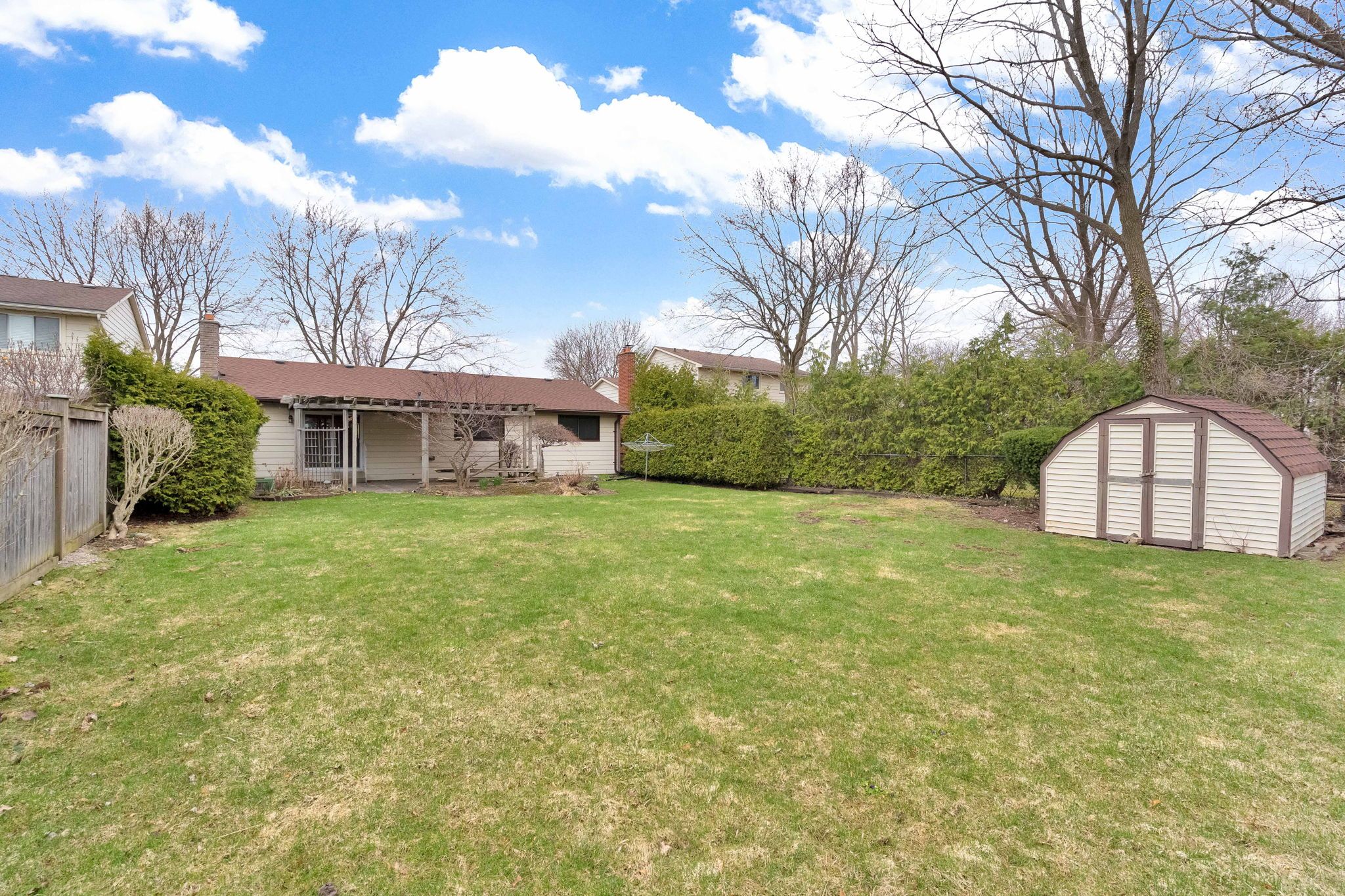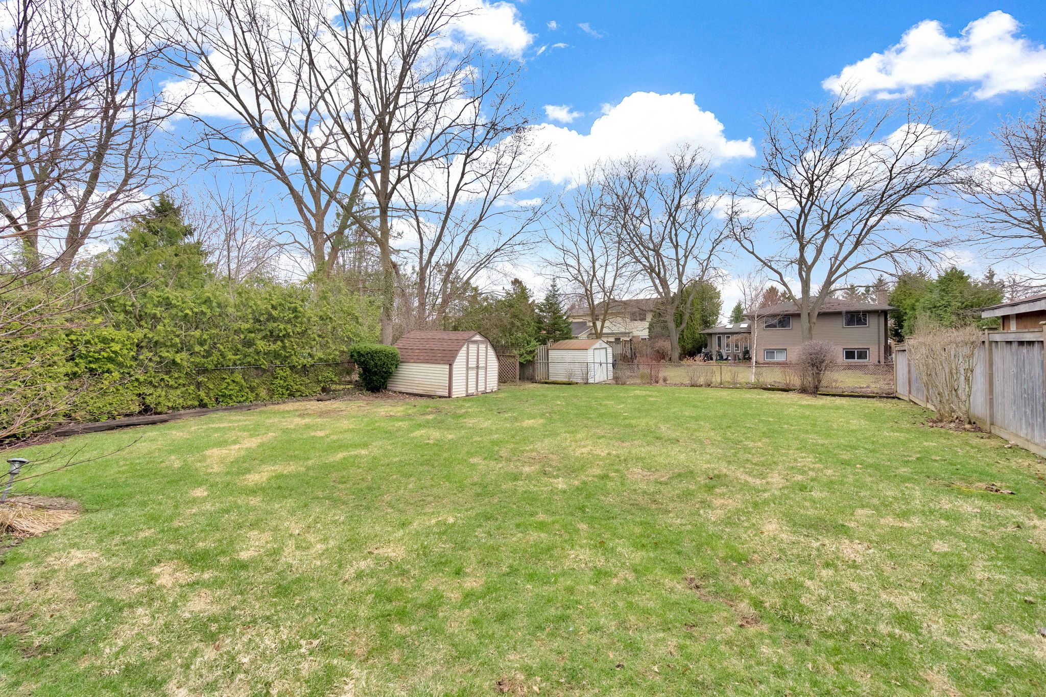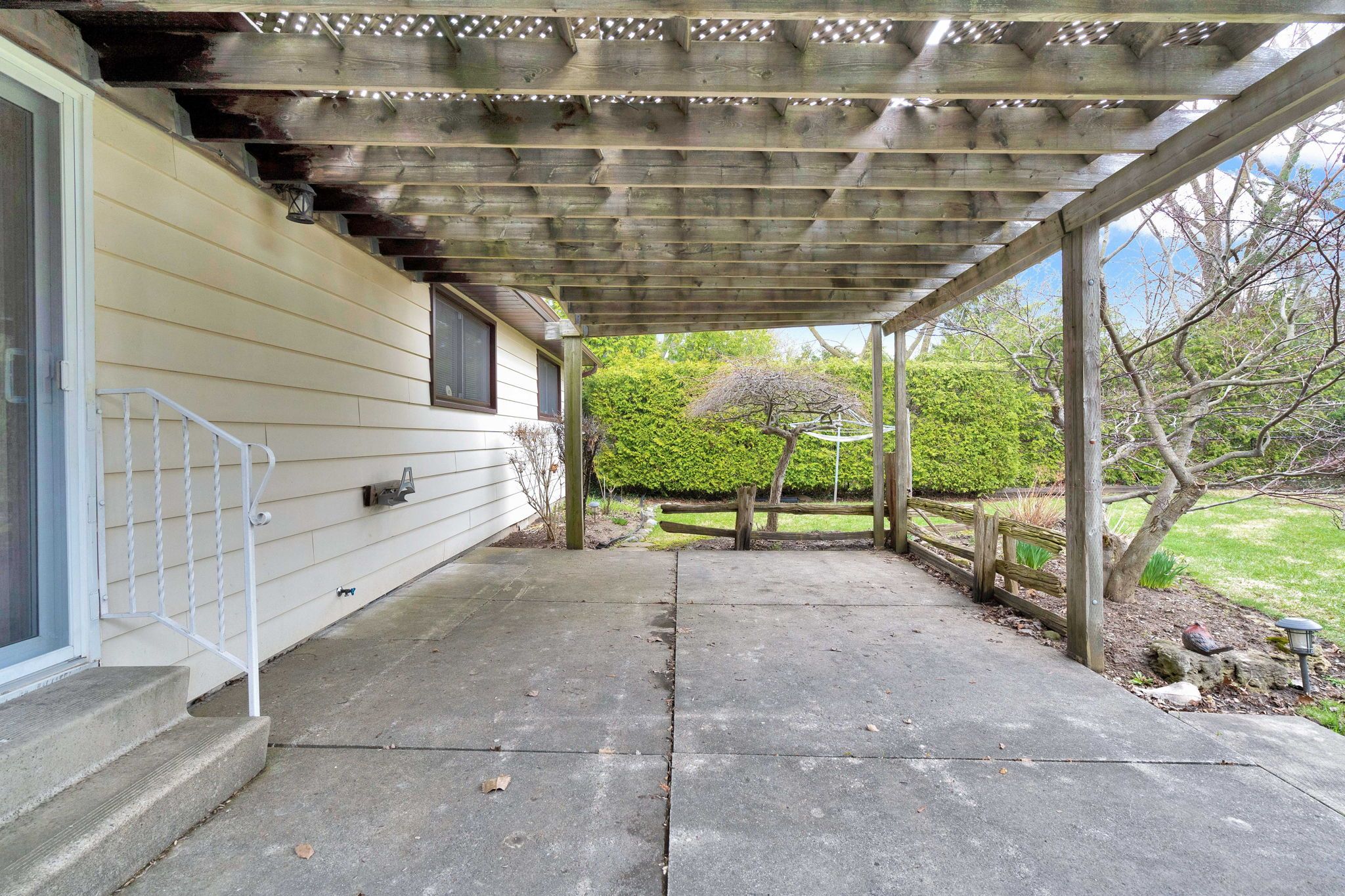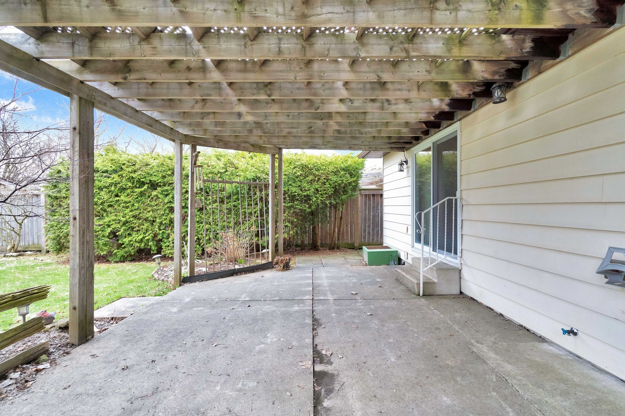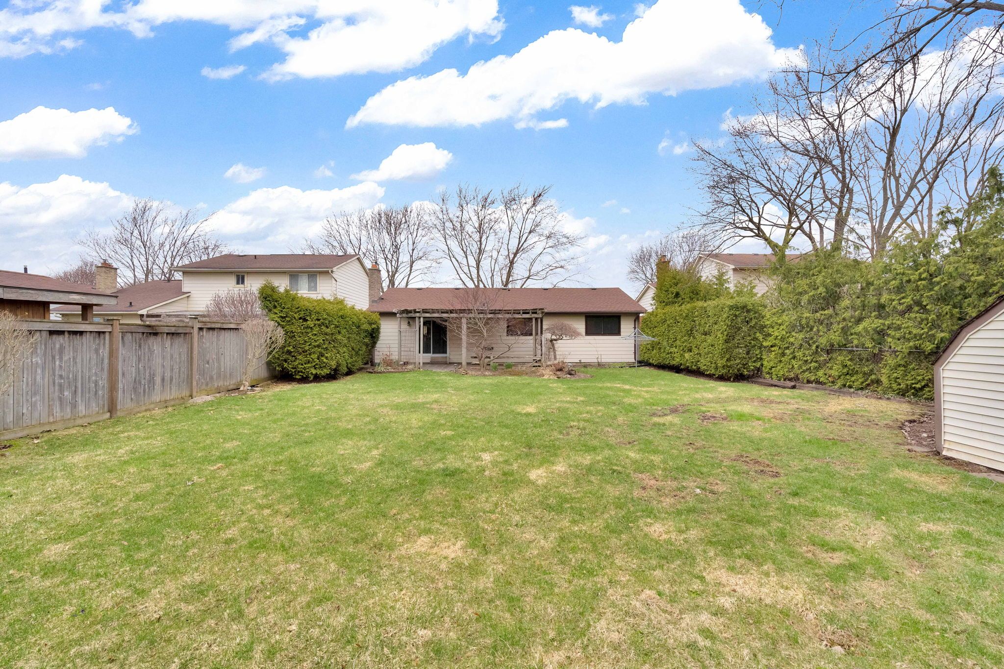 • Large fenced backyard with a patio, great for outdoor relaxation and activities.