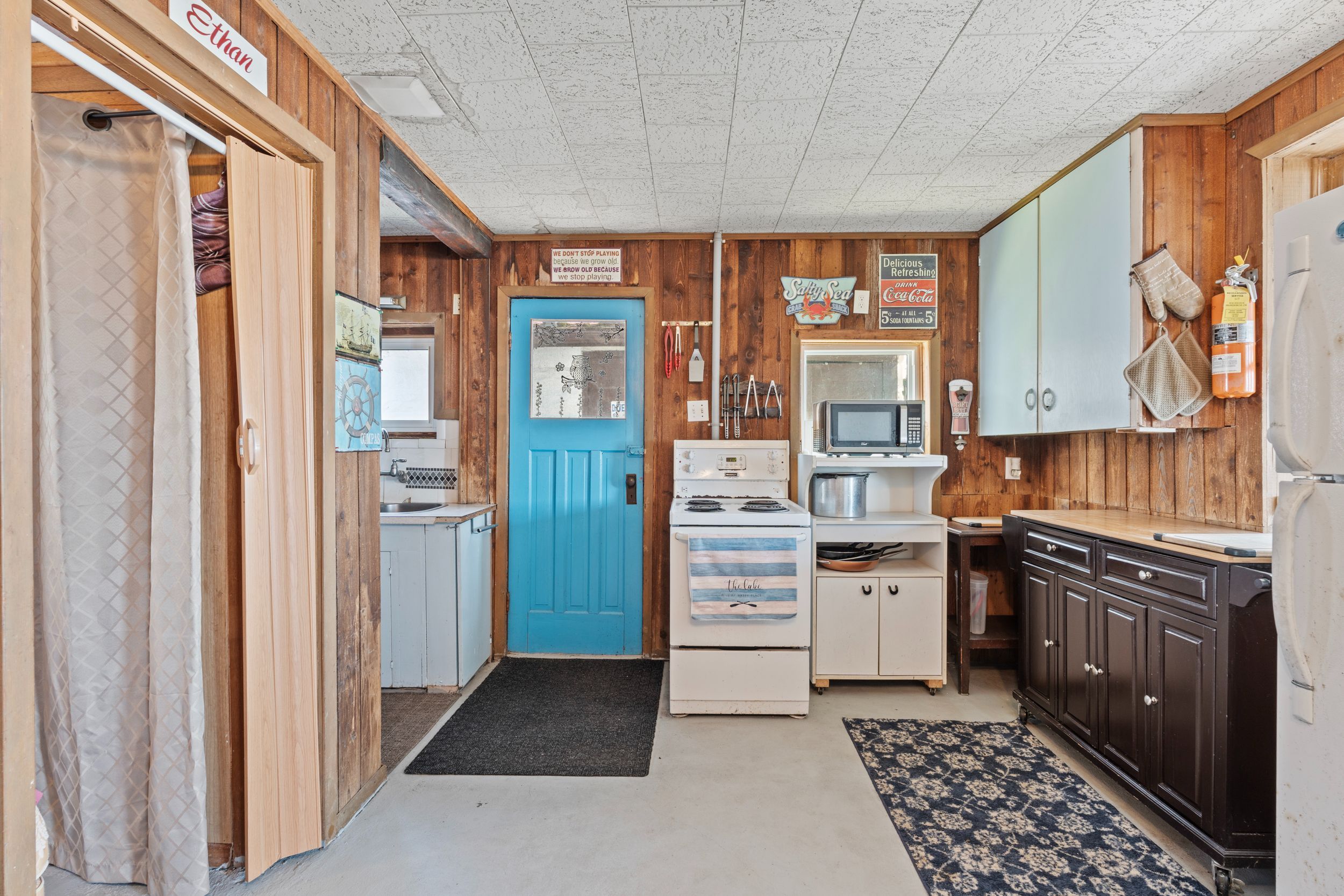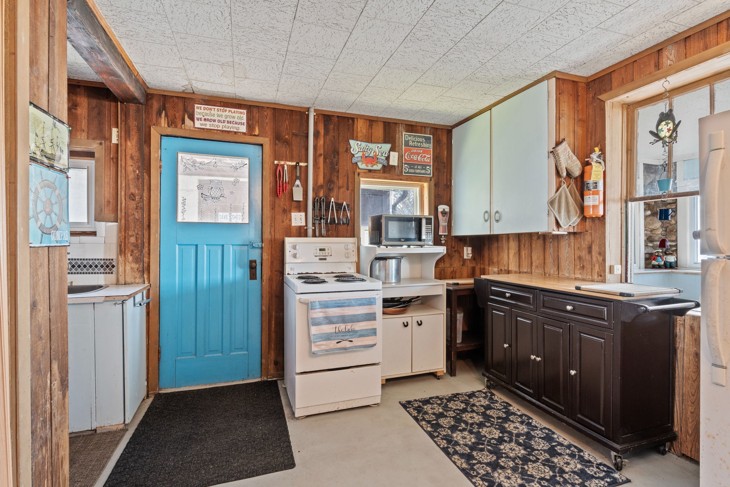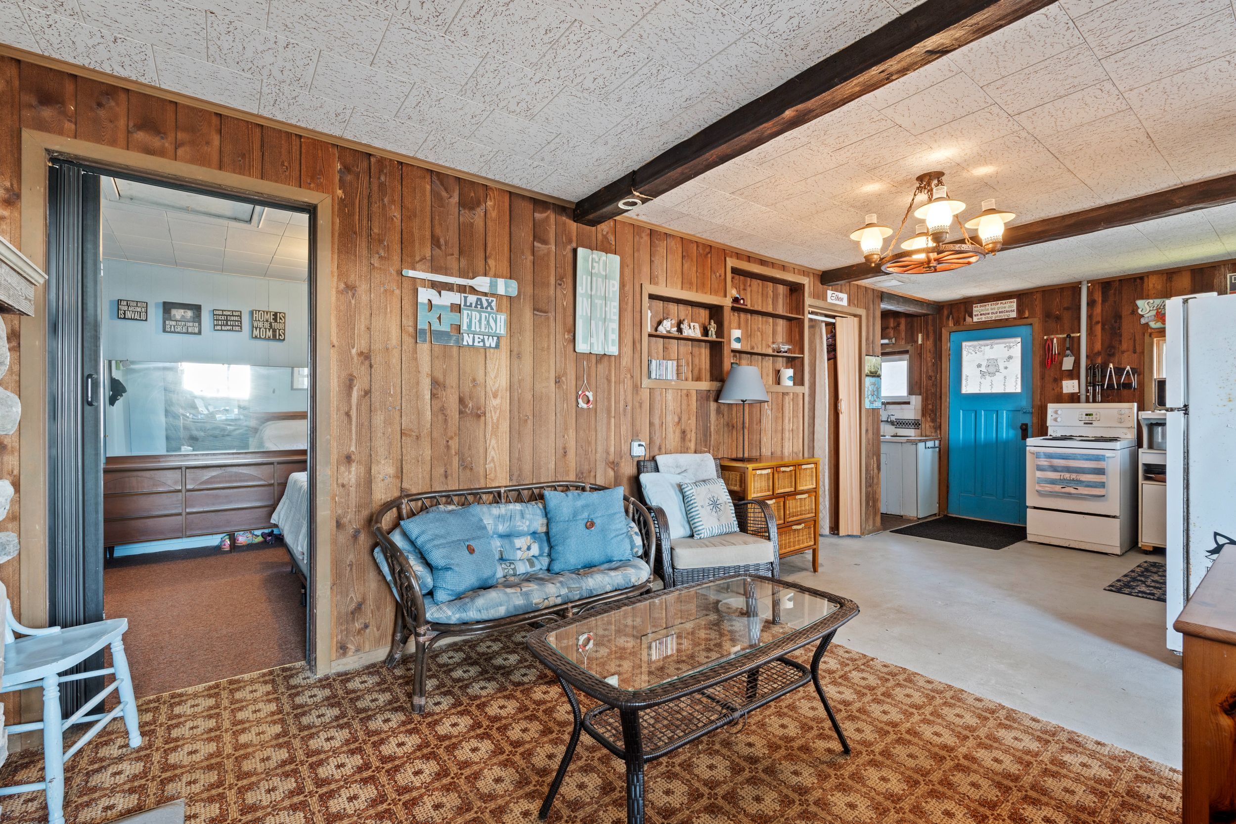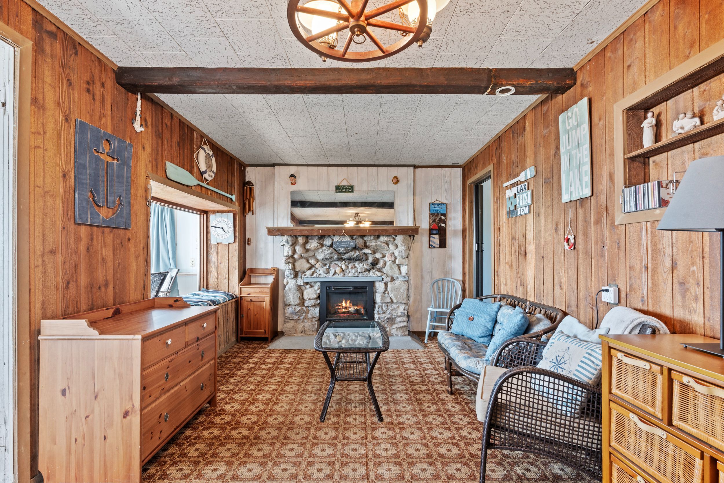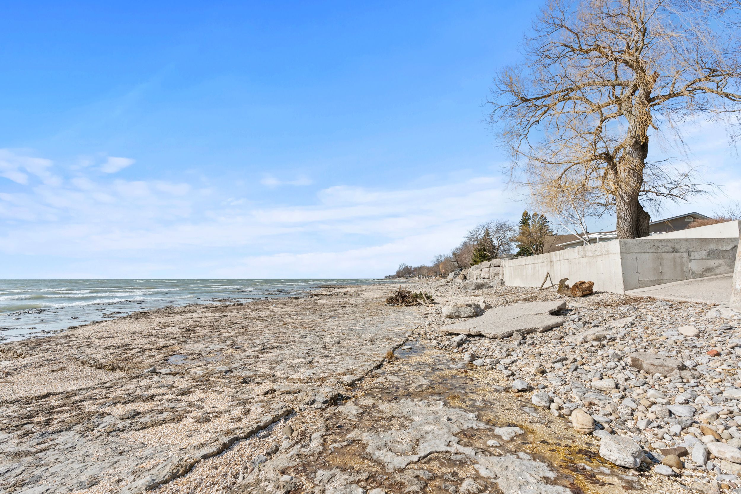 Have you ever dreamed of owning a waterfront property but felt it was out of reach? This is now your opportunity. Set on a quiet street surrounded by a mix of year-round homes and cottages, this unique property offers not one but two cottages on a single lot, creating incredible flexibility for personal use or hosting family and friends. The main cottage features an open concept kitchen and living area highlighted by timber beams and a beautiful stone fireplace with wood mantle. A large rear sunroom spans the back of the home, offering direct views of the water and additional space currently used as a dining area and secondary living room. This cottage is complete with two bedrooms, a three-piece bathroom and an updated electrical panel. The secondary cottage provides excellent overflow space with two additional bedrooms, an open living area with kitchenette, a one-piece bathroom and a loft above, ideal for storage or future potential. The outdoor space is what truly sets this property apart. Enjoy a wide lot overlooking lake erie, mature trees and a brand new breakwall, a major improvement and expense already completed for you. A rare added bonus is the grandfathered boat launch located directly on the property. It's not often you find a waterfront property like this at an entry-level price point. Start making memories here that will last a lifetime.