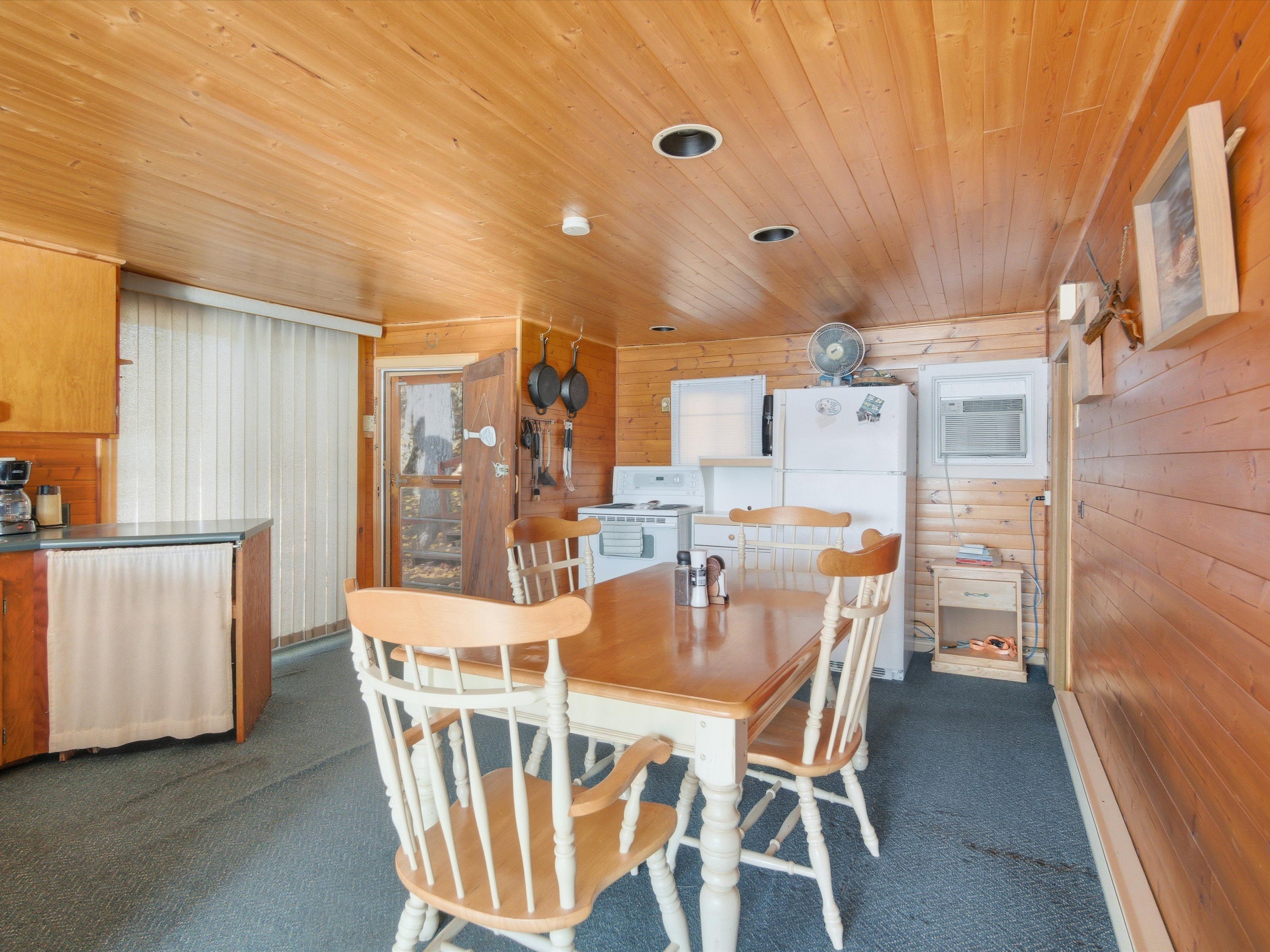 Escape to the tranquility of waterfront living with this charming rustic cottage on limestone lake. Set on over an acre of private, tree-lined land, this property offers not only a peaceful retreat but also exciting potential for future development. Conveniently located just off highway 124, the cottage is nestled among mature trees, providing privacy and a true sense of nature. The cozy interior features 2 bedrooms and an open-concept living area, creating a warm and inviting atmosphere ideal for weekend getaways or extended stays. Enjoy stunning lake views and endless recreational opportunities right at your doorstep. A newly installed dock (20232024) offers the perfect spot to relax in the sun, swim in the clear waters, or simply watch the activity on the lake. A boat and water toys which are included gives you the opportunity to just bring your clothes and excitement to have a wonderful time on the lake. Whether you're looking for a quiet escape or a place to build your future dream retreat, this waterfront property offers a rare combination of charm, privacy, and potential.