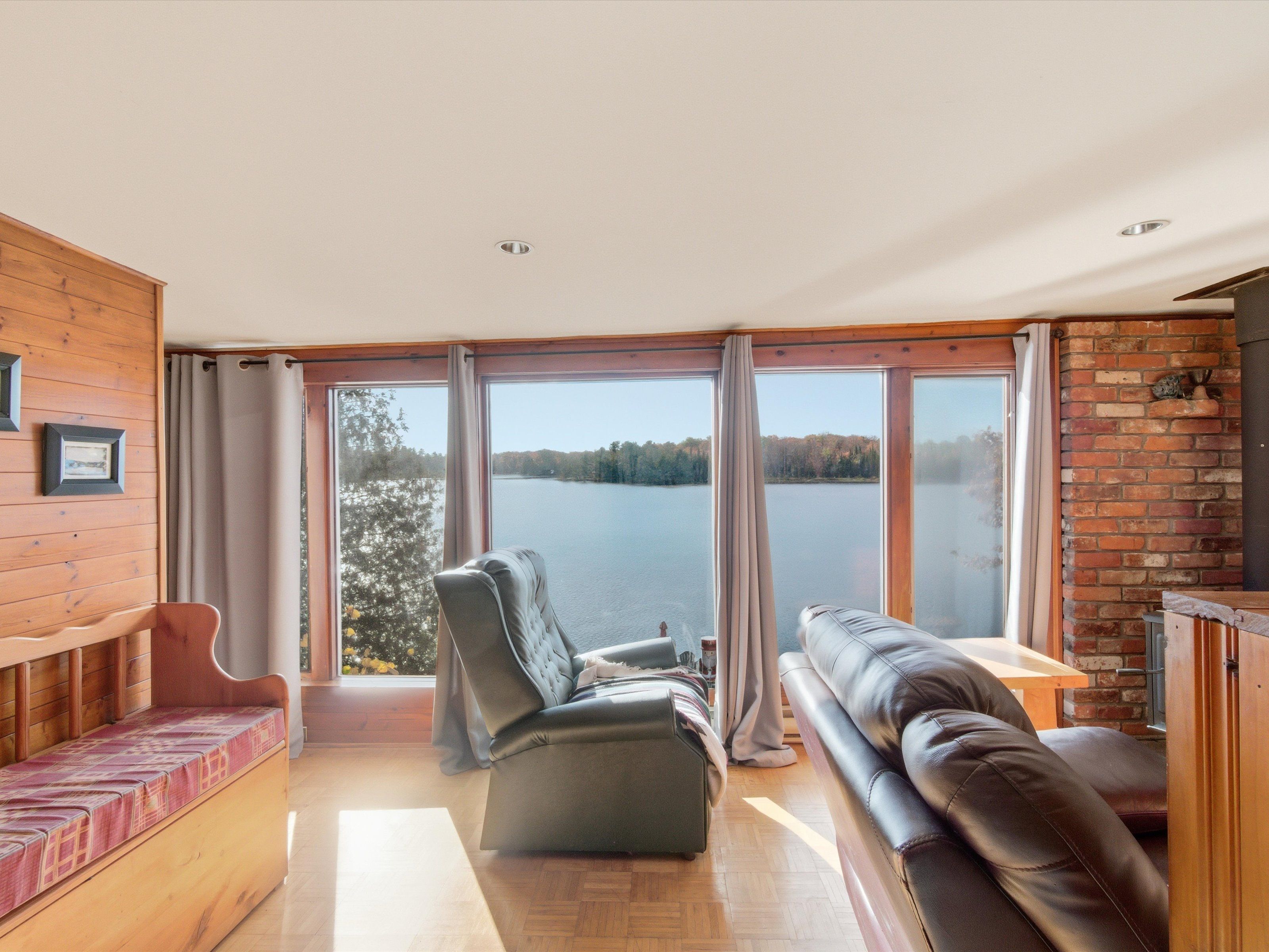Subtype DetachedIndoor Features Primary Bedroom - Main FloorOutdoor Features Deck, Year Round LivingAmenities Lake Access, Lake/Pond, Waterfront, Wooded/TreedOwnership FreeholdViews Lake, Panoramic, WaterWaterfront DirectBasement Exposed Rock, UnfinishedFoundation StoneHeating / Cooling OtherHeating Fuel WoodSewer Septic