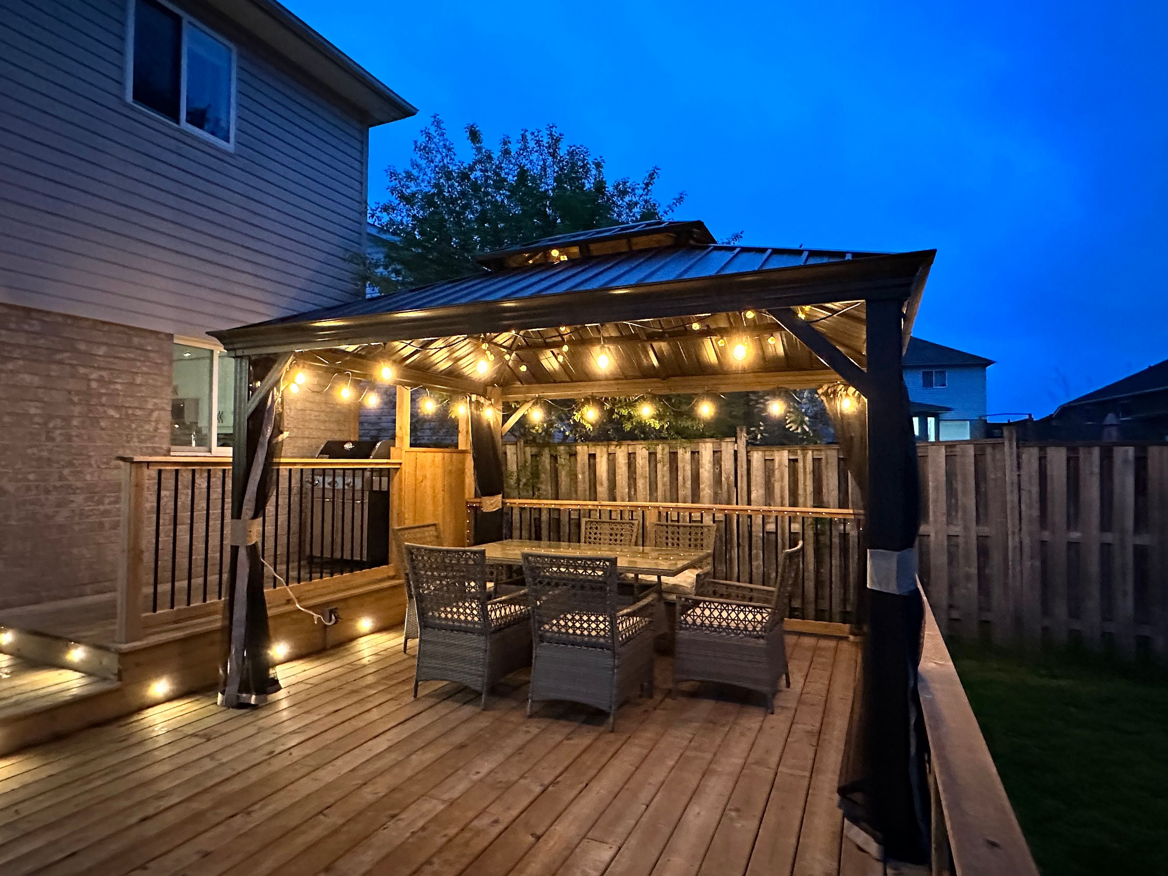 • Private backyard with gazebo, perfect for relaxation and entertaining.