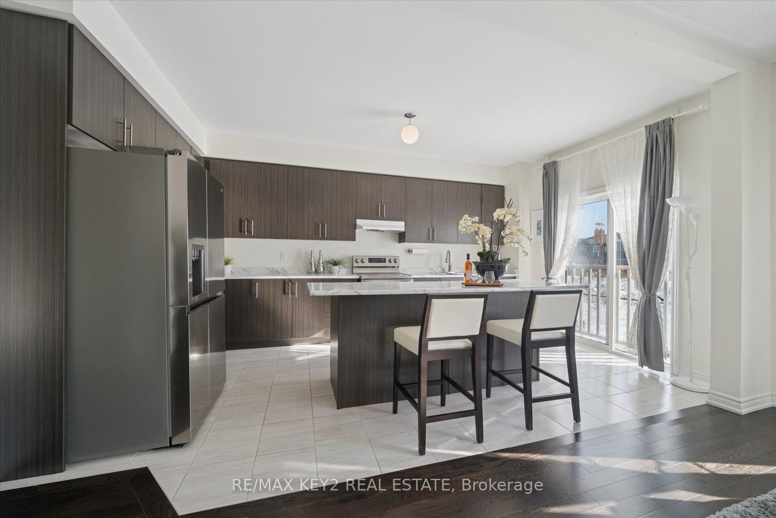 Welcome to this 2. 5 year new detached home by lebovic homes, ideally situated on a premium lot in pickering's sought-after new seaton community. Designed with both style and function in mind, this bright, sun-filled residence offers an exceptional layout with hardwood flooring, generous principal rooms, and an abundance of natural light throughout. The main level features an inviting open-concept design, complemented by a separate formal dining room, a spacious living area, and a grand eat-in kitchen perfect for everyday living and entertaining. The upper level offers three generously sized bedrooms and two full bathrooms, including a serene primary retreat overlooking surrounding greenspace. The primary bedroom features a 4-piece ensuite, a large walk-in closet, and expansive windows that flood the space with natural light. Ideally located minutes to highways 401 and 407, this home is surrounded by trails, parks, golf courses, places of worship, and an upcoming community centre, with shopping just 5 minutes away. Families will appreciate proximity to the brand-new josiah henson public school, along with future commercial plazas that continue to elevate this growing neighbourhood. A perfect blend of modern living, convenience, and natural surroundings-this is one you won't want to miss.