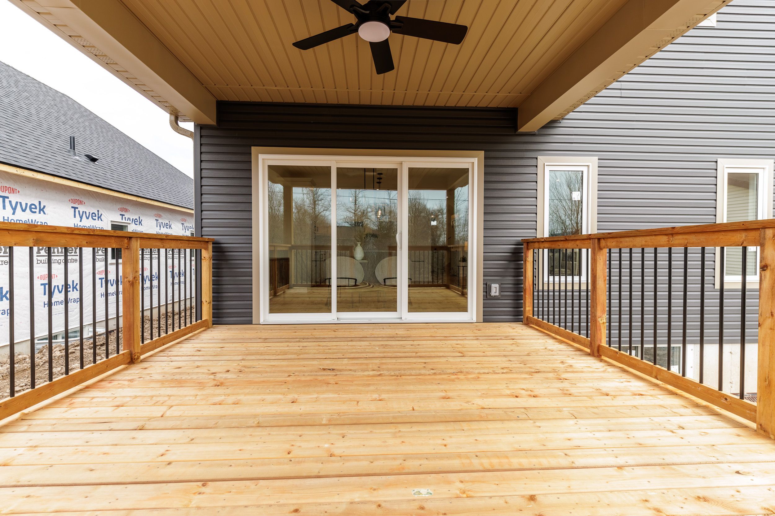 Oak homes proudly presents a rare opportunity to own a beautifully crafted home in one of fort erie's most peaceful neighbourhoods, offering the added privacy of no rear neighbours. Ideally located just minutes from parks, shopping, schools, and everyday amenities, this stunning corriveau-designed residence invites you to experience refined living at its finest. Boasting approximately 1,700 sq. Ft., this elegant two-storey home features 3 spacious bedrooms and 3 impeccably designed bathrooms, showcasing a seamless blend of luxury and functionality. From the moment you enter, you'll be impressed by the exceptional standard upgrades that define oak homes' quality craftsmanship. The main level features soaring 9-foot ceilings, oversized trim, rich engineered hardwood flooring, and an abundance of natural light. The gourmet kitchen is highlighted by sleek stone countertops, while the inviting living space is anchored by an exquisite fireplace and enhanced with inset pot lighting throughout. Step outside to your expansive covered patio-an entertainer's dream-complete with a stylish outdoor ceiling fan and built-in pot lights, perfect for relaxing or hosting in any season. Adding to the home's versatility, a separate private entrance to the basement has been roughed-in, presenting an excellent opportunity for a future in-law suite or additional living space. This exceptional property truly combines luxury, comfort, and potential... An offering you won't want to miss. First picture has been virtually enhanced. Yard will to be fully landscaped. Comes with full tarion warranty. This home qualifies for the proposed gst/hst new housing rebate. Property taxes yet to be assessed.