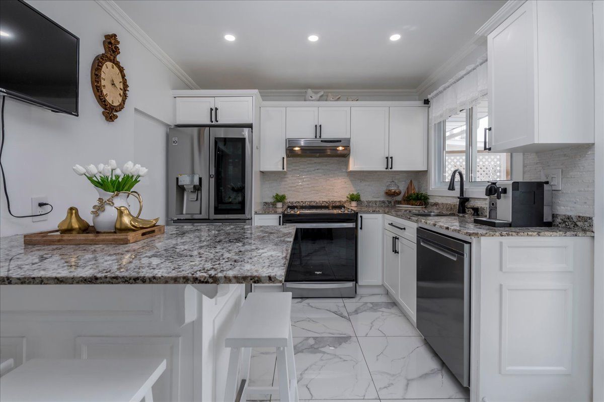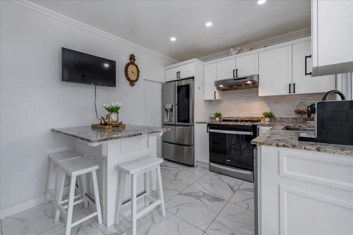 • Spacious kitchen featuring granite countertops and stainless steel appliances.