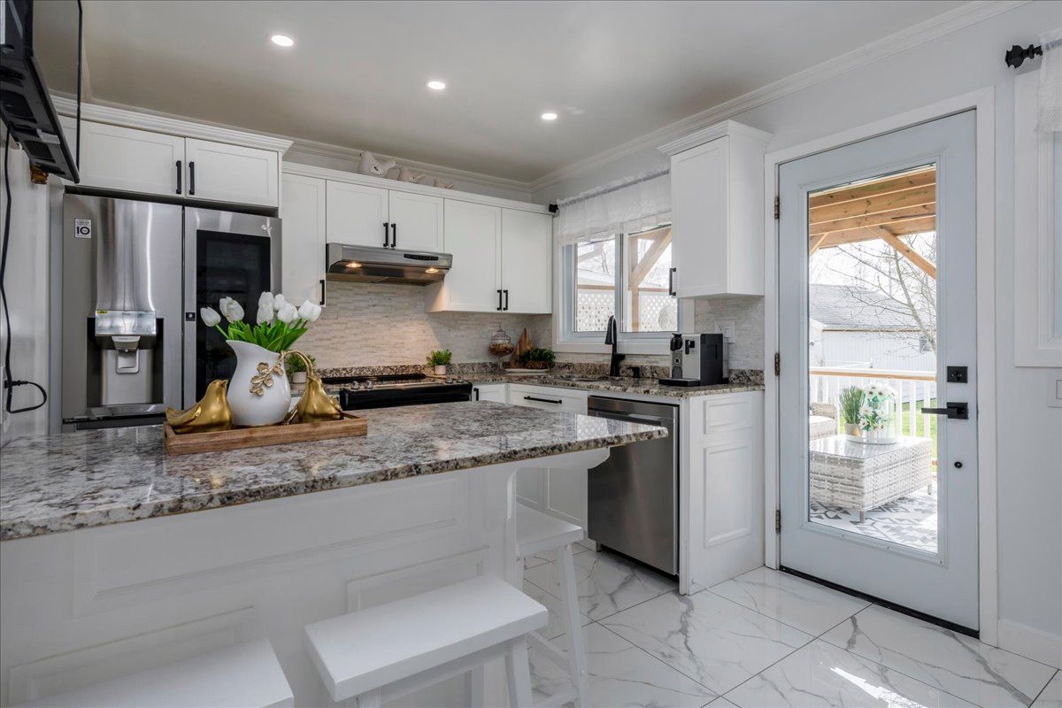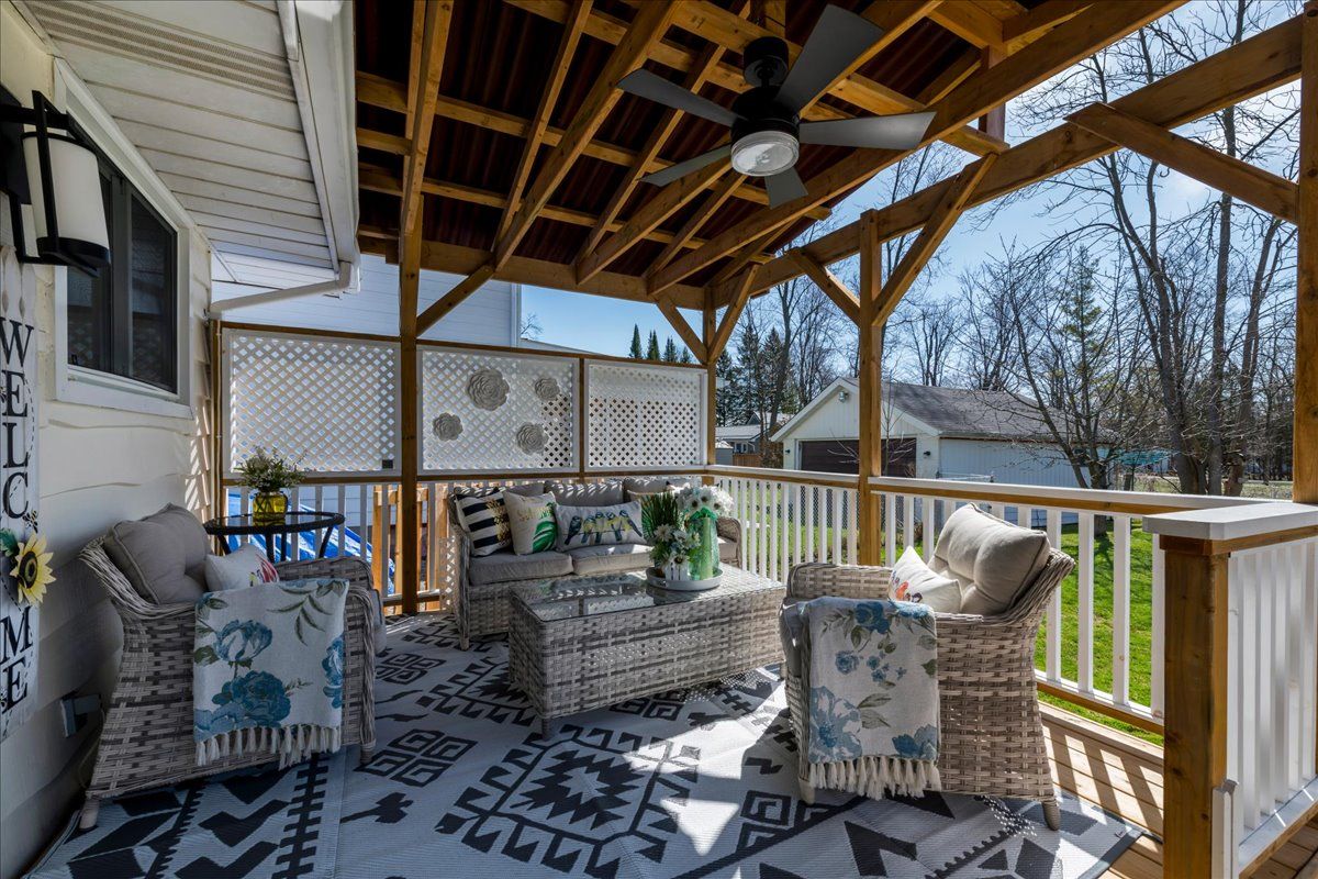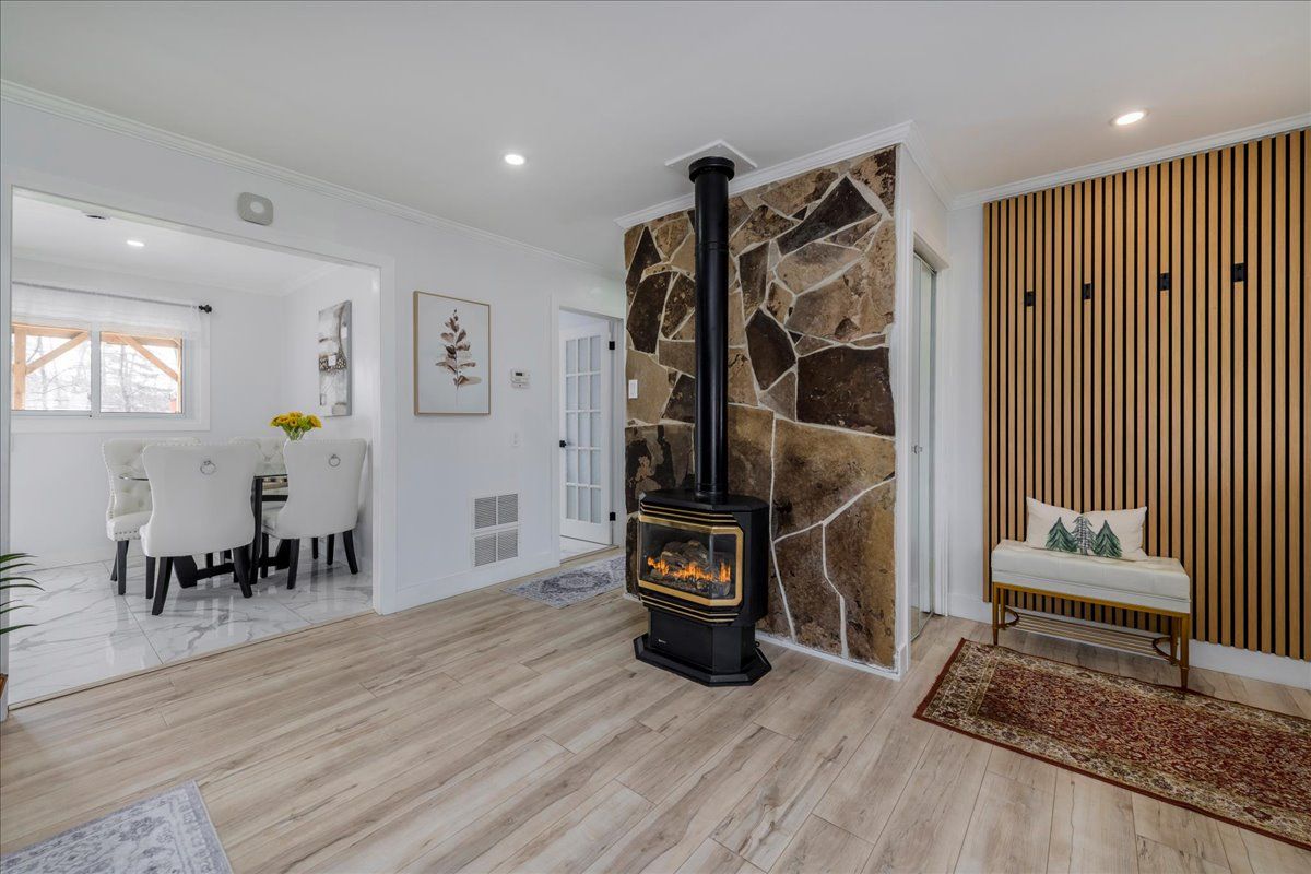 Location, location, location! Just steps from lake simcoe in the welcoming waterfront community of gilford, this bright and beautifully updated bungalow offers charm, comfort, and opportunity. Set on a lovely lot backing onto green space, it's perfect for those looking to move in and enjoy or explore future building potential. Inside, the open-concept layout is filled with natural light streaming through oversized windows, highlighting the home's modern finishes. New roof in 2017. The spacious kitchen features newer cabinetry, granite countertops, stainless steel appliances, and porcelain flooring-ideal for both everyday living and entertaining. It flows seamlessly into the dining area, where a walkout leads to a solid, covered 16 x 11 ft deck. Step outside to a generous, fully fenced backyard complete with fruit trees, a vegetable garden, and a custom-built stone oven/bbq (built with permit)-a perfect space for relaxing or hosting family and friends. The home offers two comfortable bedrooms and a stylish, spa-inspired bathroom. Heating is efficient and cozy with a freestanding gas stove and separately zoned, thermostatically controlled electric wall heaters. Don't be fooled by appearances-this home is more spacious than it looks. Gilford is a wonderful place to call home, appealing to both young families and retirees, with easy access to the lake, marina with private docking, shopping, golf, restaurants, schools, and year-round activities like ice fishing. Move in and start enjoying everything this special property and community has to offer.