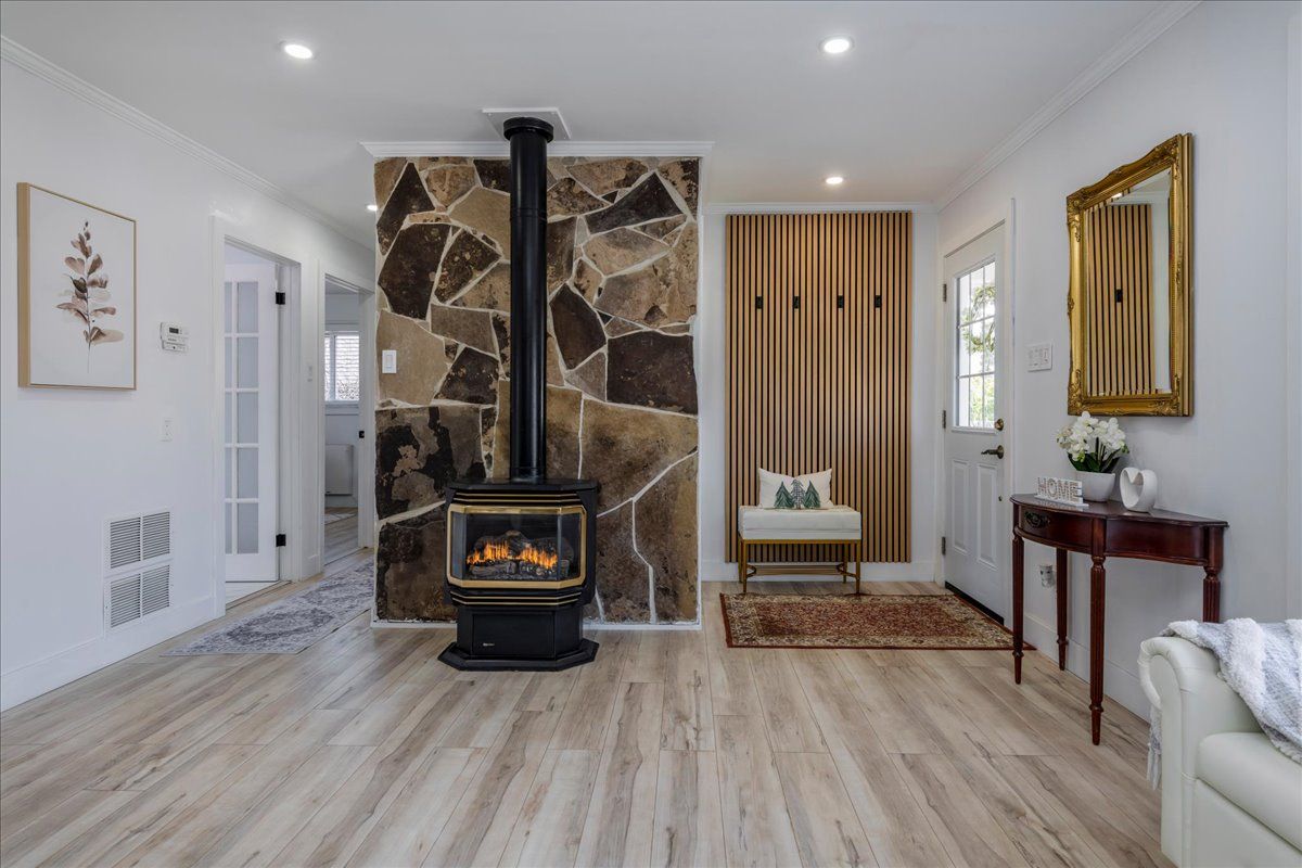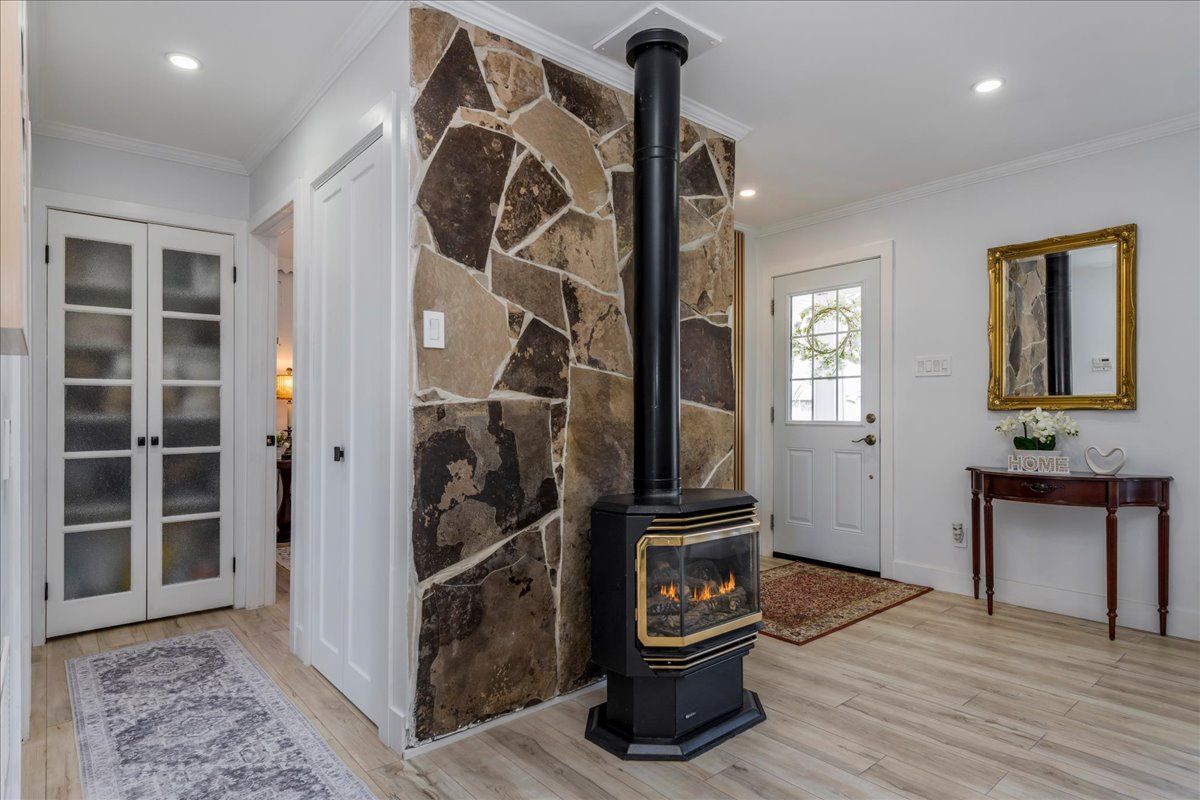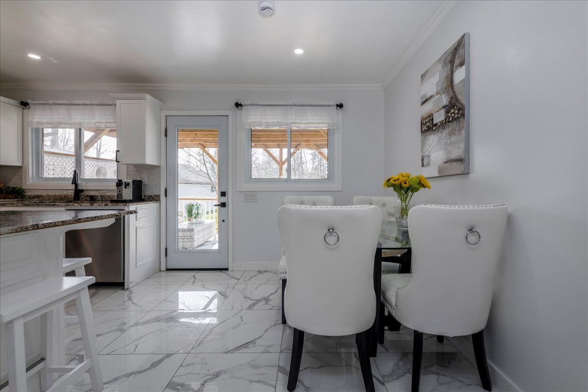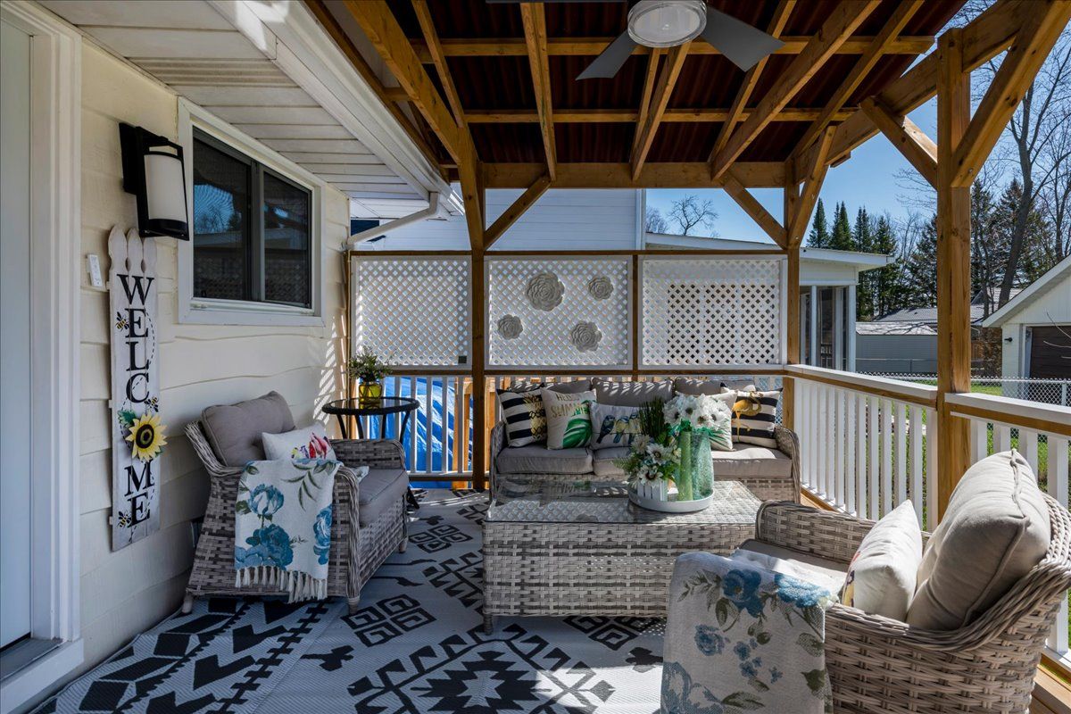 Location, location, location! Just steps from lake simcoe in the welcoming waterfront community of gilford, this bright and beautifully updated bungalow offers charm, comfort, and opportunity. Set on a lovely lot backing onto green space, it's perfect for those looking to move in and enjoy or explore future building potential. Inside, the open-concept layout is filled with natural light streaming through oversized windows, highlighting the home's modern finishes. New roof in 2017. The spacious kitchen features newer cabinetry, granite countertops, stainless steel appliances, and porcelain flooring-ideal for both everyday living and entertaining. It flows seamlessly into the dining area, where a walkout leads to a solid, covered 16 x 11 ft deck. Step outside to a generous, fully fenced backyard complete with fruit trees, a vegetable garden, and a custom-built stone oven/bbq (built with permit)-a perfect space for relaxing or hosting family and friends. The home offers two comfortable bedrooms and a stylish, spa-inspired bathroom. Heating is efficient and cozy with a freestanding gas stove and separately zoned, thermostatically controlled electric wall heaters. Don't be fooled by appearances-this home is more spacious than it looks. Gilford is a wonderful place to call home, appealing to both young families and retirees, with easy access to the lake, marina with private docking, shopping, golf, restaurants, schools, and year-round activities like ice fishing. Move in and start enjoying everything this special property and community has to offer.