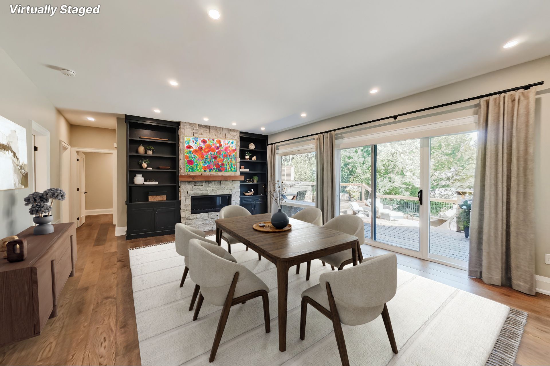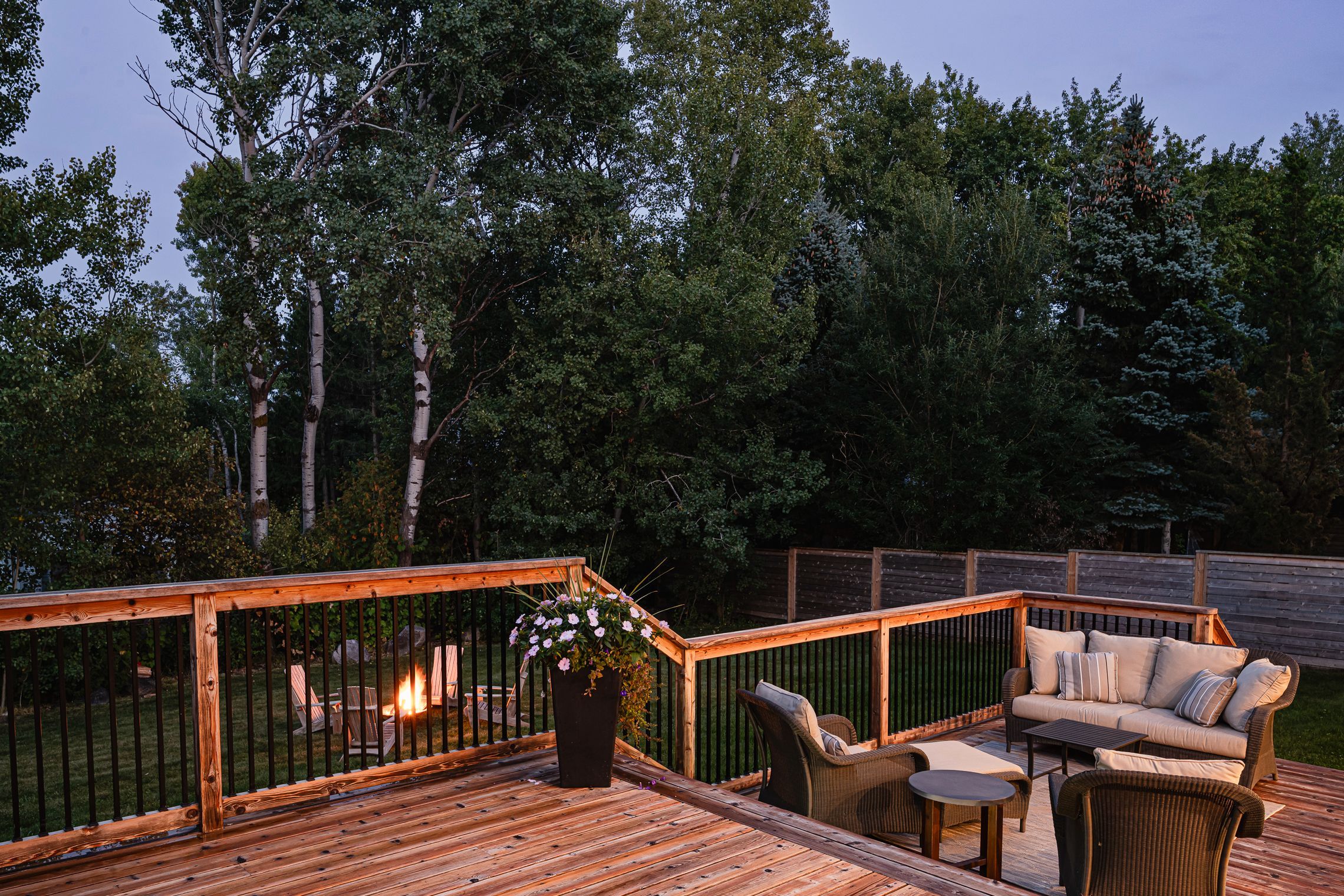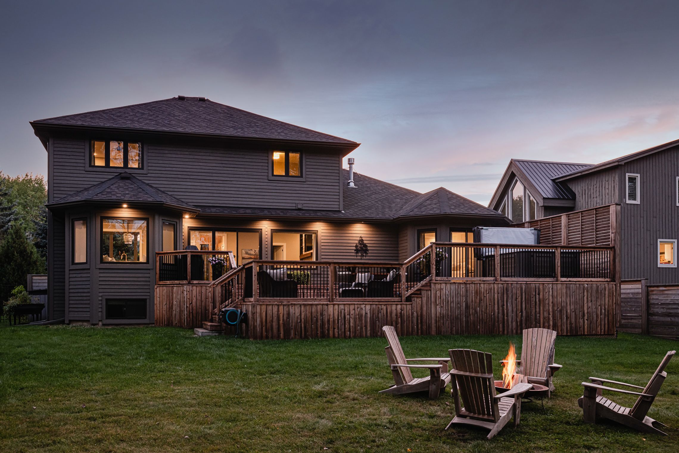 • Beautifully landscaped outdoor space with a large two-level cedar deck and hot tub.
