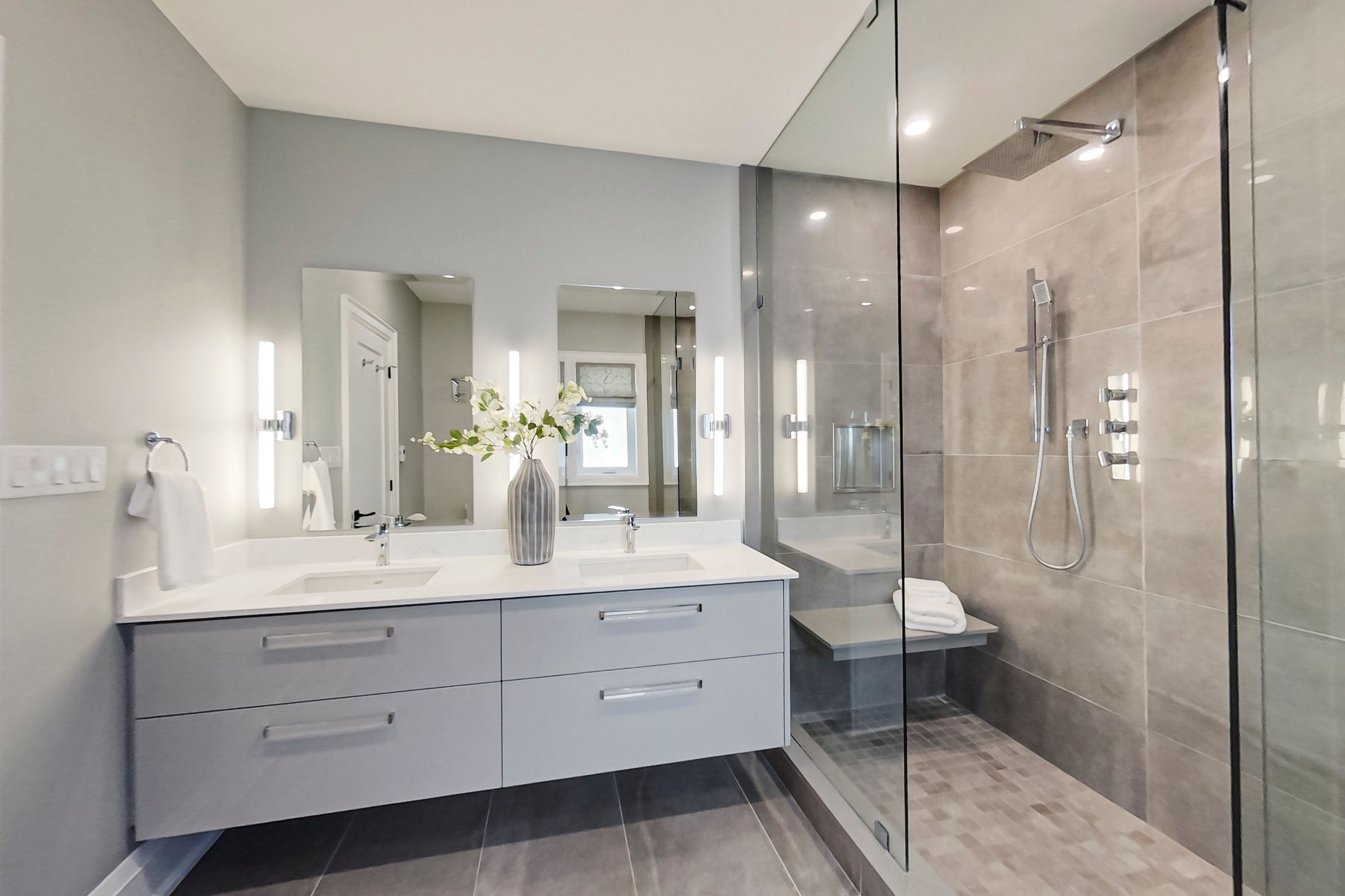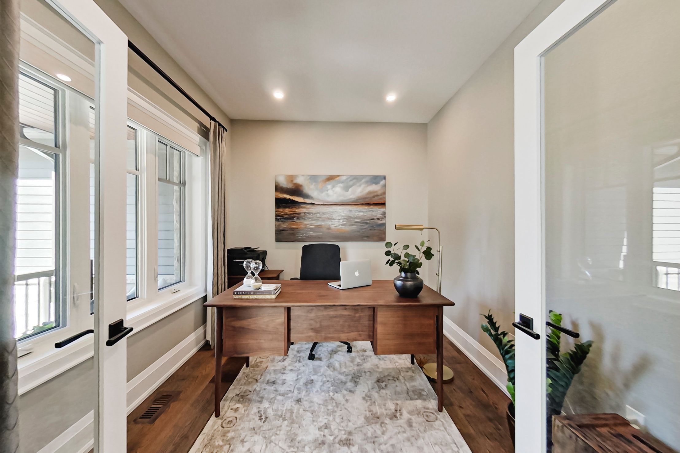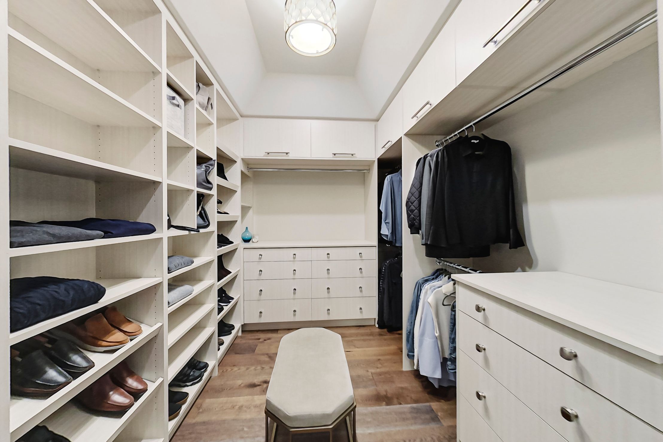 • Main floor primary suite featuring a large walk-in closet and custom cabinetry.