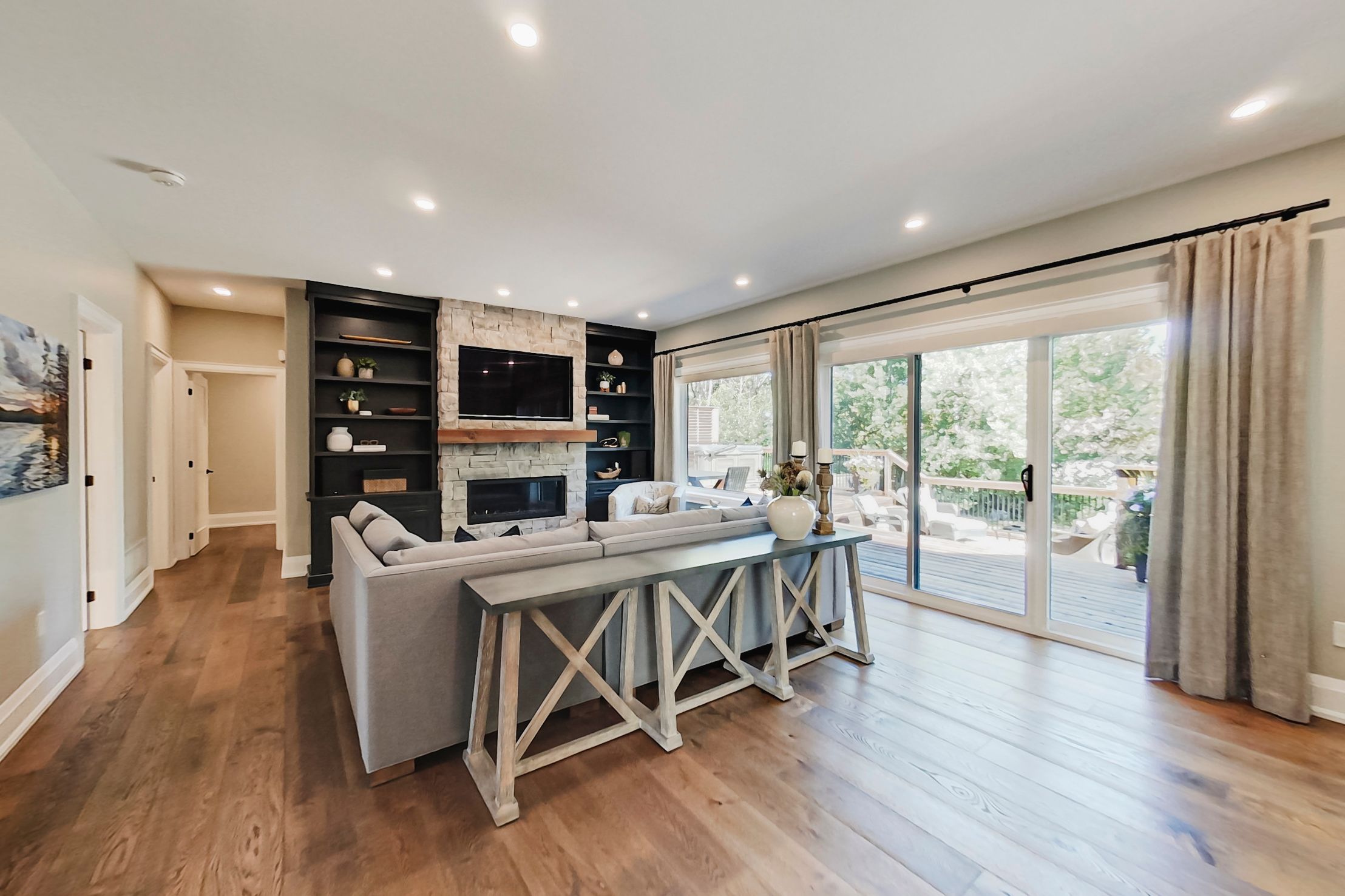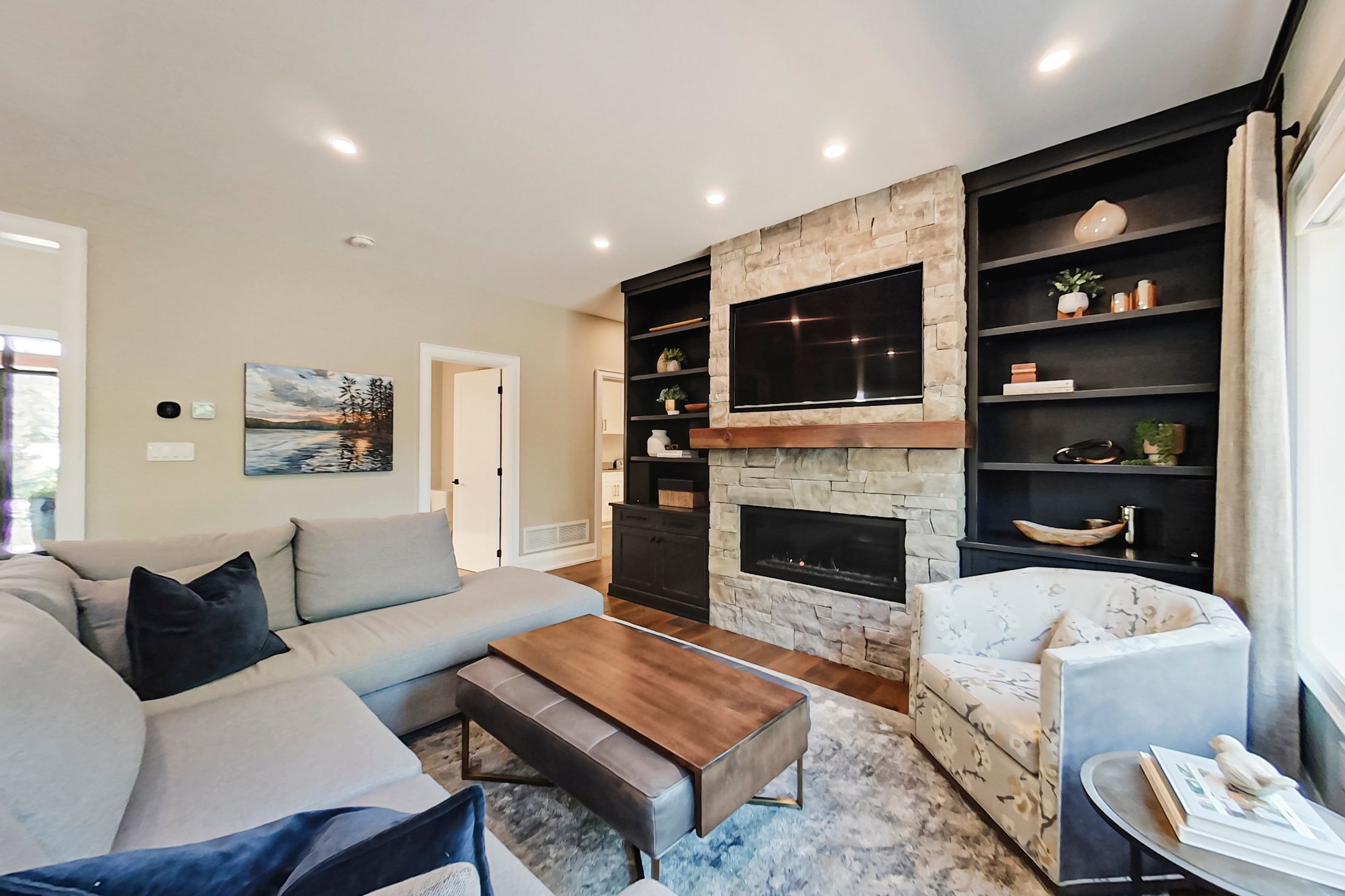 • Lower level includes rec-room, bonus flex room, and gas fireplace.