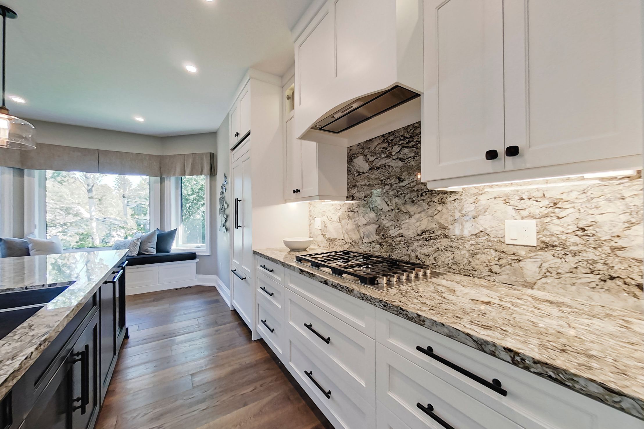 Craigleith - extensively renovated, approx. 4,444 sq. Ft of living space, this 4-bedroom and 3. 5-bathroom home is just steps away from craigleith and alpine ski clubs. This home features an open concept kitchen/living area, and a dining room with an impressive 18-foot cathedral ceiling, hardwood flooring throughout, italian porcelain tiles in the laundry and bathrooms, main floor primary suite with a large walk-in closet and custom cabinetry. The second floor includes 2-bedrooms, a bathroom, and a loft overlooking the dining room. The lower level offers an additional bedroom, bathroom, rec-room, and a bonus flex room with a gas fireplace. The property is beautifully landscaped with river rocks and low-maintenance gardens, and features a large two-level cedar deck with a saltwater hot tub. Close to skiing, golf, cycling, georgian bay,georgian trail and all the areas amenities.