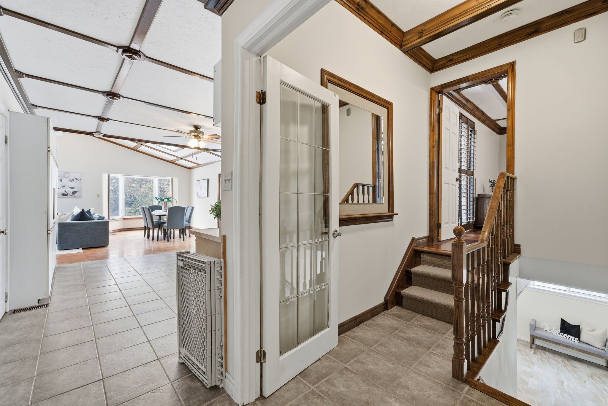 This 4+1 bedroom , 4 level side split home at the north shore of lake scugog with a commanding view and steps to access to the lake - perfect for year round fun and enjoyment including boating, fishing, snowmobiling, skating and skiing. Conveniently located between lindsay and port perry. This home can easily accommodate the family plus have room for an in-law suite or guest quarters if desired. Spacious recreation room at entry level with wood burning fireplace , kitchen area, & large bright windows overlooking property; generous primary suite on upper level complete with vaulted ceiling and walkout to deck overlooking lake scugog; 4 additional bedrooms all with hard surface flooring; main kitchen / living area has walkout to updated wood deck overlooking lake and a charming wood stove; large detached oversized 2 car garage with loft / storage- ideal for your storage needs; driveway parking for 8 cars ; nicely landscaped property; excellent potential throughout to make this one your very own. New septic system in 2024, municipal water, fa propane and central air +/-2018, vinyl thermal windows, metal roof; updated skylights; 200 amp breaker electrical