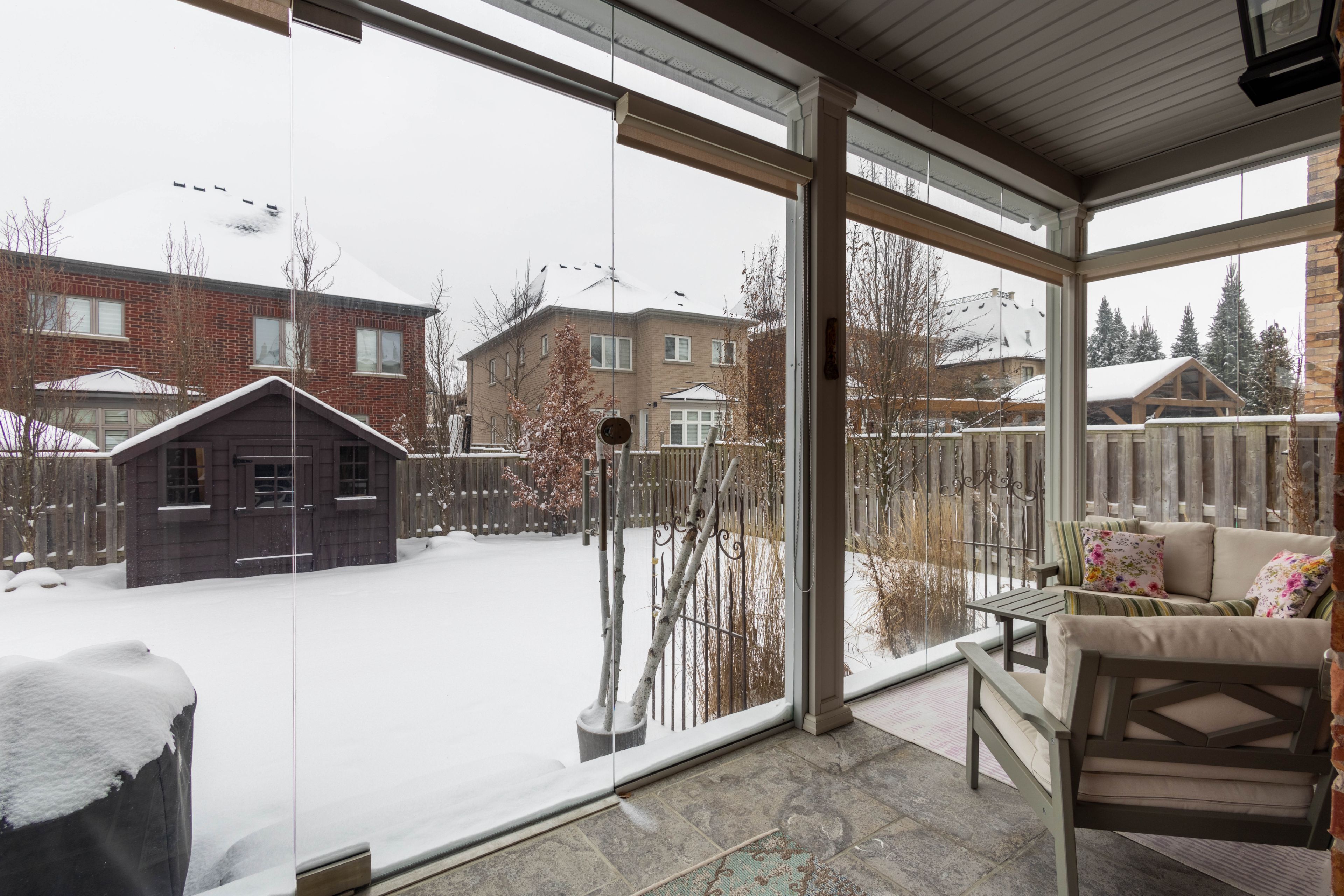 • Private backyard with a landscaped space and glass-enclosed solarium.