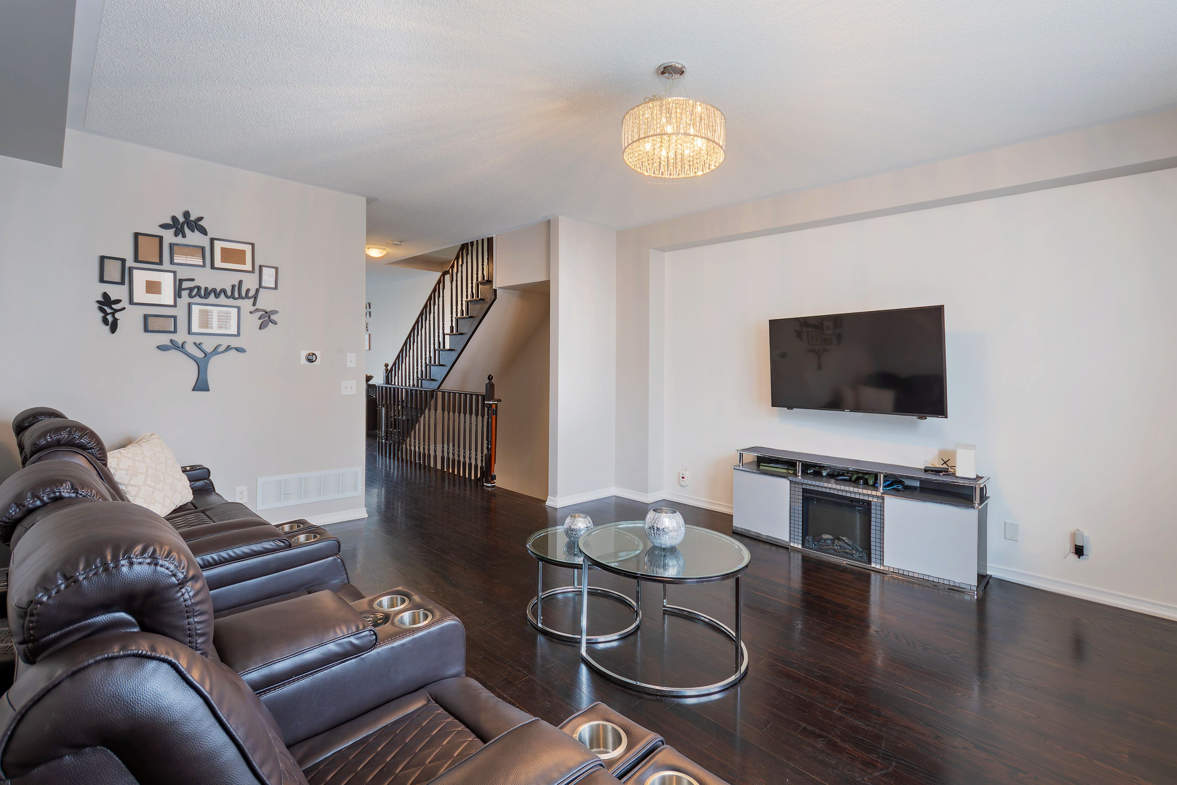 Welcome to this beautifully renovated townhome ideally located on the brampton/mississauga border, offering style, comfort, and exceptional functionality for modern living. From the moment you step inside, you'll notice the pride of ownership and thoughtful upgrades throughout. The home features hardwood floors, hardwood stairs, 9-foot ceilings on the second floor, pot lights and large windows that create a bright and inviting atmosphere. The chef-inspired eat-in kitchen is perfect for both everyday living and entertaining, complete with granite countertops, high-end stainless steel appliances, and a convenient breakfast bar. Whether preparing family meals or hosting guests, this space combines practicality with sophisticated design. The fact that this is open to the dining area is extremely convenient. It is easy to picture your next extended family dinner in this space. The main living areas flow beautifully. Upstairs and throughout the home you'll find custom california closet organizers, maximizing storage and organization. The home theatre room with walkout to the private rear patio offers the perfect place to unwind or entertain. This ground floor features a lower-level walkout, step outside to enjoy a fully fenced backyard, providing privacy and an ideal space for relaxation or summer gatherings. The ground floor also includes a bathroom rough-in currently used as storage, making it easy to add a fourth bathroom if desired. Once completed, this level could be especially appealing for multi-generational living or someone with mobility considerations, thanks to its convenient layout. Additional features include levelor blinds, garage parking plus driveway space, and everything you need for this home to be move-in ready. Situated in a family-friendly neighbourhood close to meadowvale conservation area, excellent schools, transit, and quick access to hwy 407, this home offers the perfect balance of nature, convenience, and community.