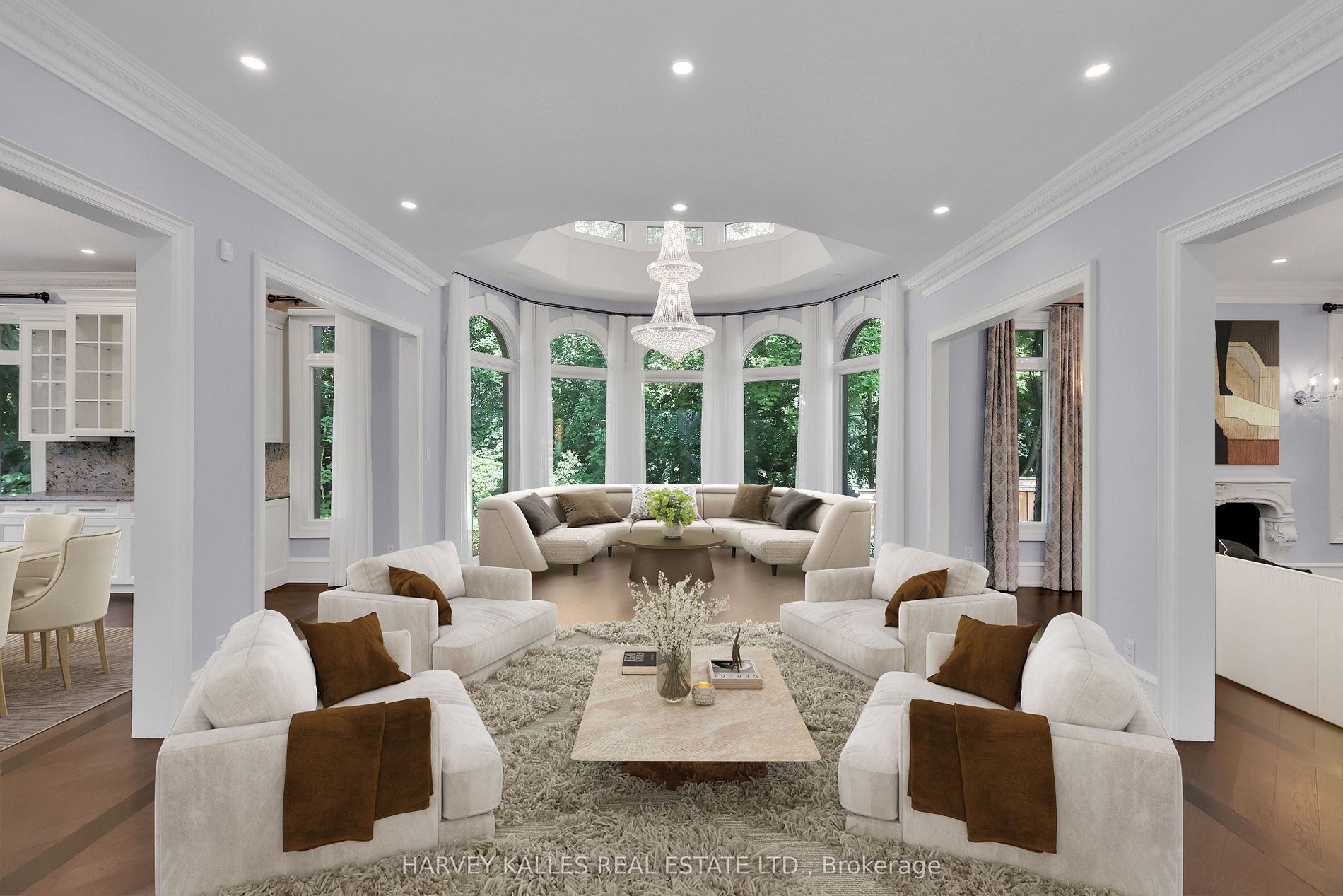 A unique offering in the heart of lytton park. Rarely does an opportunity arise to own a residence in this coveted location that also boasts a serene, country-like ravine setting paired with a rare double-sized estate lot offering exceptional frontage and depth. This lovingly cared-for and thoughtfully updated home welcomes you with a grand entrance and soaring foyer, leading into expansive living and dining areas under dramatic ceilings, while an updated eat-in kitchen connects seamlessly to the family room and private office with a separate servery and staircase to the lower level. The second level features a spacious primary suite with a luxurious ensuite and walk-in closet, alongside three additional generously sized bedrooms with ensuites plus an office or nursery. The lower level provides a flush walkout to a beautifully landscaped yard and includes an oversized entertainer's recreation room, gym, home theatre, and a guest suite with spa, along with a dedicated storage room offering excellent flexibility, easily converted into a custom wine cellar or tailored to suit your needs. An oversized integrated garage spanning approximately 810 square feet accommodates two suvs with ease and features epoxy flooring. Outdoors, a professionally landscaped, park-like oasis awaits with an inground pool, playground, outdoor deck with gas bbq, and a gated heated driveway ensuring privacy. Offering over 8,500 square feet of total living space and exceptional storage space throughout, this residence combines scale, function, and a truly unmatched setting, just moments to john ross robertson, lpci, lush parks, shops, restaurants, and more. Truly, this is a home not to be missed.