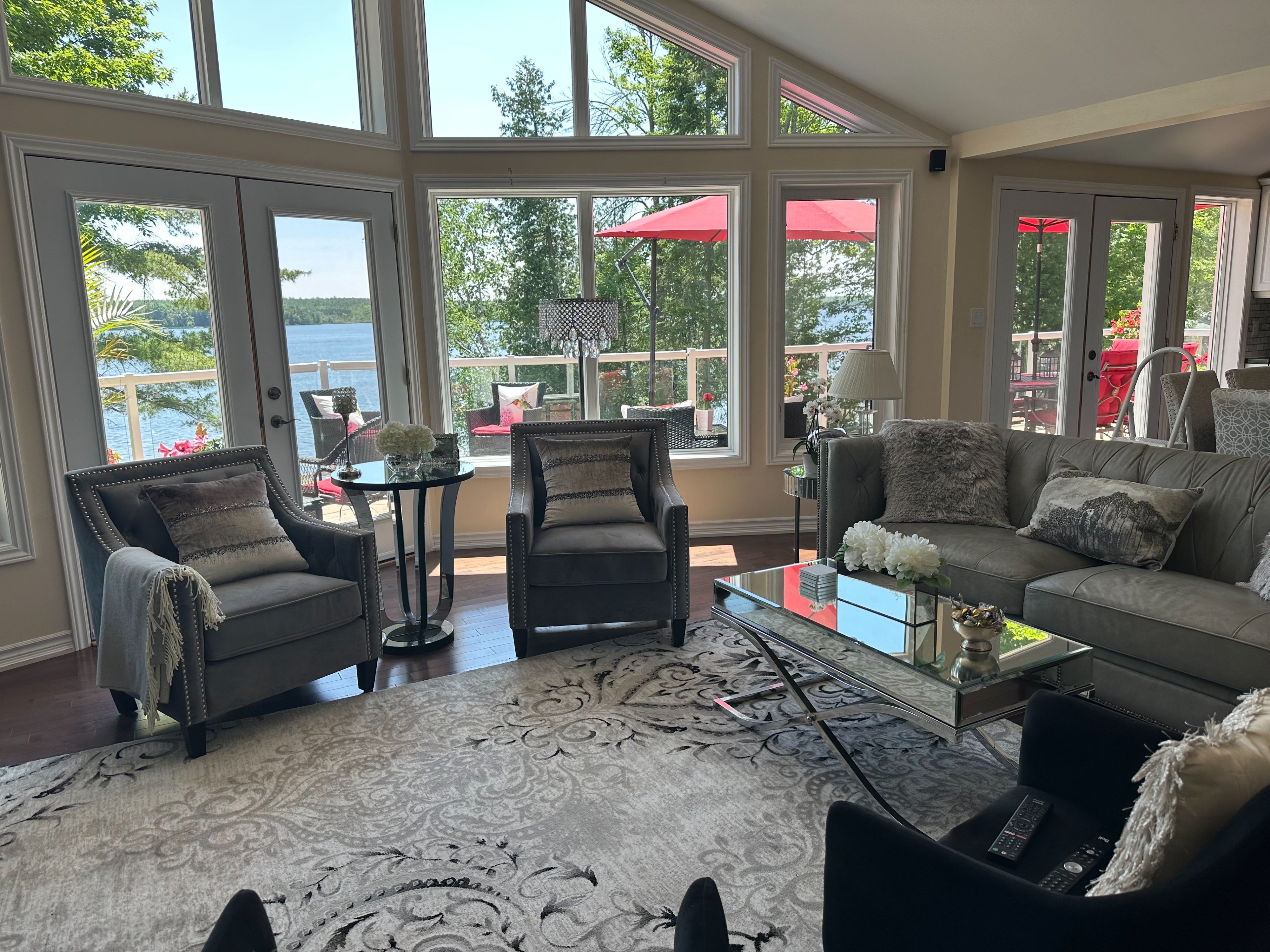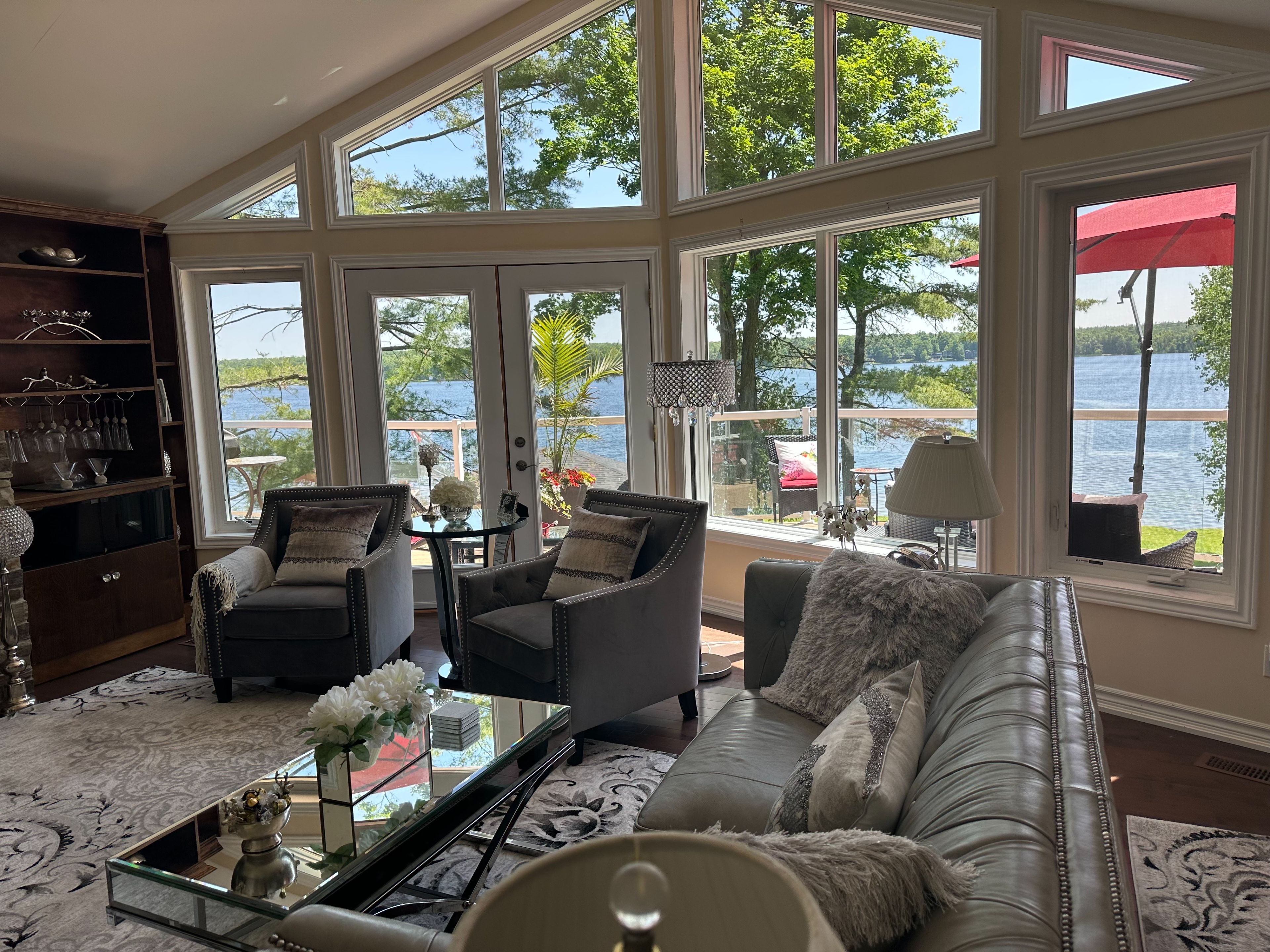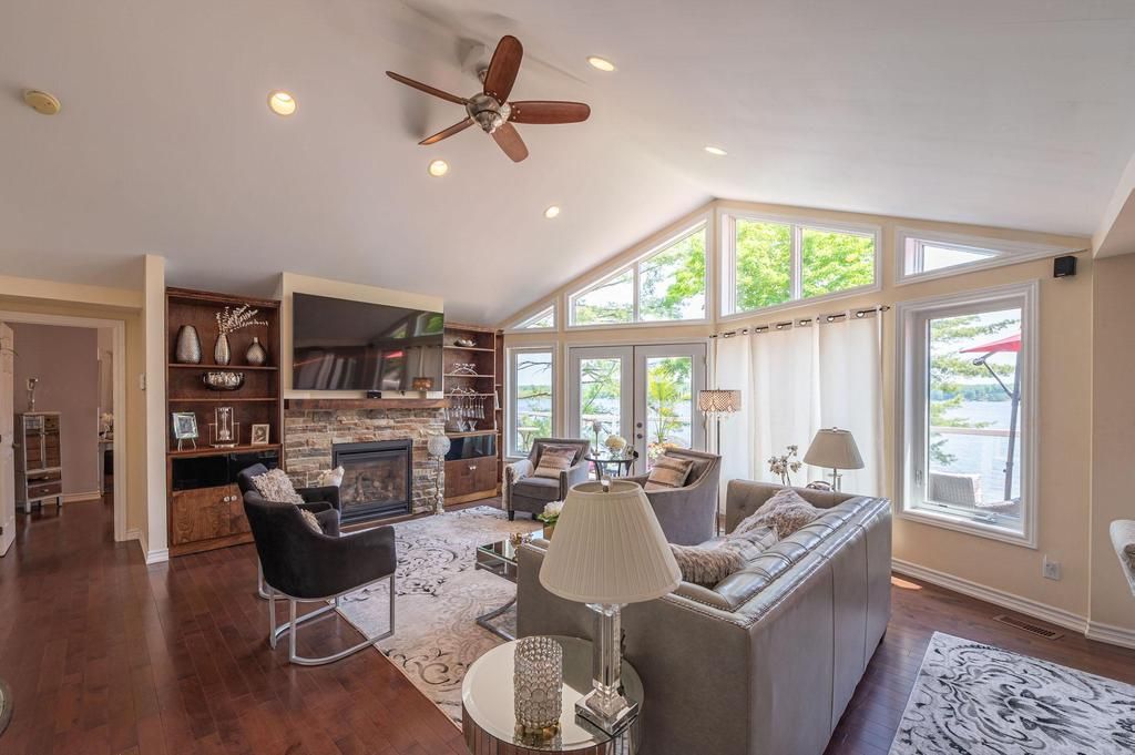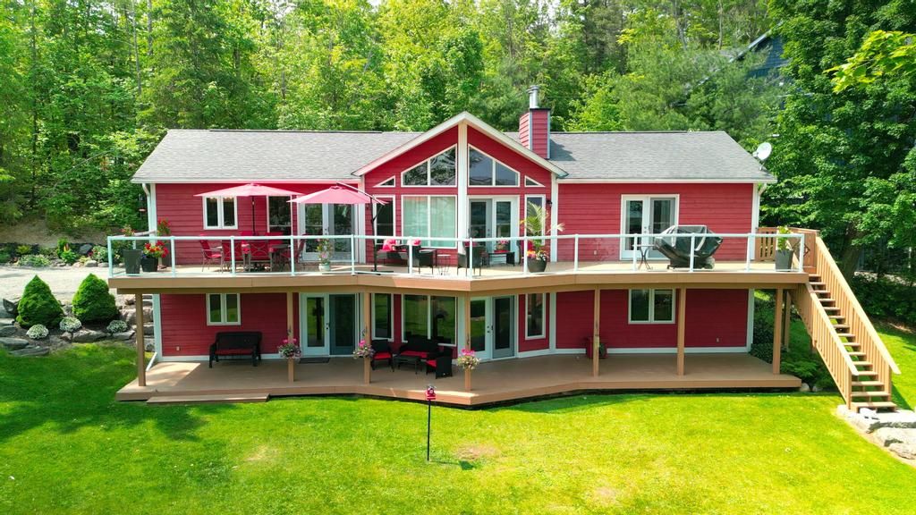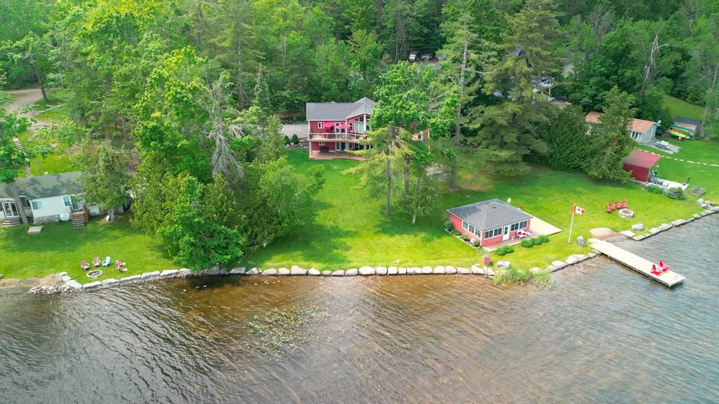 2 homes in 1 and a double lot. Wow is what you will say the minute you drive in to this beautiful buckhorn lake property. You will be amazed at the gently sloping lot, beautiful perennial gardens, and the commanding views of the lake from the 209 feet of frontage. This stunning home is finished to perfection on both floors offering 2 wonderful, self contained, living spaces with a separate entrance perfect for multi generational living or for family and visiting friends. Featuring 5 bedrooms, 4 baths, 2 propane fireplaces, 2 lovely custom kitchens, and magnificent views from both levels of the home, with the lower level also having its own primary suite with a full ensuite bath and walk in closet. The total finished area is 3,250 square feet. The two 60 ft decks expand the length of the home and are perfect for entertaining. Enjoy the rustic lakeside cabin as is or add your personal touches to this little gem. The double sized lot is nicely treed, gently sloping, and private. There is plenty of parking close to the house and alternative parking above with steps to the house. Close to marinas, shopping, and golf at six foot bay is only minutes away. Buckhorn lake is part of a five lake chain of lock free boating. Boat to buckhorn or bobcaygeon for lunch and shopping or enjoy an afternoon of watersports. This one of a kind home and property is situated on a well maintained, year round road minutes from a township road and school bus route.