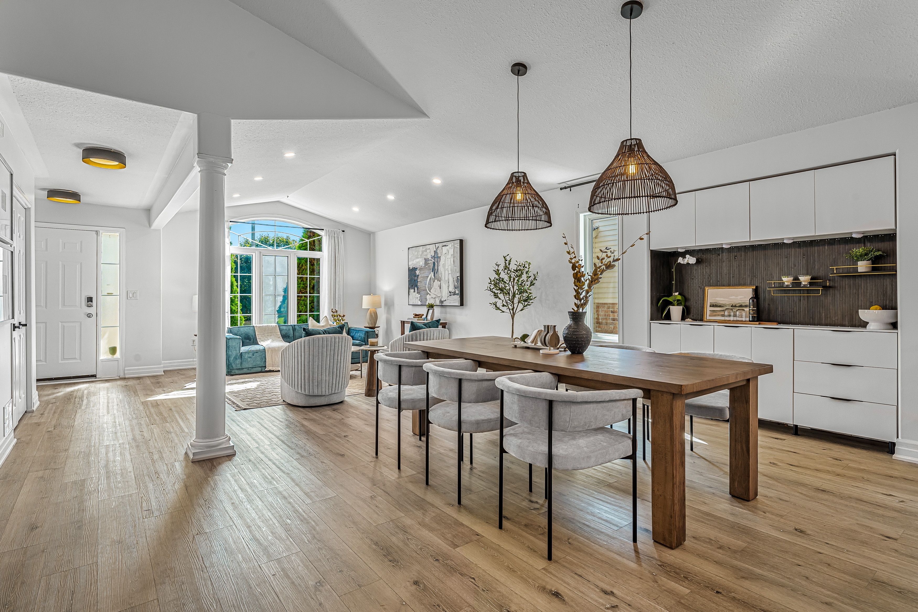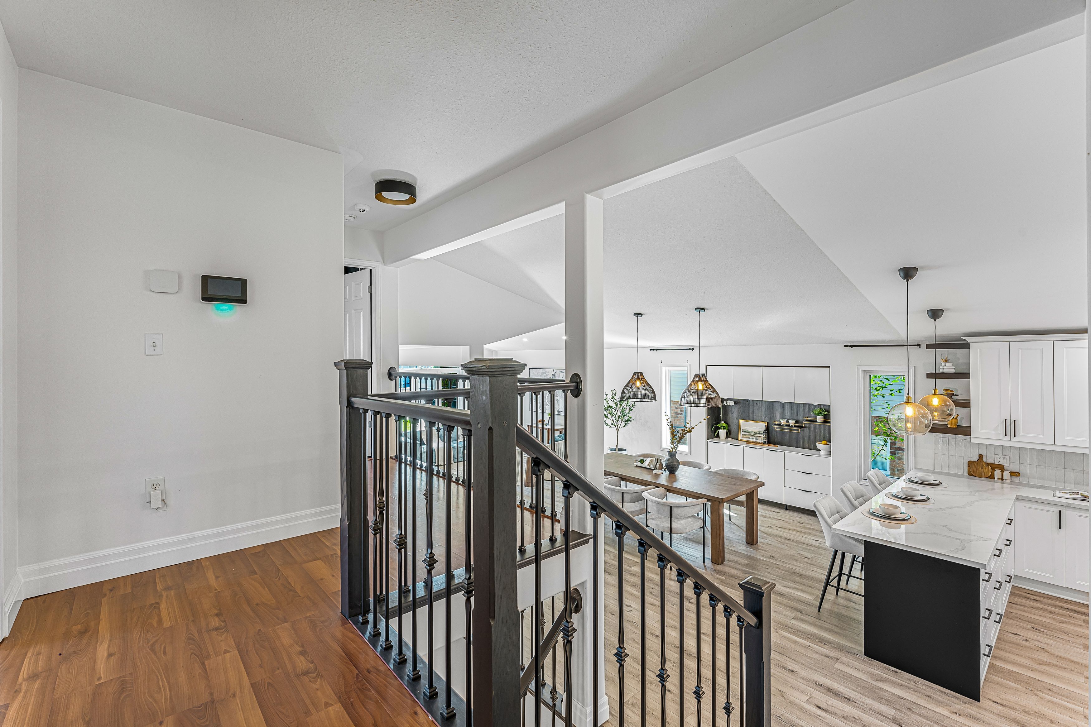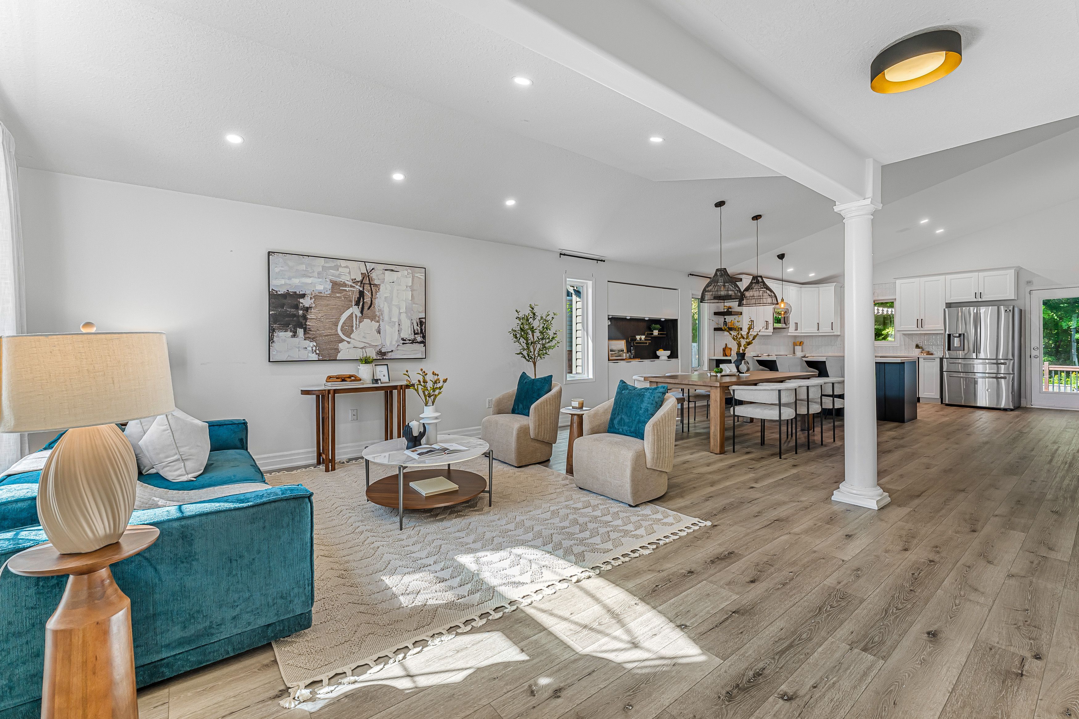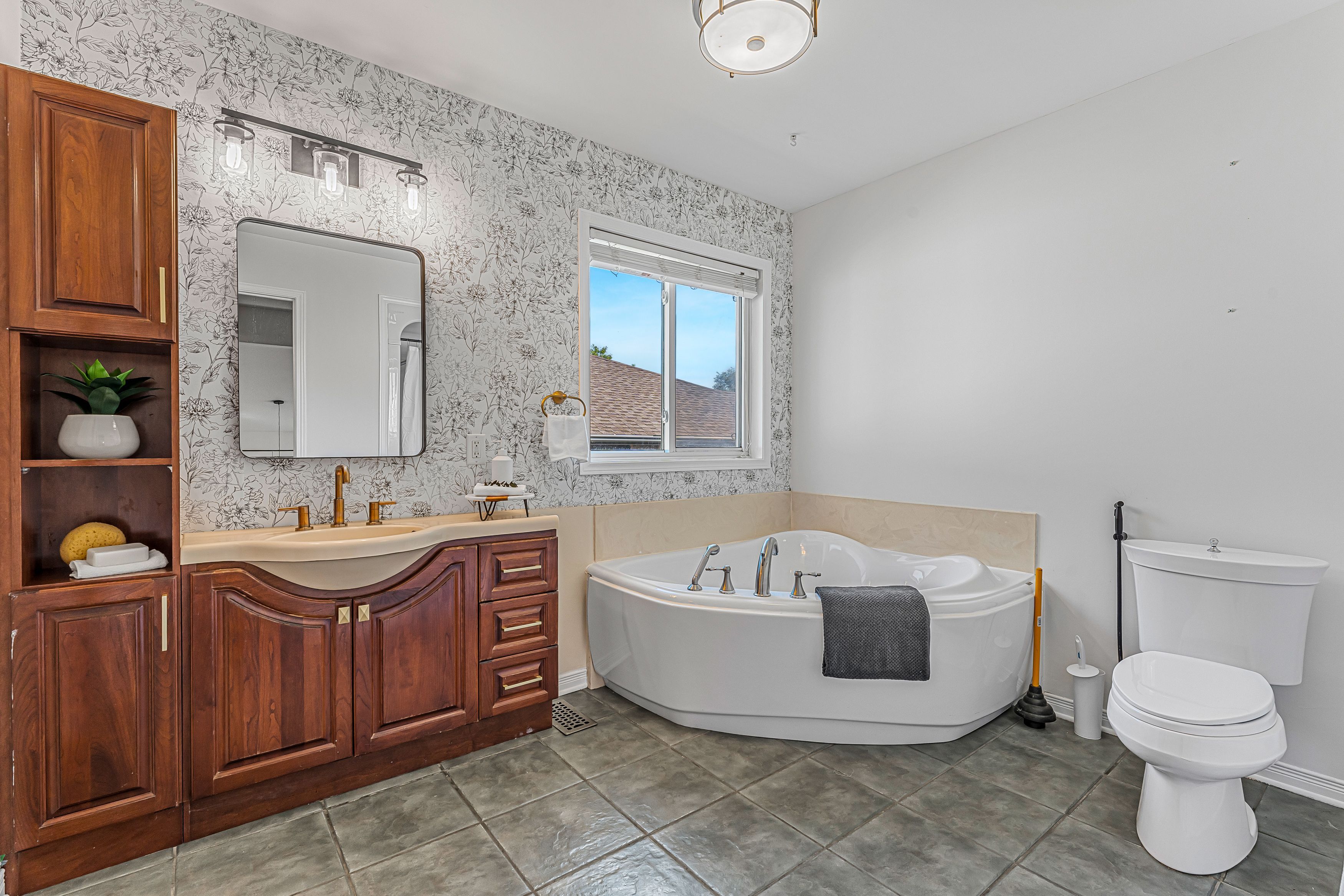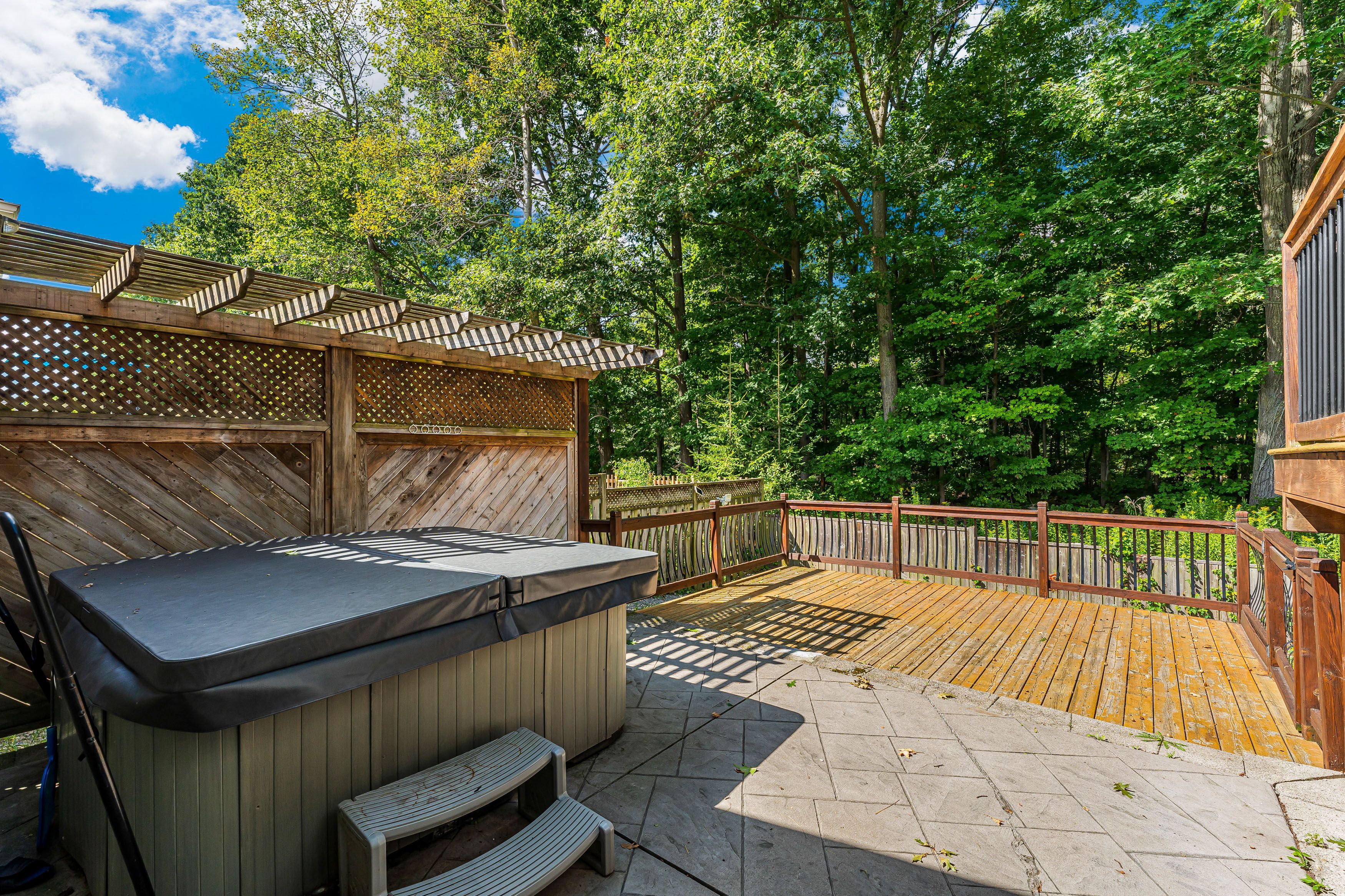 Welcome to this beautifully updated 2+1 bedroom, 2-bath side-split on welland's west side, offering nearly 2,500 sq. Ft. Of finished living space and a unique open side-split design that allows seamless flow throughout the upper, main, and lower levels. Backing onto a peaceful wooded ravine, this home has been extensively updated with a stunning kitchen remodel (2023) featuring quartz counters, new cabinets, backsplash, and a custom coffee bar, along with luxury vinyl plank flooring (2023), fresh paint, pot lights (2021), new stairs and railing (2024), and a new stove (2025). Bright open-concept living and dining areas are warmed by two gas fireplaces, while upstairs the primary bedroom offers a board-and-batten feature wall (2023) and its own private balcony overlooking the ravine. The backyard is ideal for entertaining with a hot tub, patio, and deck, and the finished basement includes a full home theatre, gym space, and cold room. A two-car garage with built-in cabinetry and counters adds extra functionality. Just a short walk to maple park with its olympic-size pool, splash pad, playground, and sports courts and minutes to seaway mall, trails, and other parks, this location makes everyday living easy. Surrounded by great schools from multiple boards and less than 30 minutes from niagara falls, st. Catharines, and port colborne, this home is truly move-in ready and one you'll love to call your own.
