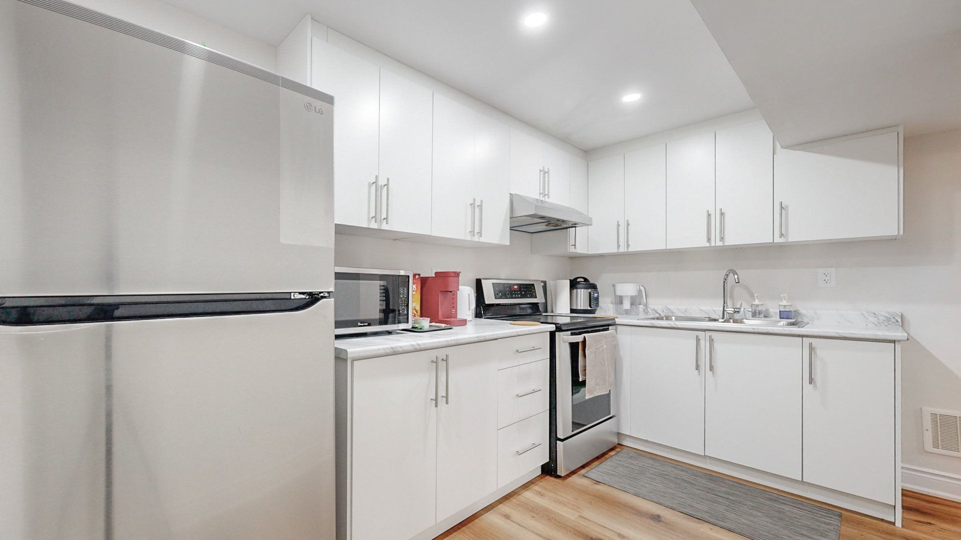 Legal beautiful basement unit. Sun filled corner unit. Steps to mount pleasant go station. This1 bedroom 1 bathroom apartment features separate side porch entrance, large windows, laminate floors & pot lights throughout. There is separate storage, laundry, ss refrigerator, stove & microwave. Great location which is just steps to all the amenities, tim horton, walmart, home depot, and bus stops. Ideal for young professional or a couple working locally or in downtown toronto. Tenant to share 30% of all utilities including hot water tank. Portion of lease is the legal basement apartment unit (#lower unit) tenants are responsible for obtaining tenant insurance of $1m liability. Lower unit's tenant gets 1 parking spot on the driveway of the property. Best opportunity for work from home or going to toronto downtown by go train. Newcomers are welcome!