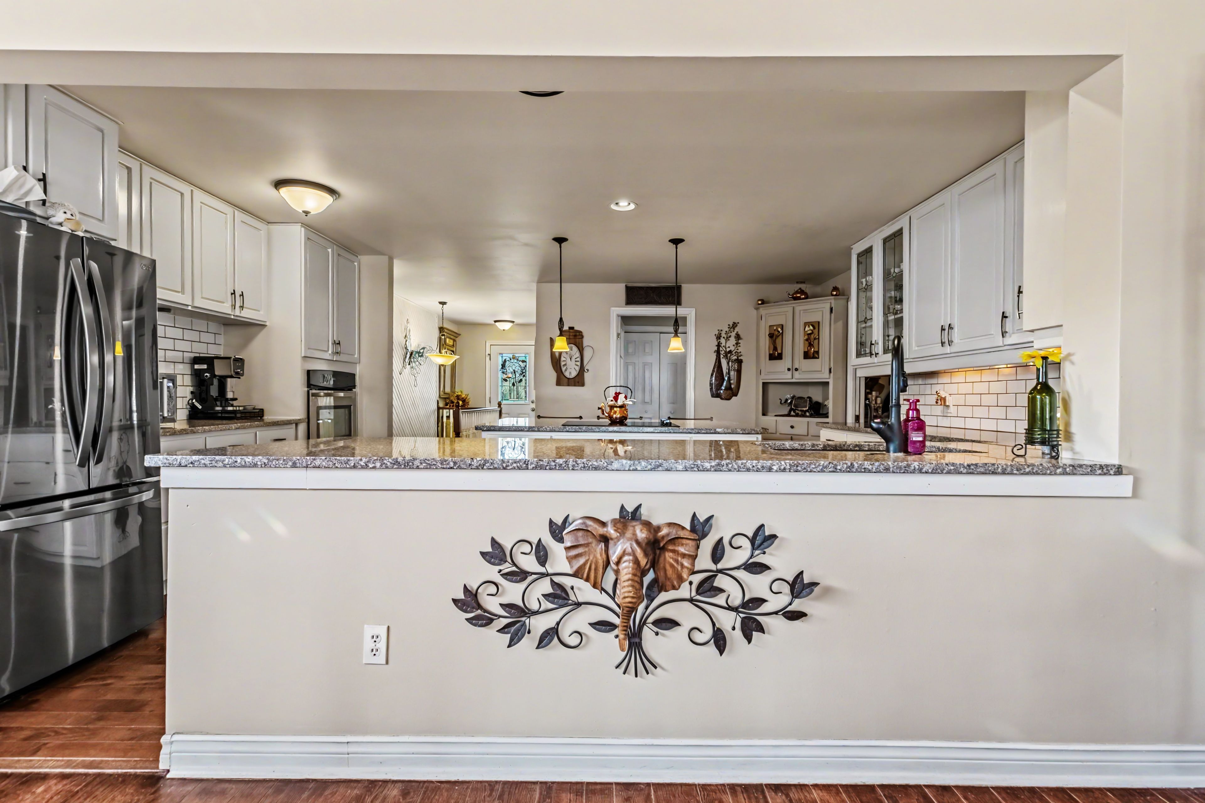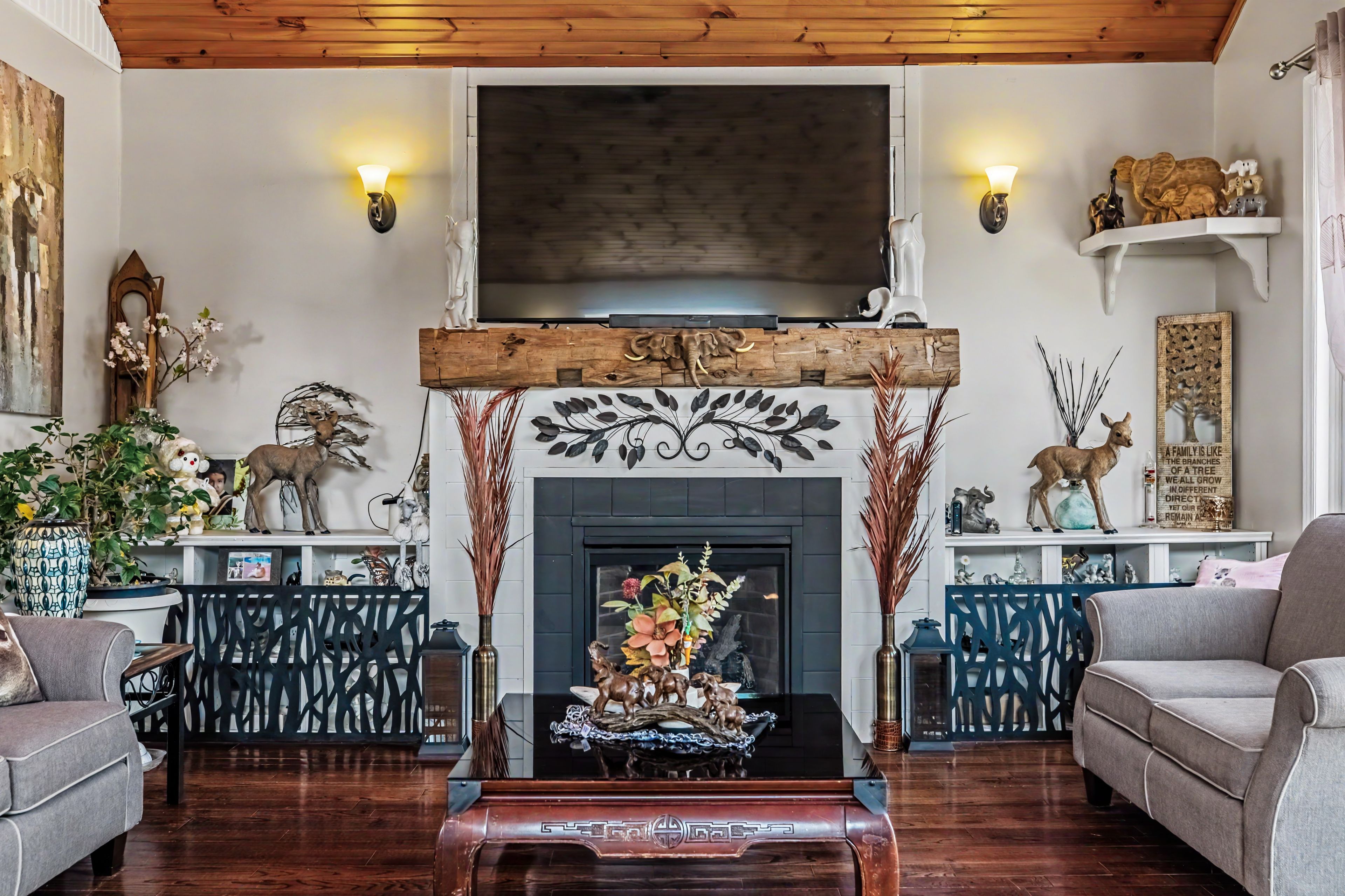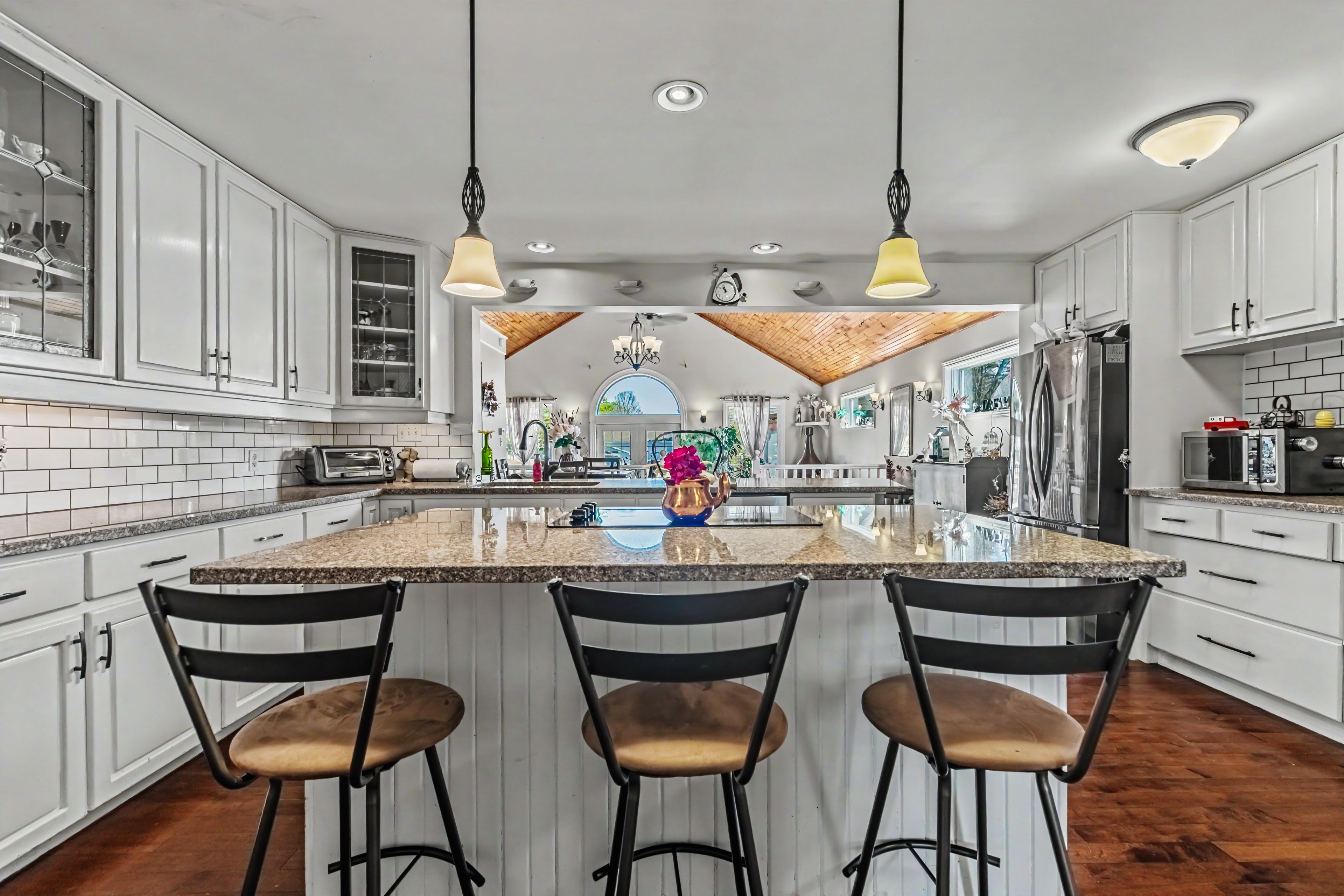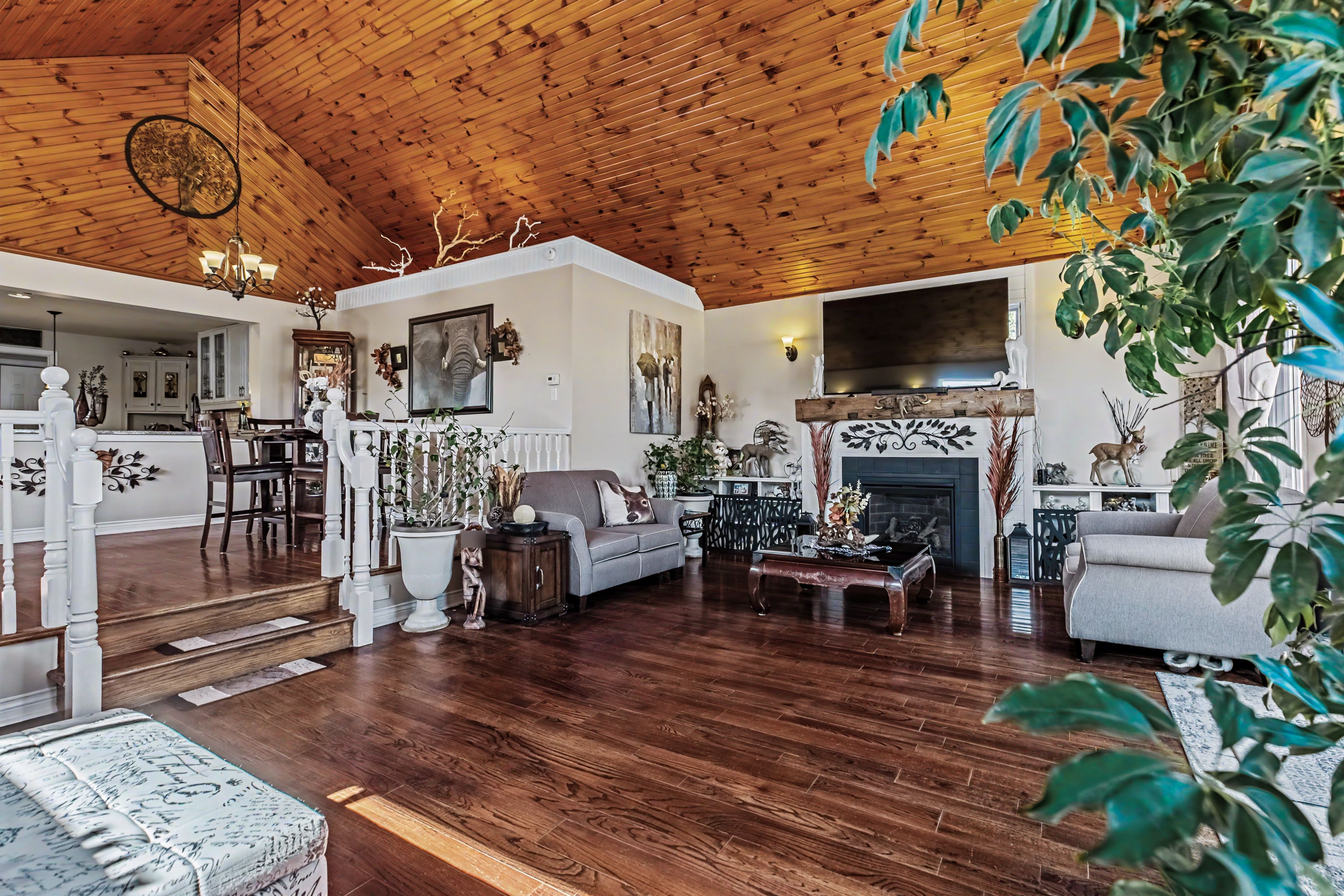 • Bright open-concept layout with a stunning kitchen and cozy fireplace.