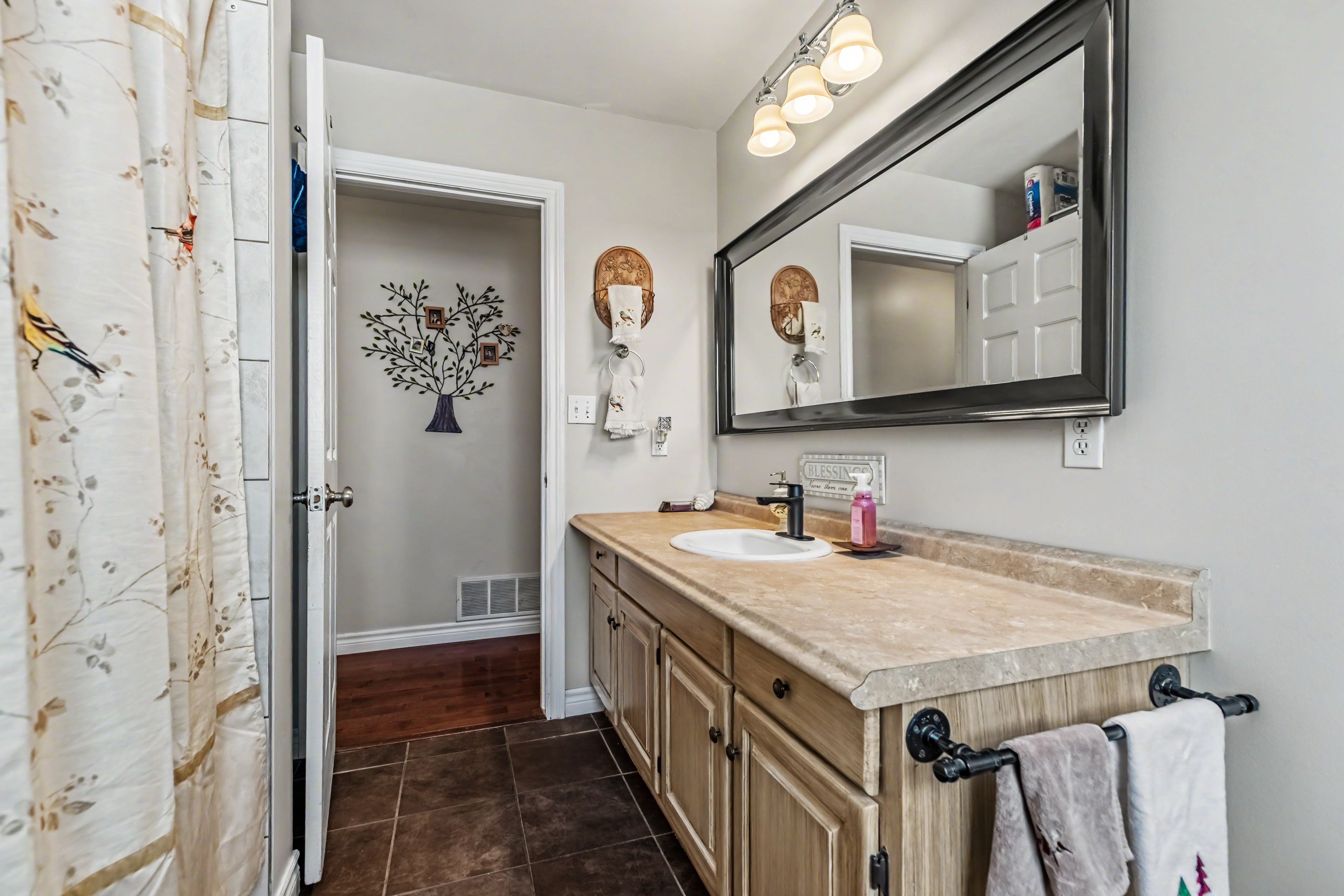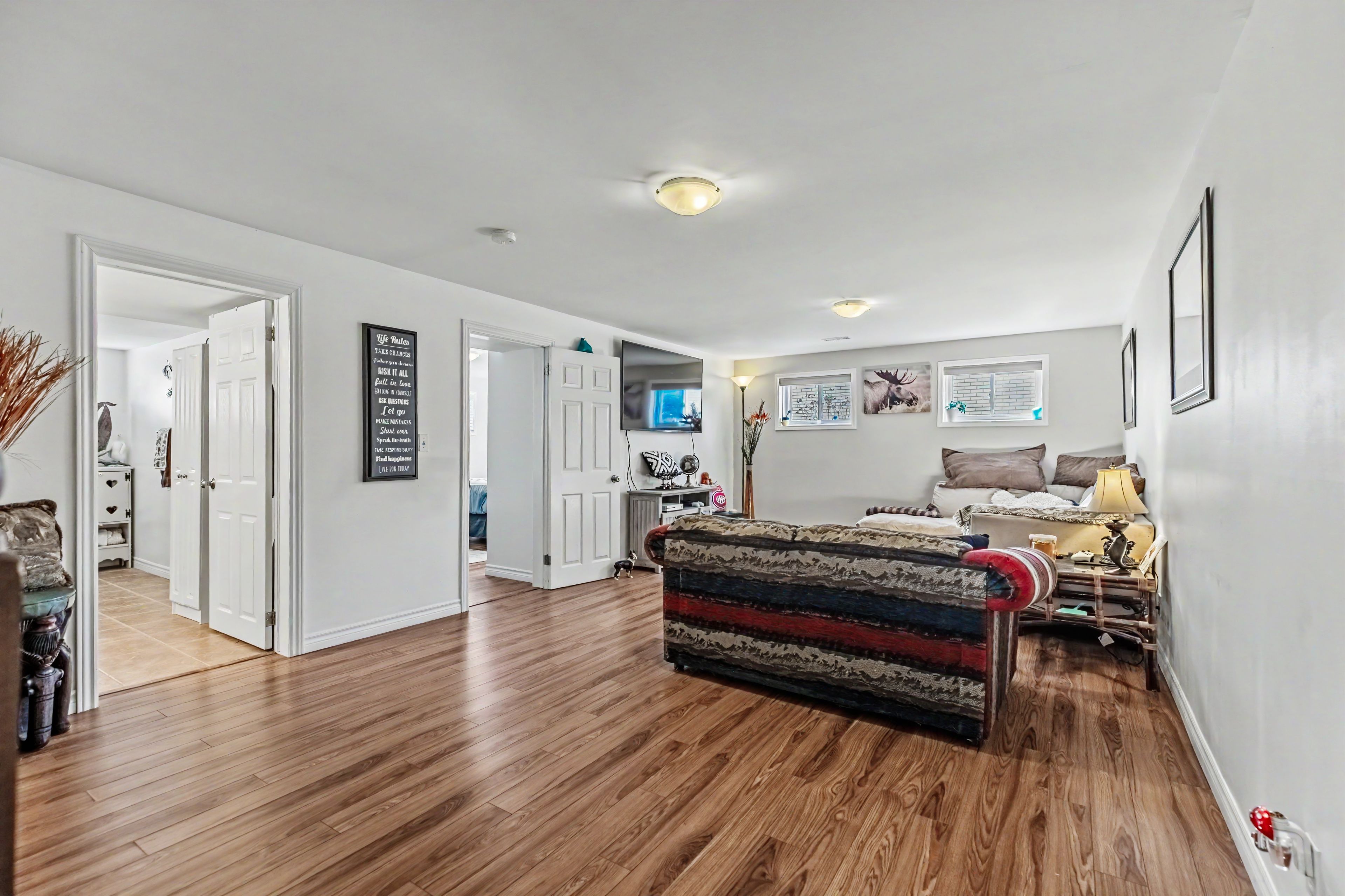 • Lower level includes extra bedrooms and kitchenette for flexibility.