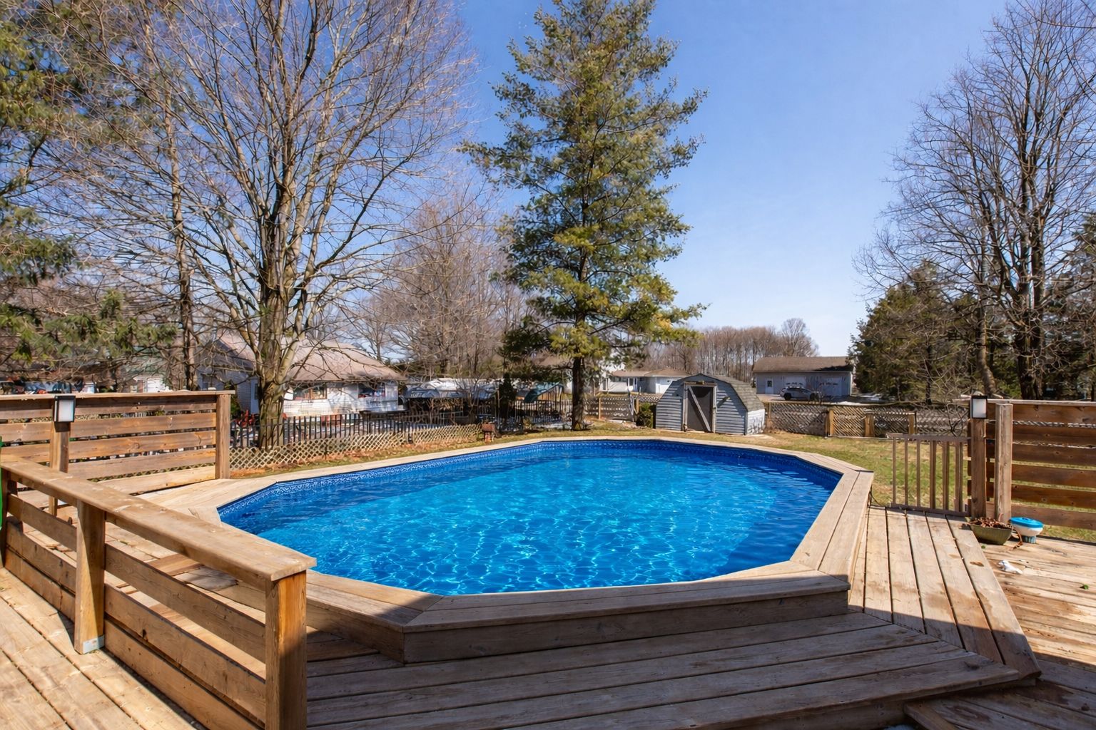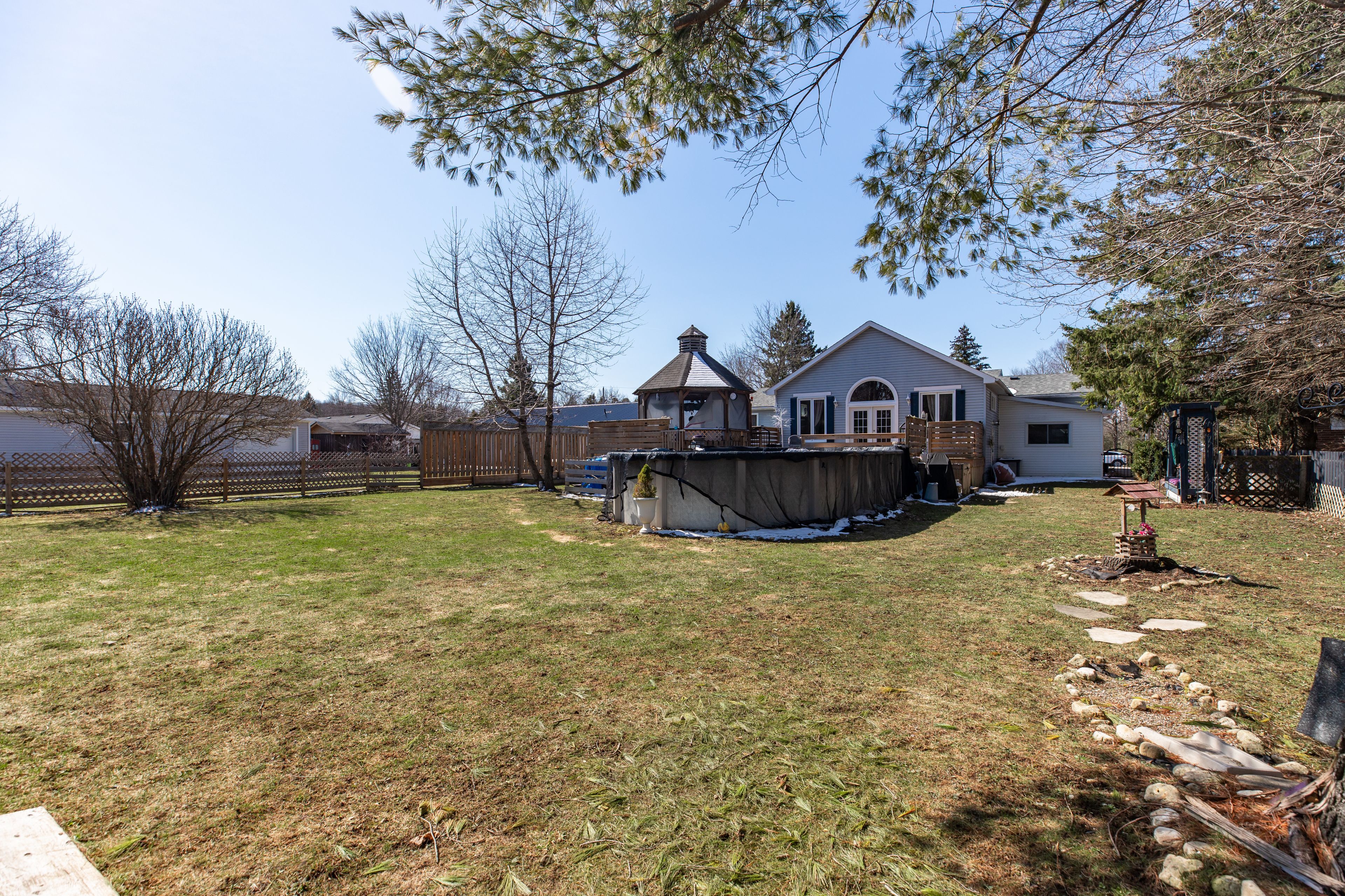 • Fully fenced yard with a heated pool and gazebo for relaxation.