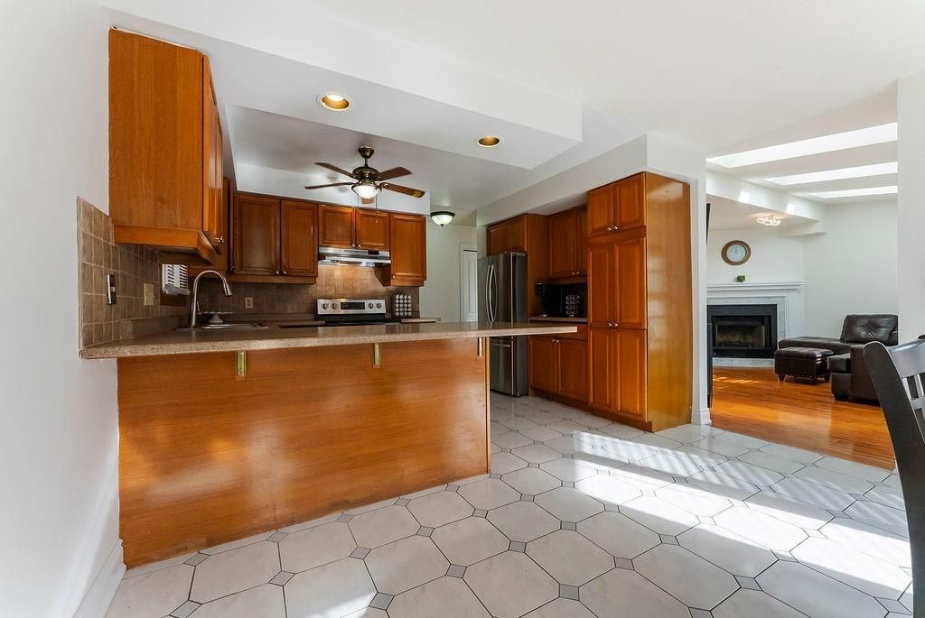 • Large eat-in kitchen with ample cabinetry for cooking needs.