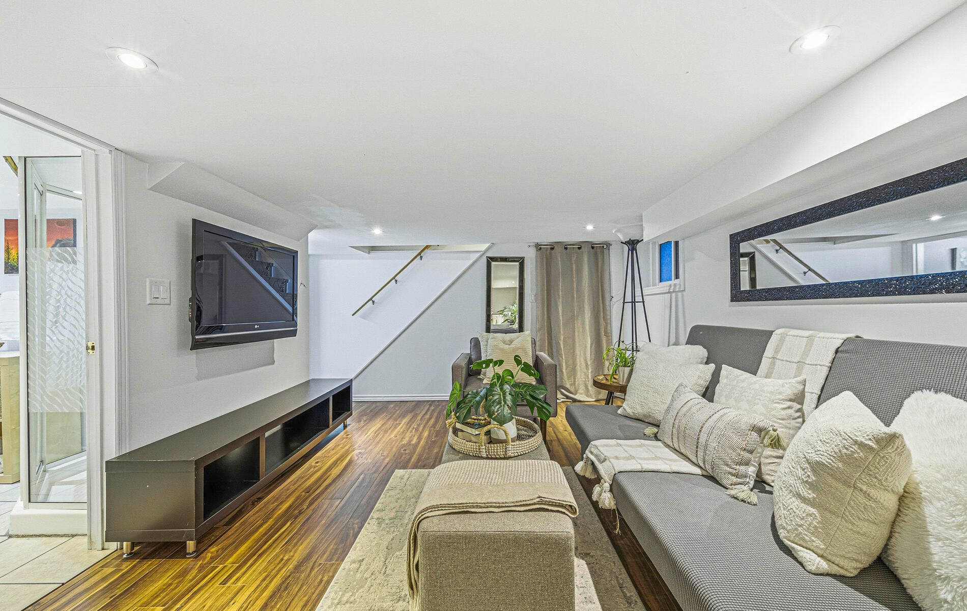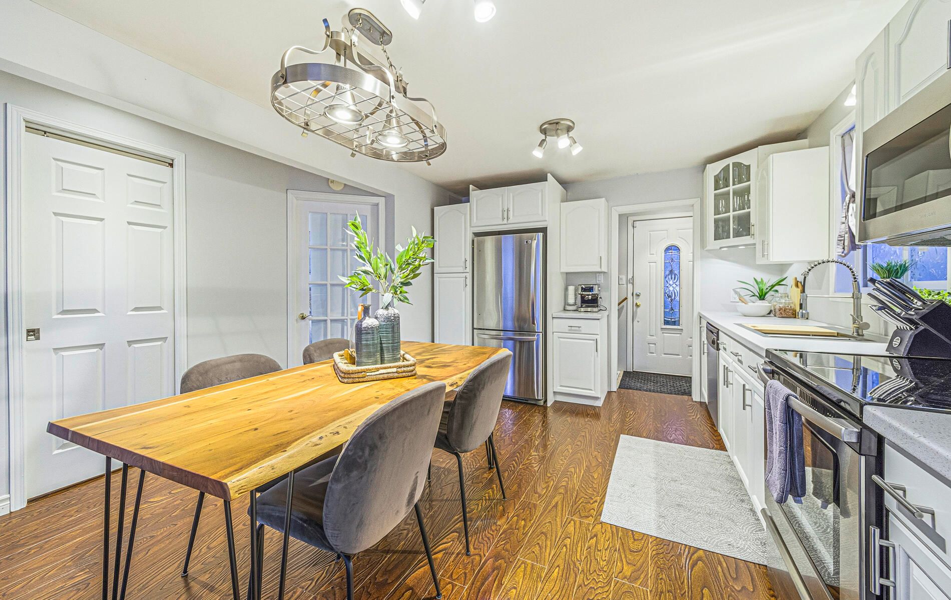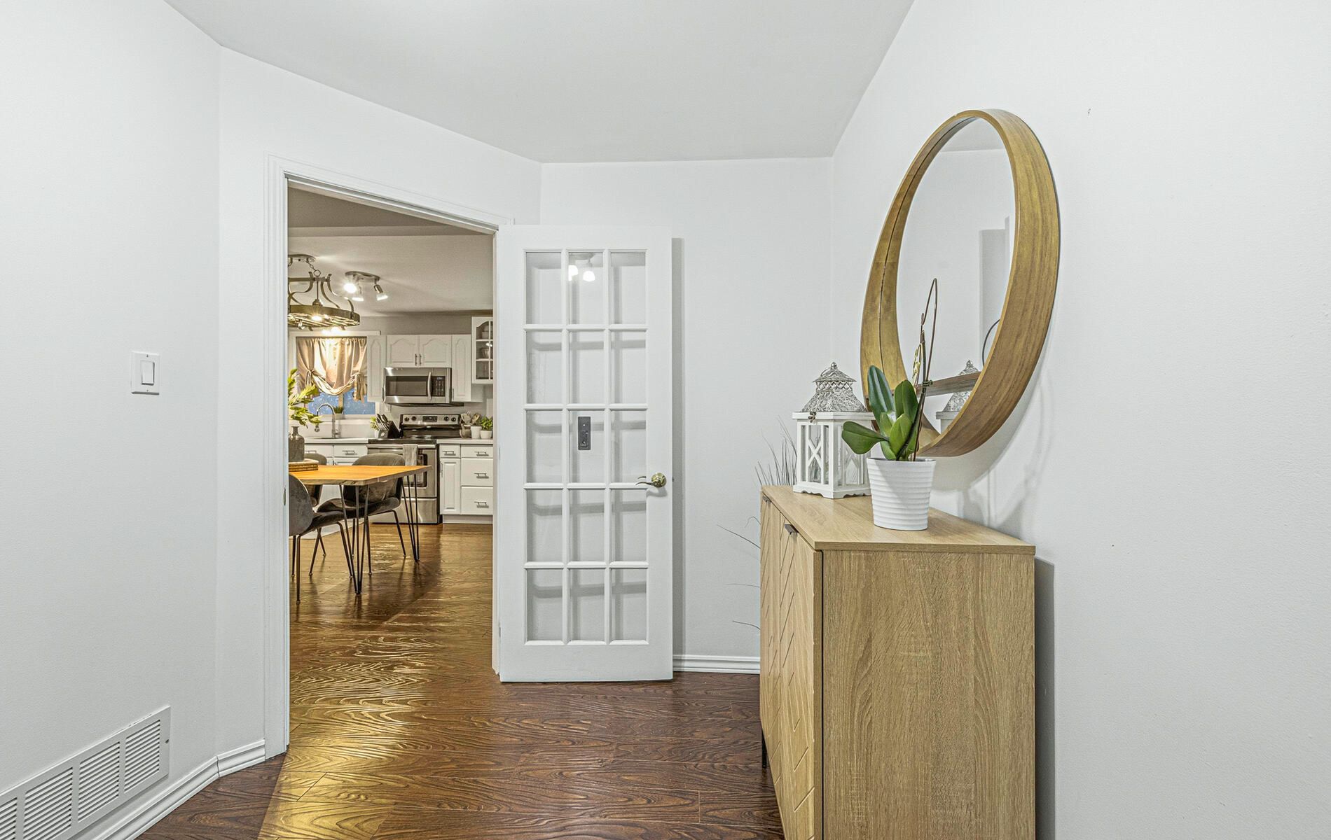 Charming and tastefully finished home featuring 2+ 1 bedrooms and 2 bathrooms on a very deep lot with a driveway that parks three cars. The main floor offers an open concept living room with gleaming hardwood floors, along with a family sized eat in kitchen with seamless flow and plenty of natural light. The finished basement includes a separate entrance, above grade windows, pot lights, and a laundry room, providing excellent potential for extended living space. Recent updates include fresh paint, a modern kitchen, shingles approximately six years old, and a furnace and air conditioning system installed two years ago. Located on a quiet crescent with park space, river access, and walking trails just across the street, this home offers comfort, convenience, and a pleasant natural setting close to everyday amenities.