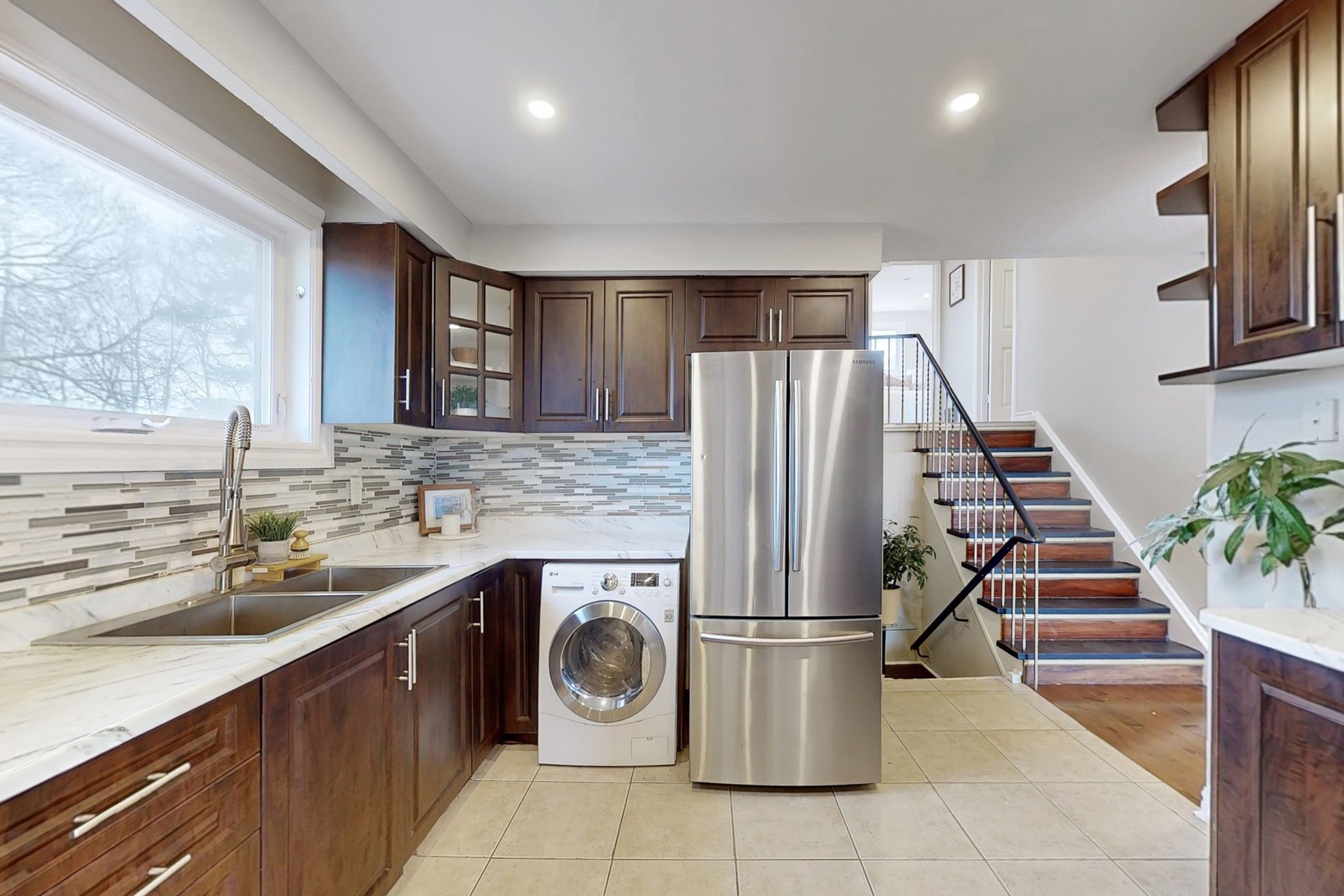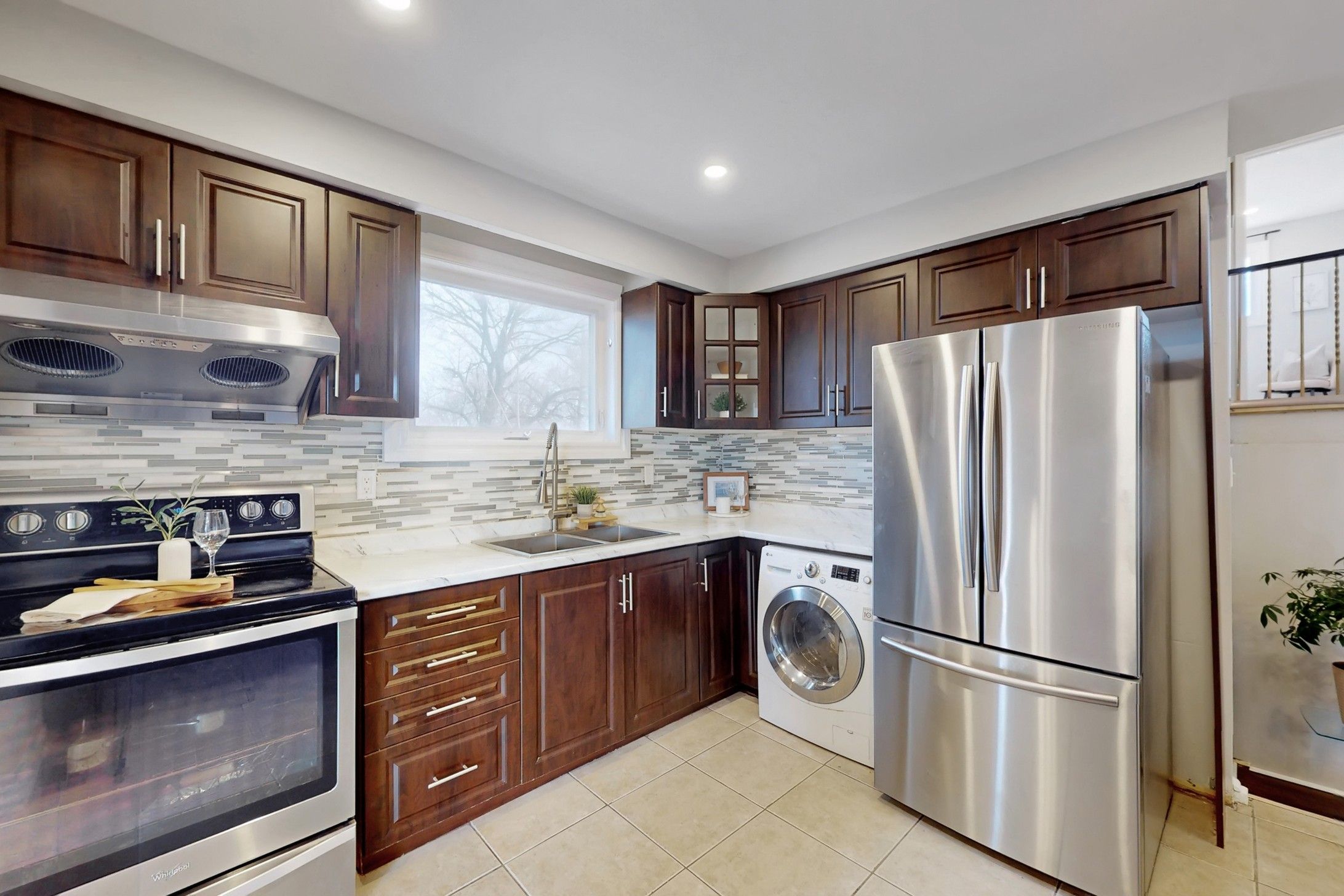 Legal second dwelling (4 bedrooms, living, kitchen, and two full bathrooms 2022) large semi 5 level back split with w/o bsmt. Ideal for large family, investor or first time home buyer seeking income. The property offers 3+3+1 bedrooms, 3. 5 bathrooms, and 2 kitchens, with two separate living spaces and three separate entrances, walk out basement, providing potential income. A lot of upgrades done: new garage floor 2018, front stairs plus cemented floor with side walk in front the second dwelling 2018, insulated storage room built in garage 2020, new powder bathroom built upper floor 2020, pot lights throughout the house 2024, new gutters 2025, new windows and front entrance door2022 upper level, new electric panel 200 amp 2021, landscaping 2019, new fencing all around 2023, new heat pump 2024, new furnace on lease 2025, attic insulation 2024, hot water tank 2018, new washer and dryer lower level 2025, new kitchen & appliances upper level 2018, paint throughout the house december 2025. Large driveway 4 parking + garage, 2 separate units & 3 entrances. Hardwood upper level, new laminate in bsmt. Located in north brampton. Near public ib schools, transit, shopping plaza and hwy 410.
