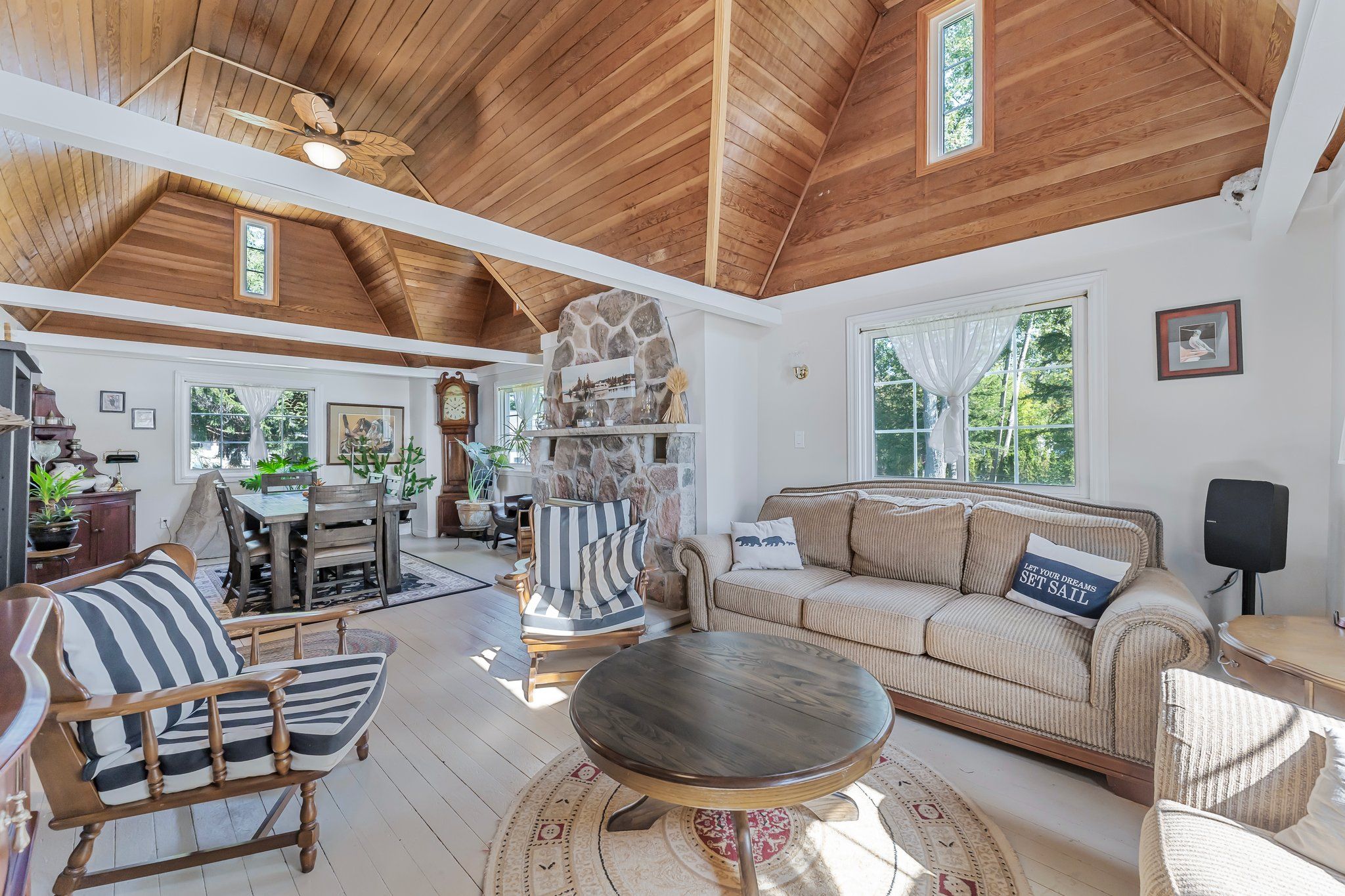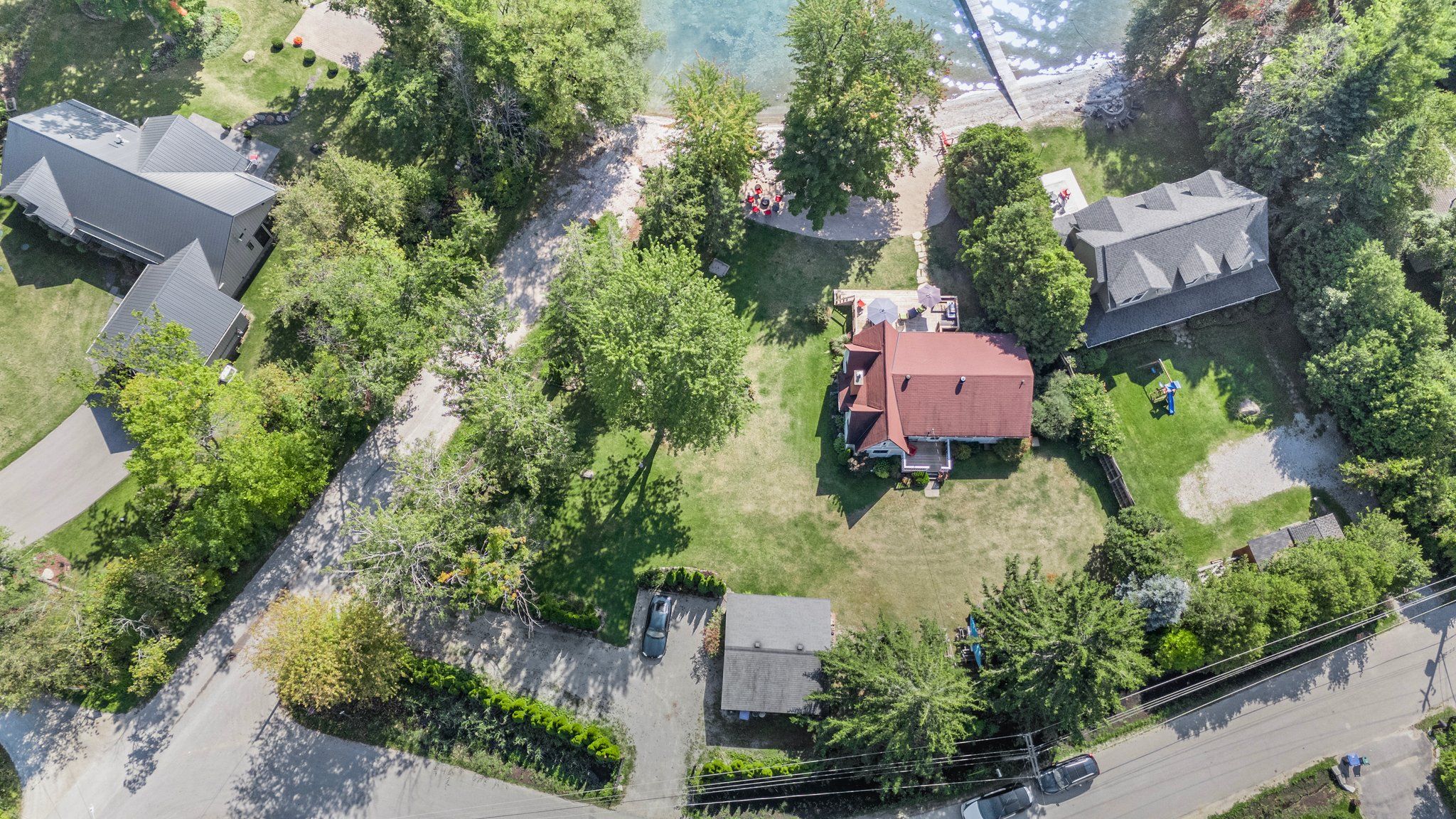 Move in tomorrow fully furnished! Beautiful waterfront property in big bay point! Over 1/2 acre with unobstructed views of lake simcoe from almost every angle of the property. Owner will sell as a turn key property so just pack the car and enjoy this summer on the water or rent it out and make $$. Pie shaped lot will allow for a much larger home, or enjoy the existing 4 season residence. 85 feet of sandy beach area. 73 ft of direct water front. Enjoy the large dock with a t-head seating area for entertaining. This property has a lot to offer including the 4 season home with great room and a cozy fireplace, large deck for entertaining. Bbq with gas hook up. Double car detached garage and a shed to store the water toys. Very few properties in big bay point that have lots like this. Book a private showing today! Come see the potential this property has to offer! This property and lot size must been seen to be appreciate. Close to friday harbour to enjoy their fine restaurants and shopping.