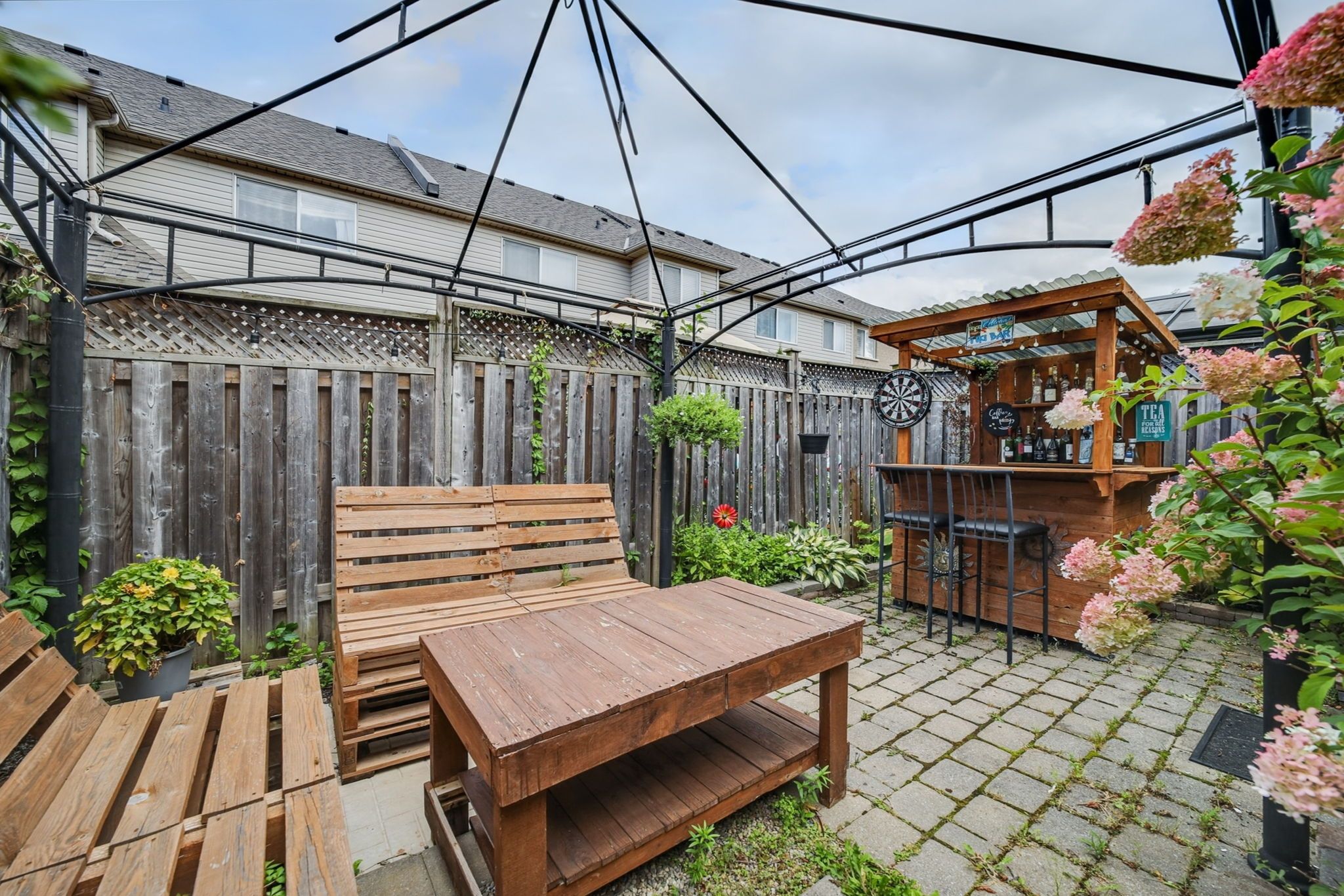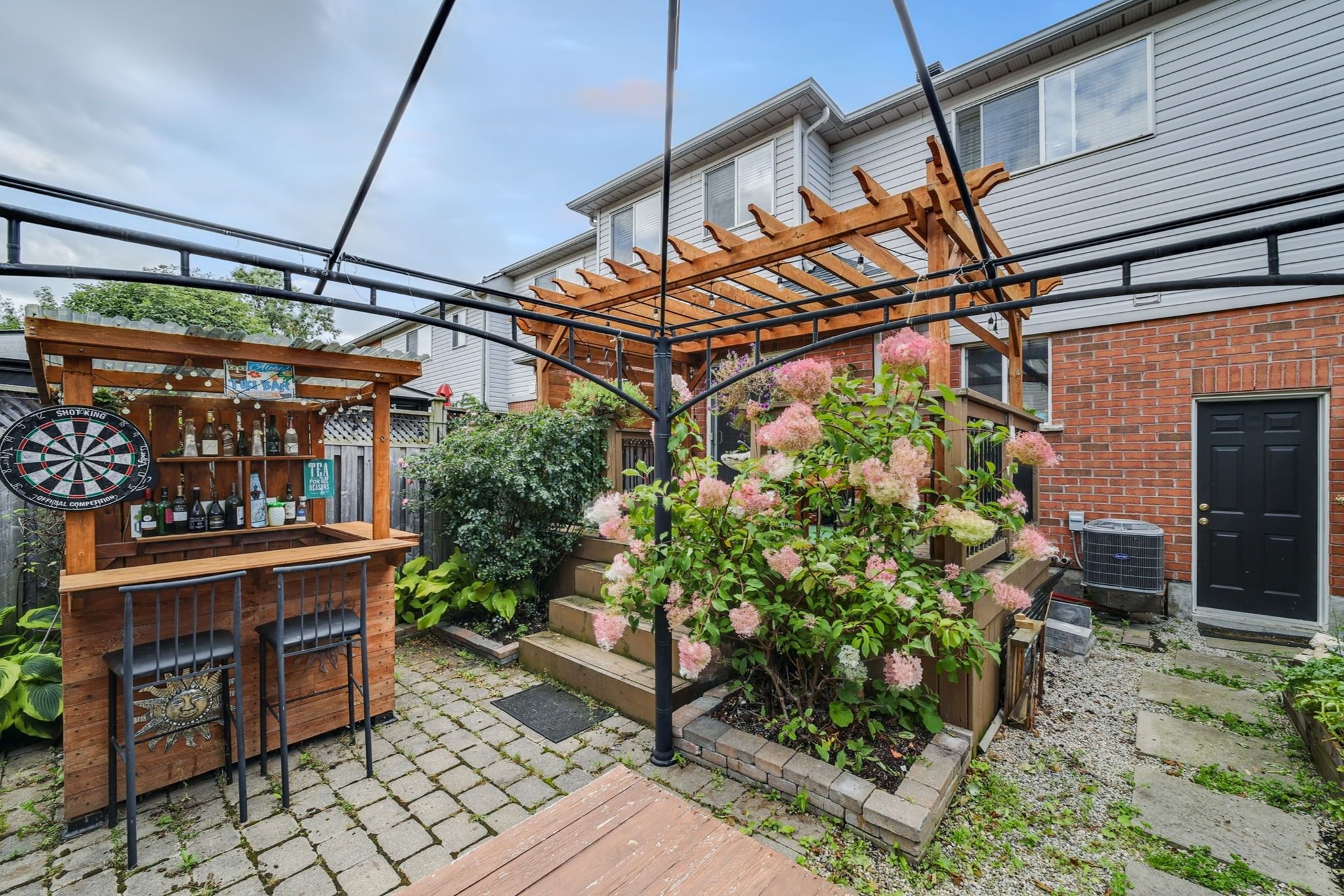 • One-car garage with backyard access plus space for two more vehicles.