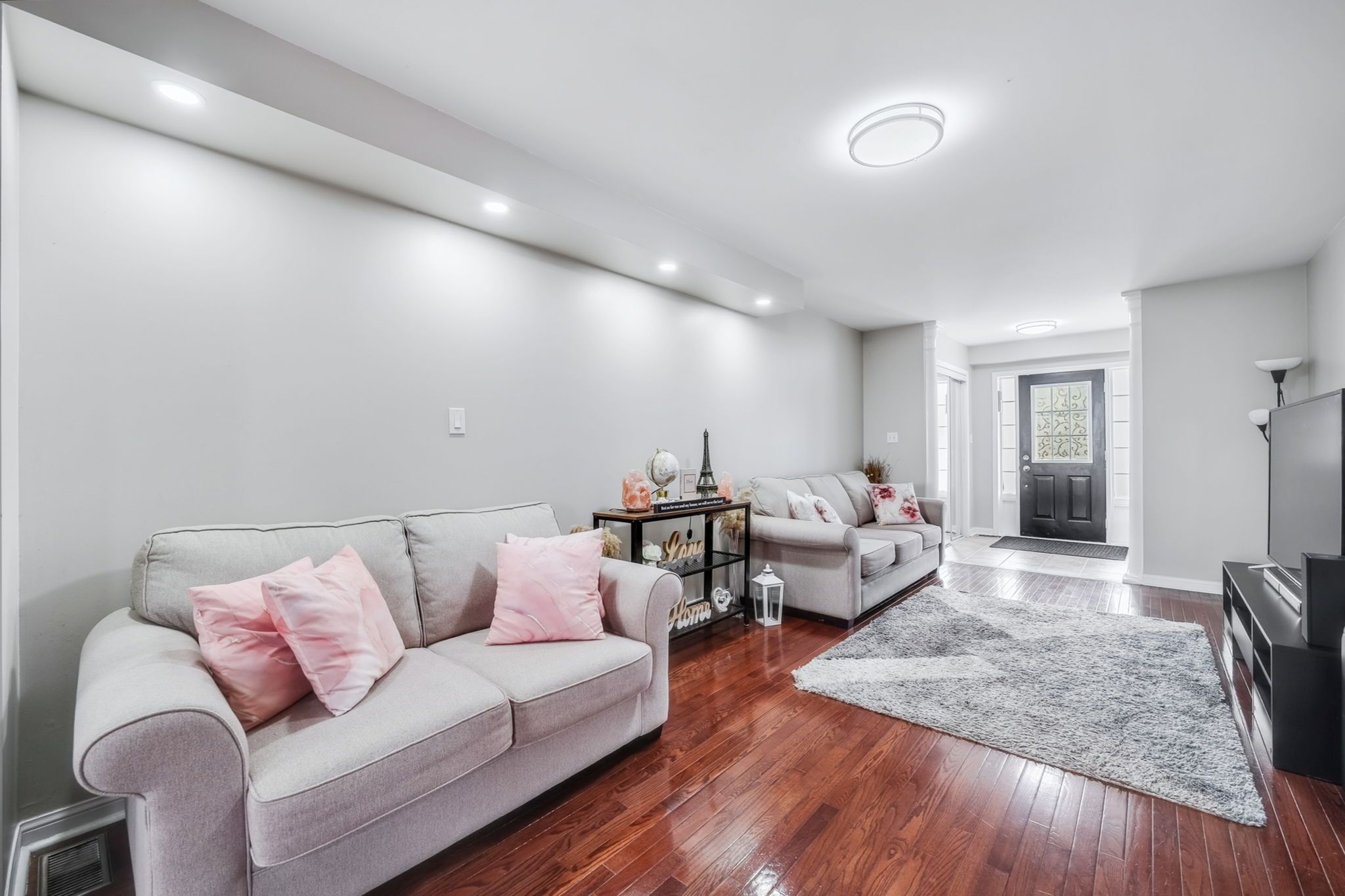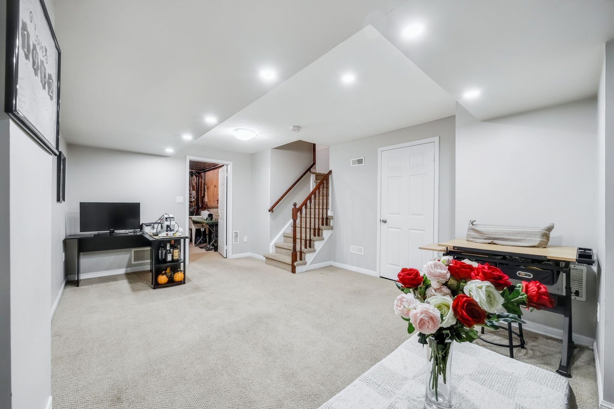 • Versatile finished lower level for various uses like office or bedroom.