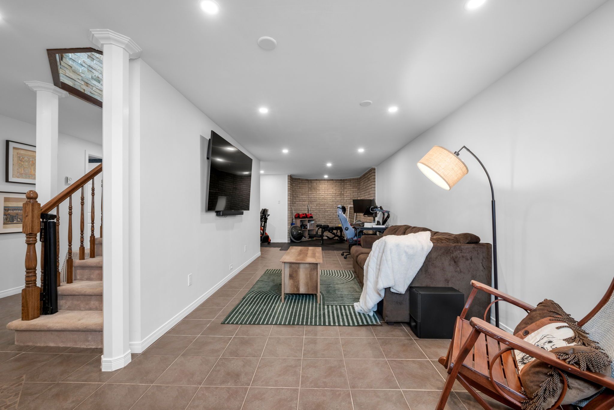 • Versatile finished lower level suitable for a bedroom, office, or family room.