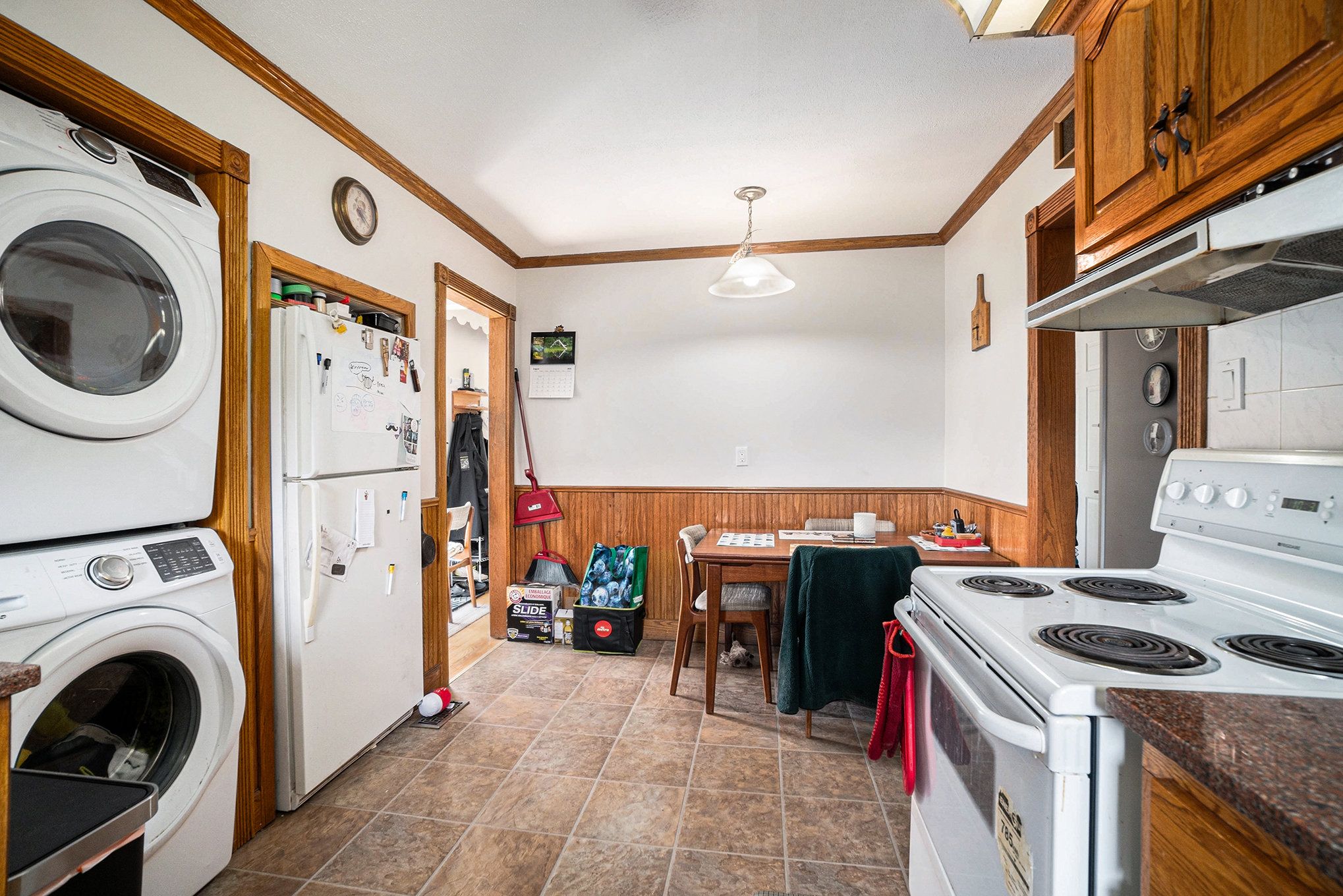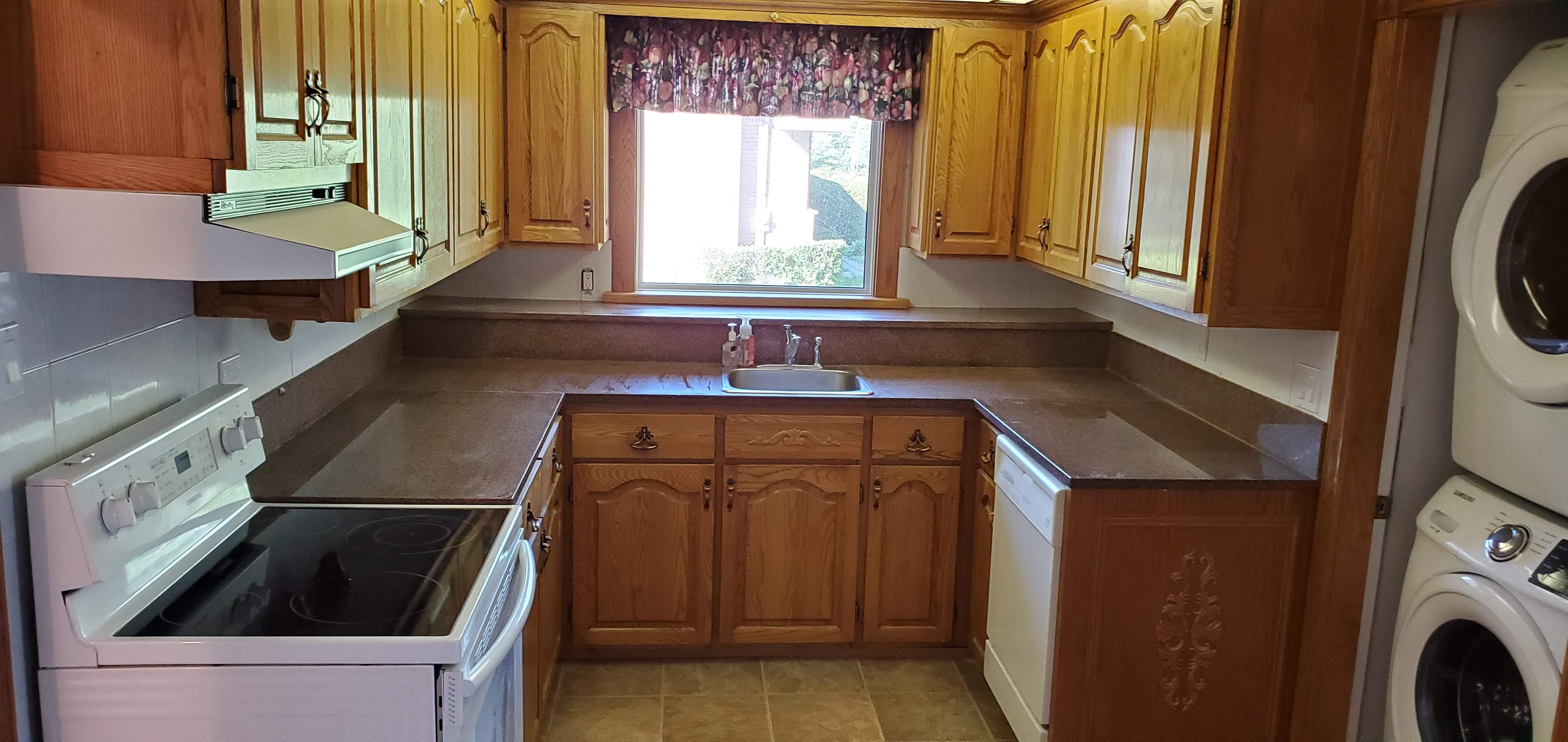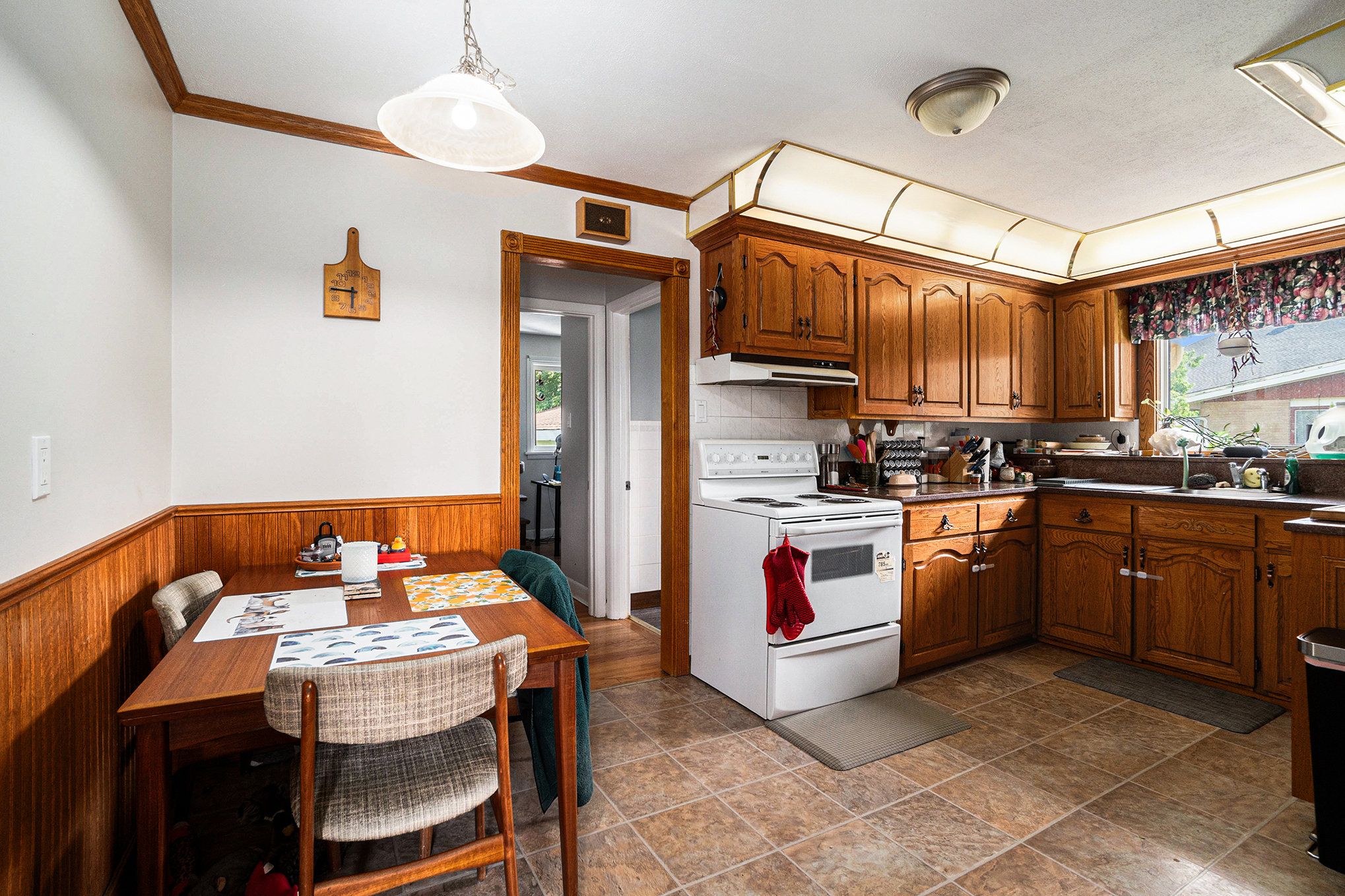 • Main level features three bedrooms and an eat-in kitchen with laundry.