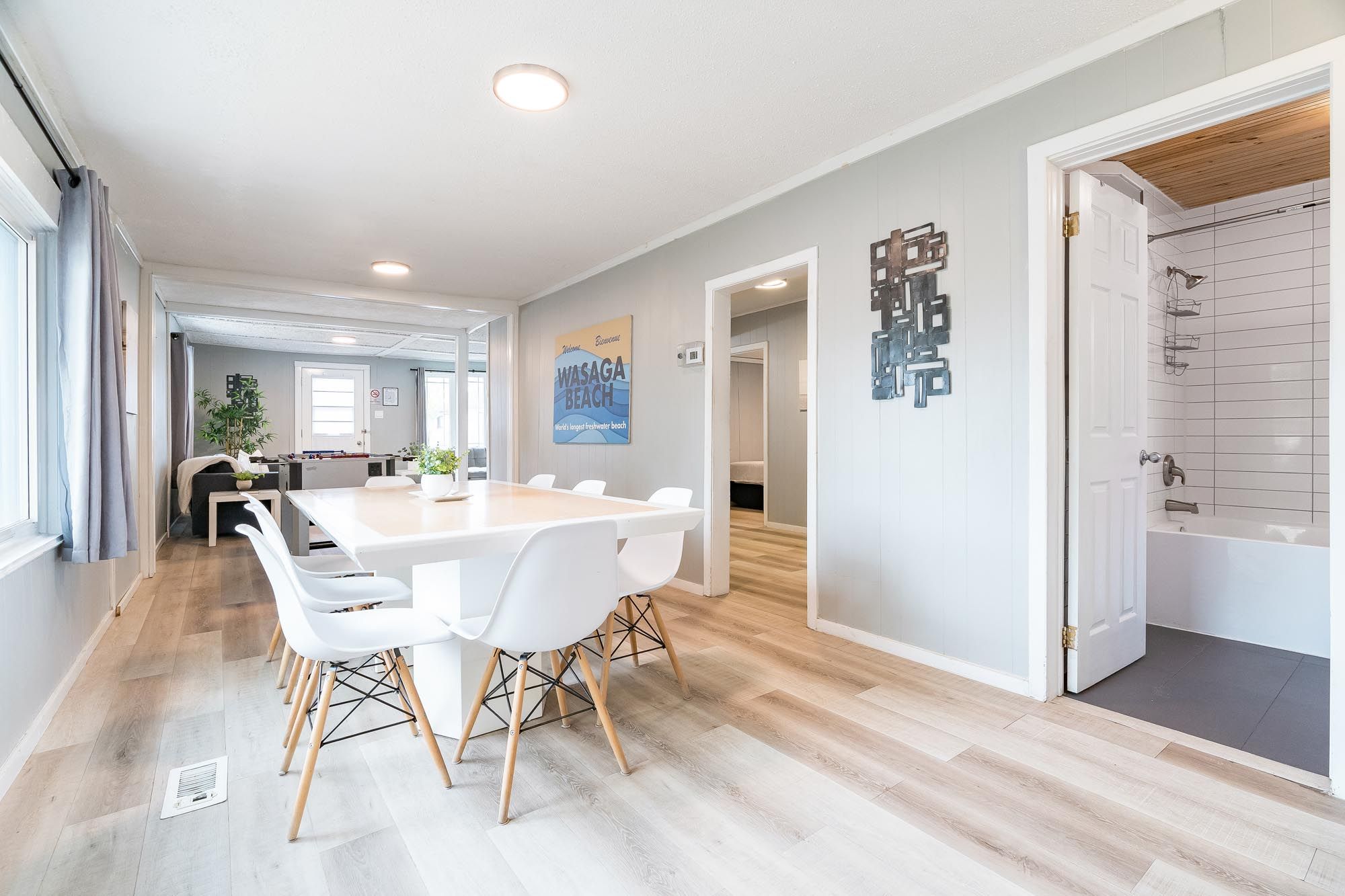 Top 5 reasons you will love this home: 1) licensed for short-term accommodations, this charming property is just a short stroll to iconic beach one in wasaga, perfect as a turn-key investment or your own cozy getaway 2) a ready-made opportunity, it comes with a newer roof, furnace, and central air conditioner and is available fully furnished, with summer bookings already in place for instant income 3) the spacious driveway fits three vehicles, while the private backyard offers a large deck for barbeques and a firepit for memorable summer evenings 4) inside, you'll find four generously sized bedrooms, stylish and durable vinyl flooring, and a sleek kitchen with easy-care quartz countertops 5) set in the heart of one of ontarios most beloved beach destinations, this location is unbeatable for both lifestyle and rental appeal. 1,217 above grade sq. Ft.