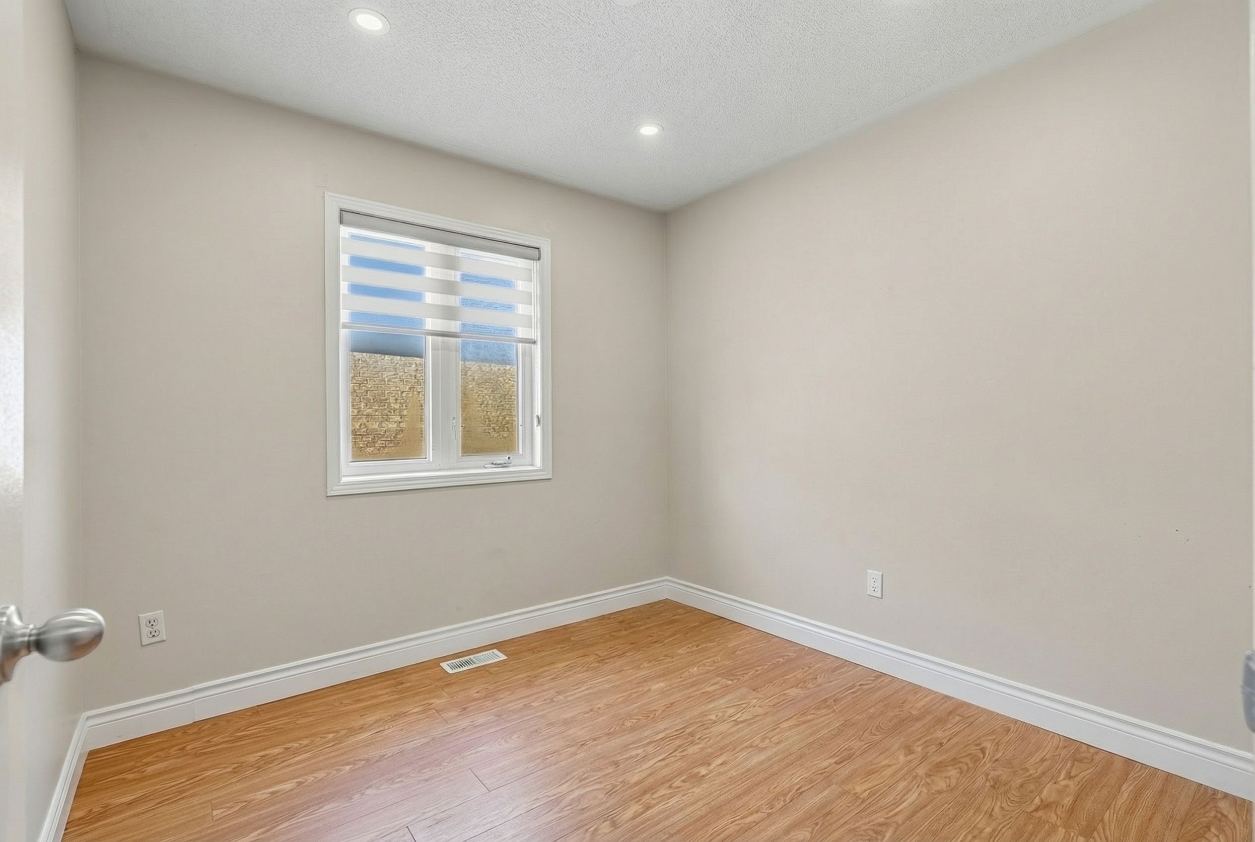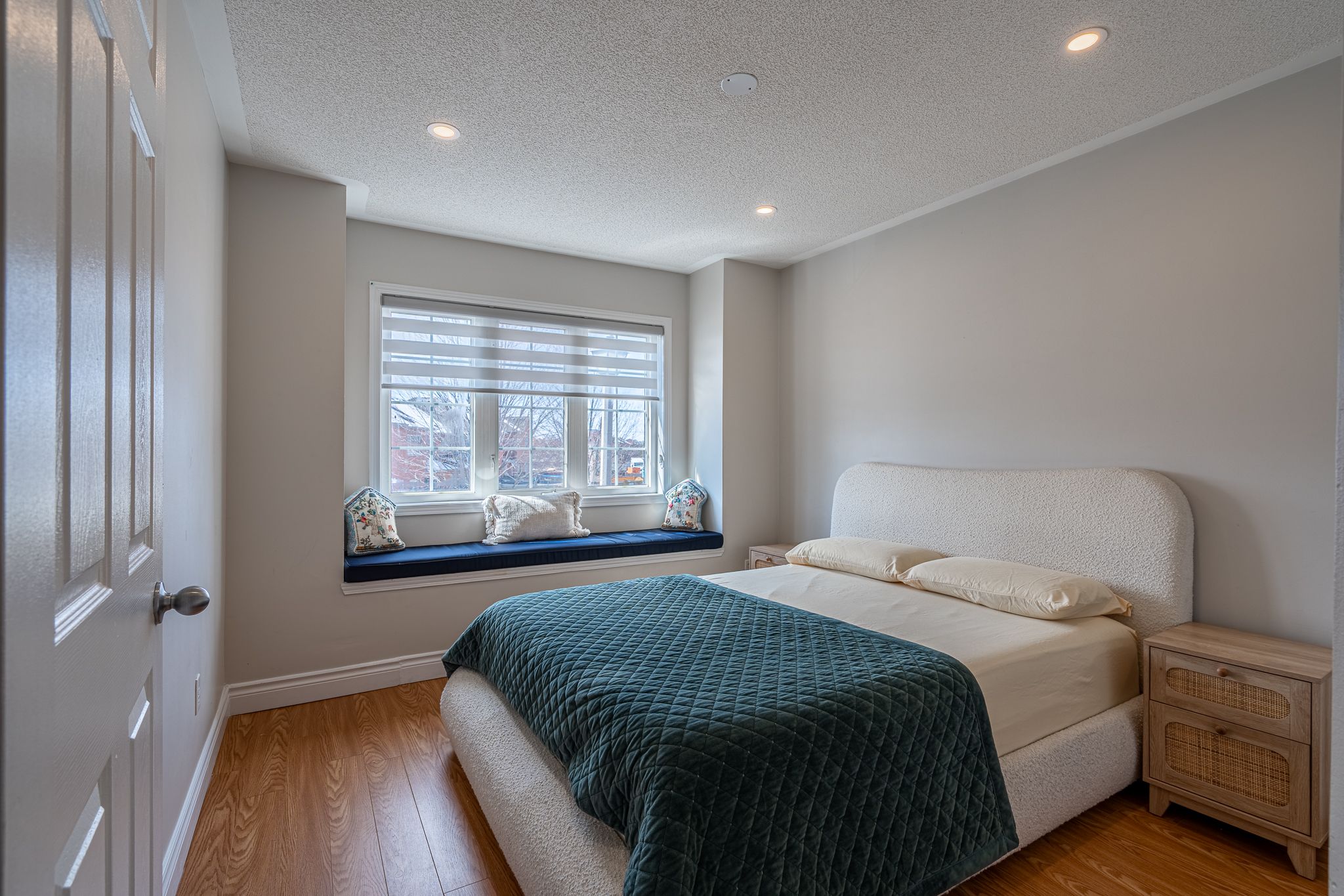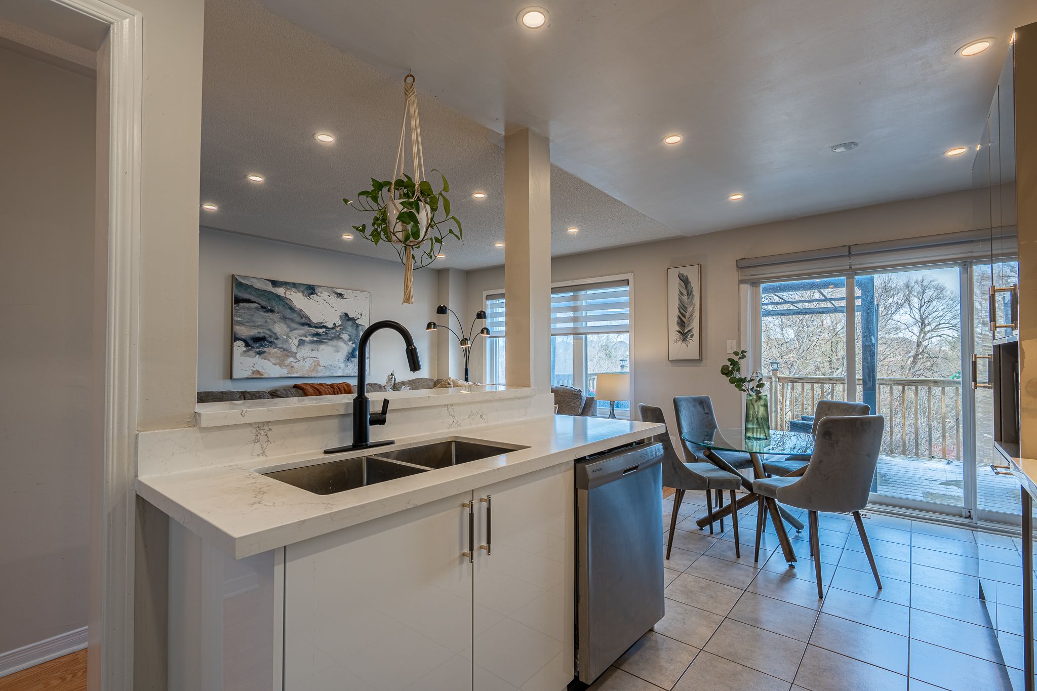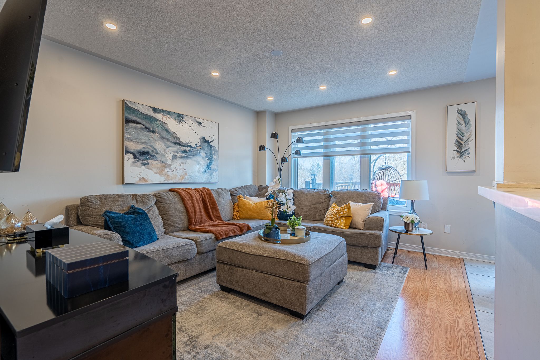 Beautiful end-unit townhouse that feels like a semi-detached, featuring a grand double-door entry and approximately 1,700 sq. Ft. Of thoughtfully designed living space. Situated on a premium corner ravine lot, this stunning home offers 4+1 bedrooms and a fully finished walk-up basement-ideal for extended family or generating rental income from day one. This carpet-free home showcases upgraded flooring throughout and a modern kitchen complete with quartz countertop and backsplash, stainless steel appliances, porcelain tiles, and extended cabinetry. Enjoy a functional and spacious layout with separate living and dining areas, along with a cozy family room overlooking serene ravine views and a walk-out to a private patio-perfect for relaxing or entertaining. Additional highlights include elegant pot lights on both the main and second floors, 3 parking spaces with no sidewalk, and a highly desirable location close to top-rated schools, hospitals, shopping plazas, and easy access to highway 410. An exceptional opportunity to own a beautiful home with income potential in a sought-after neighborhood-don't miss out!